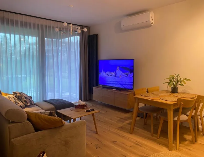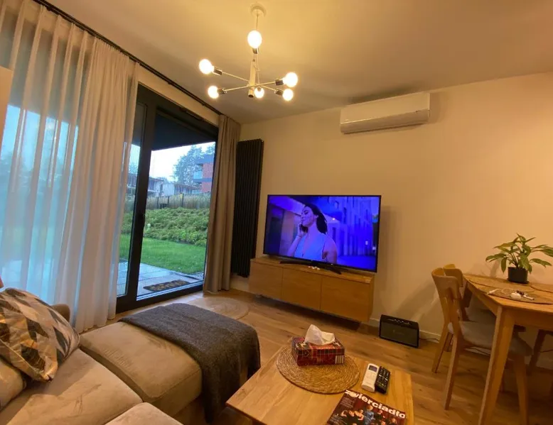 Comfortable Living: Apartament Warmiński Port in Olsztyn offers a garden and terrace with free WiFi. The ground-floor unit features one bedroom, one bathroom, and a spacious living room. Modern Amenities: Guests enjoy air-conditioning, a kitchenette, washing machine, and streaming services. Additional amenities include a dishwasher, TV, and soundproofing. Convenient Location: Located 40 mi from Olsztyn-Mazury Airport, the apartment is 3.7 mi from Olsztyn Bus Station and 5 mi from Olsztyn Stadium. Nearby attractions include Podzamcze Park and Warmia Chapter Castle. Local Activities: An ice-skating rink is available in the surroundings, providing entertainment for visitors. In the fully equipped kitchenette, guests will find a stovetop, a refrigerator, a dishwasher and kitchenware. The air-conditioned apartment features a flat-screen TV with streaming services, a washing machine, a private entrance, soundproof walls as well as garden views. The unit has 2 beds.