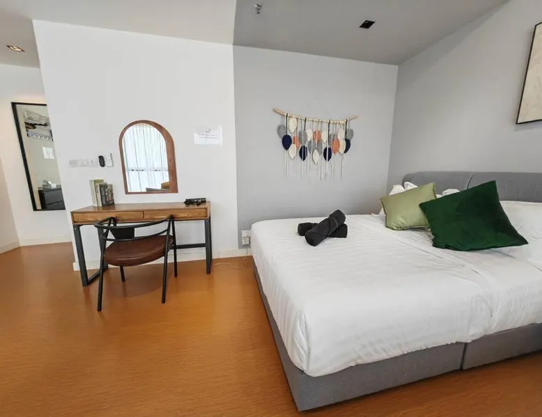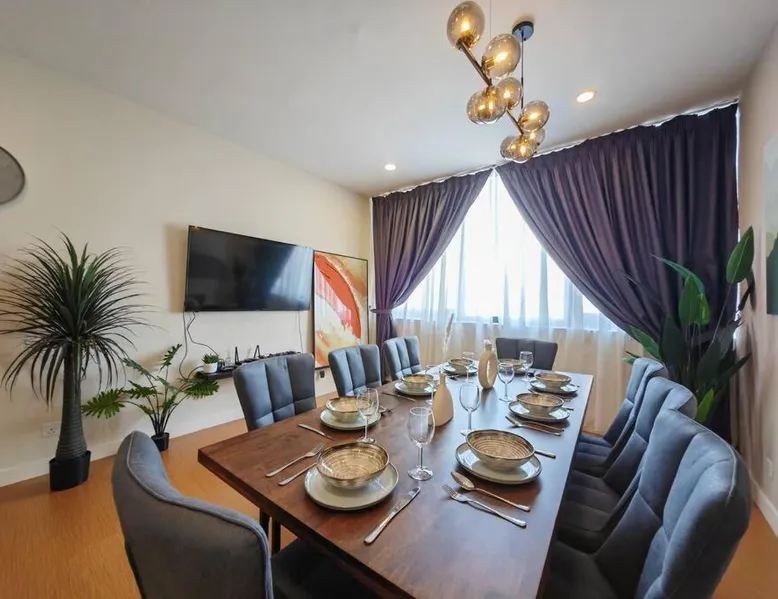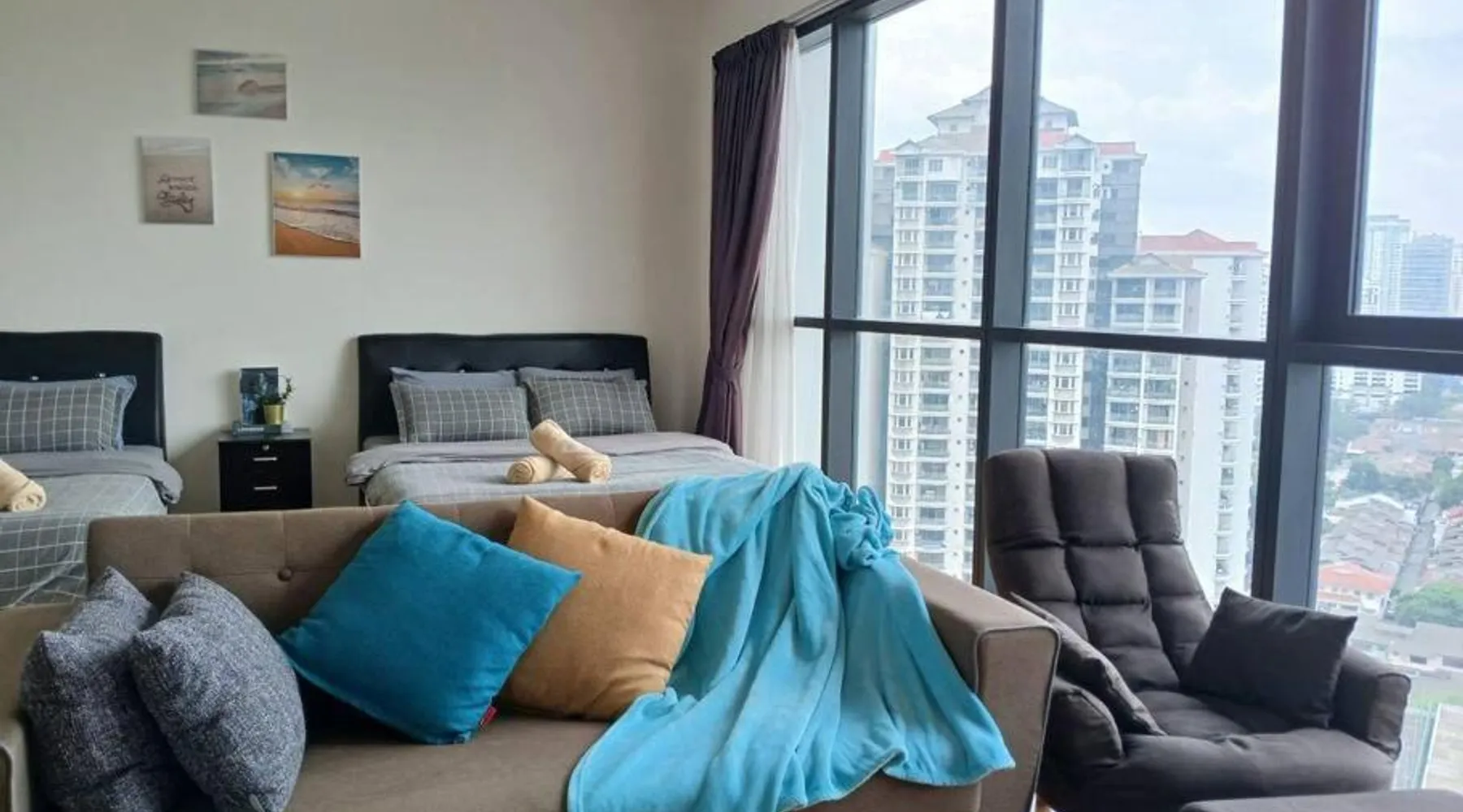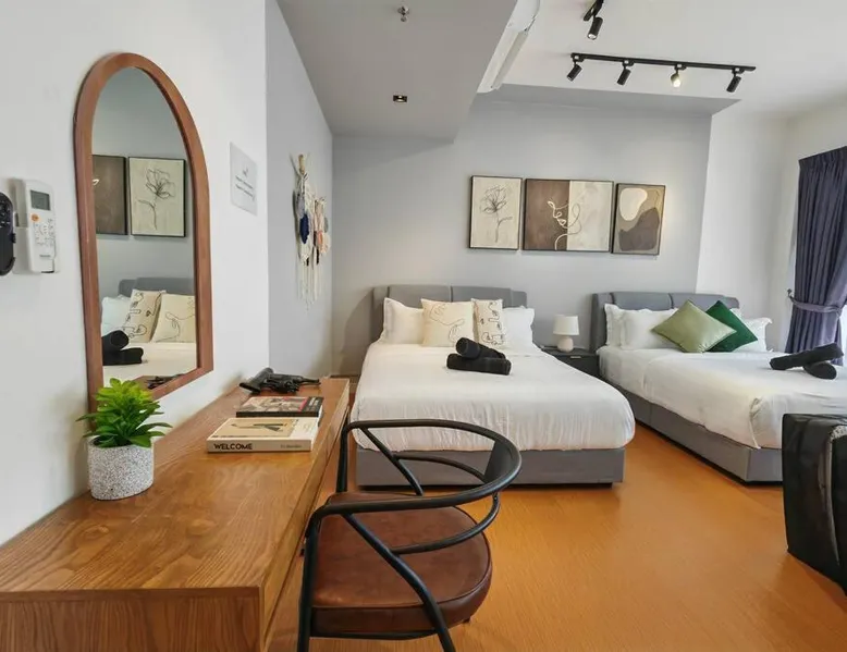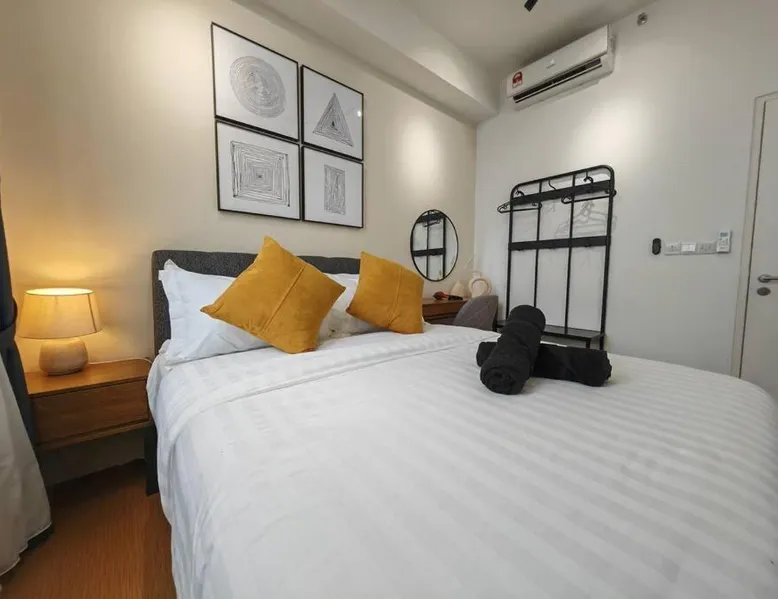 Essential Facilities: Harmonee Homes at The Hub SS2 in Petaling Jaya offers a rooftop swimming pool, fitness center, and lush garden. Complimentary WiFi is available throughout the apartment. Comfortable Living: Each apartment features air-conditioning, a private bathroom with a walk-in shower, and a city view. Additional amenities include a washing machine, kitchen, and sofa bed. Convenient Location: Located 6.8 mi from Sultan Abdul Aziz Shah Airport, the property is close to Evolve Concept Mall (3.7 mi) and Mid Valley Megamall (5 mi). Free on-site private parking is provided. Guests will have a special experience as this apartment offers a pool with a view. This spacious apartment consists of 1 living room, 2 separate bedrooms and 2 bathrooms with a walk-in shower and free toiletries. The well-equipped kitchen features a stovetop, a refrigerator, kitchenware and a microwave. The air-conditioned apartment provides a flat-screen TV with streaming services, a washing machine, a private entrance, a dining area as well as city views. The unit offers 3 beds and 4 futons.