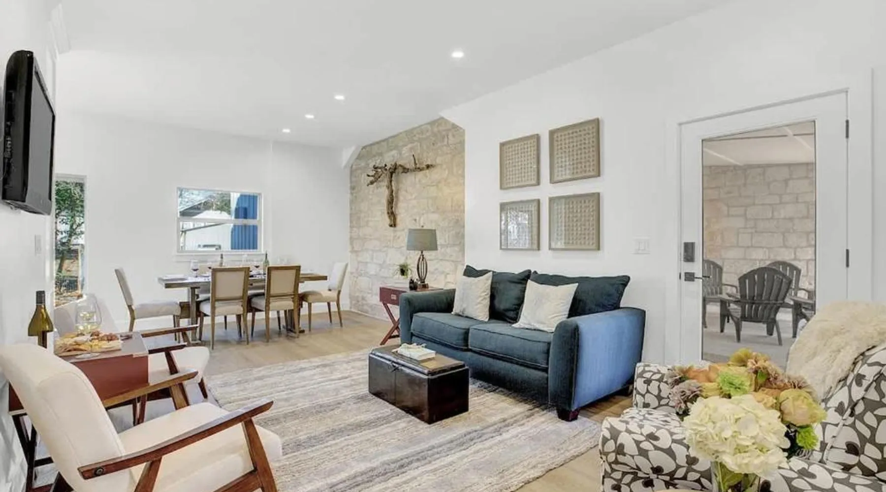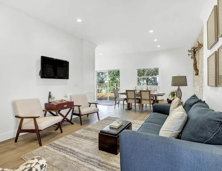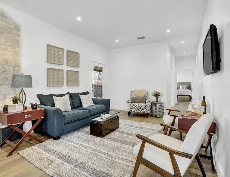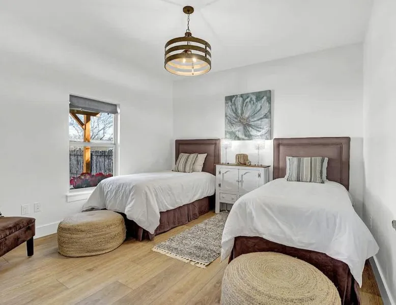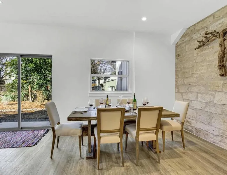 Spacious Accommodations: The Homestead Carriage House in Fredericksburg offers a spacious holiday home with three bedrooms and two bathrooms. Family rooms and a private entrance ensure comfort for all guests. Modern Amenities: Guests enjoy free WiFi, air-conditioning, and a fully equipped kitchen with a coffee machine, dishwasher, and microwave. Additional amenities include a washing machine, dining area, and outdoor fireplace. Convenient Location: Located 66 mi from San Antonio International Airport, the property is near Rancho Ponte Vineyard (6.2 mi) and Enchanted Rock State Natural Area (17 mi). Cycling enthusiasts can explore the surrounding area. Highly Rated by Guests: The Homestead Carriage House receives high ratings for its spaciousness and excellent facilities, making it a preferred choice for holidaymakers. Guests will have a special experience as the holiday home features a fireplace. Featuring a private entrance, this spacious holiday home also consists of 3 bedrooms, a seating area and 2 bathrooms with a shower and a hairdryer. Guests can make meals in the kitchen that is equipped with a stovetop, a refrigerator, a dishwasher and kitchenware. Boasting a patio, this holiday home also provides air conditioning, a washing machine and a flat-screen TV. The unit offers 4 beds.