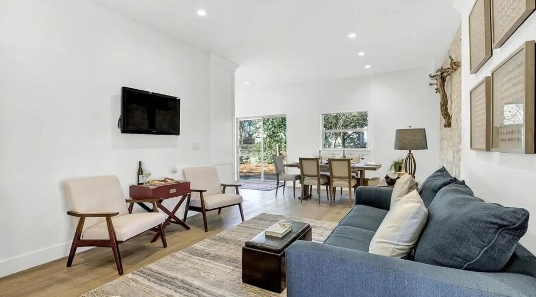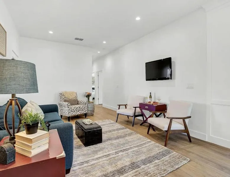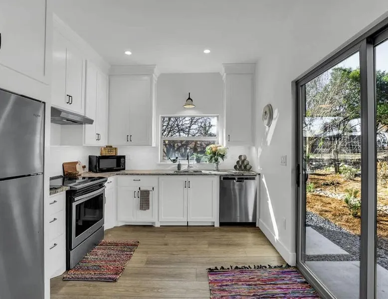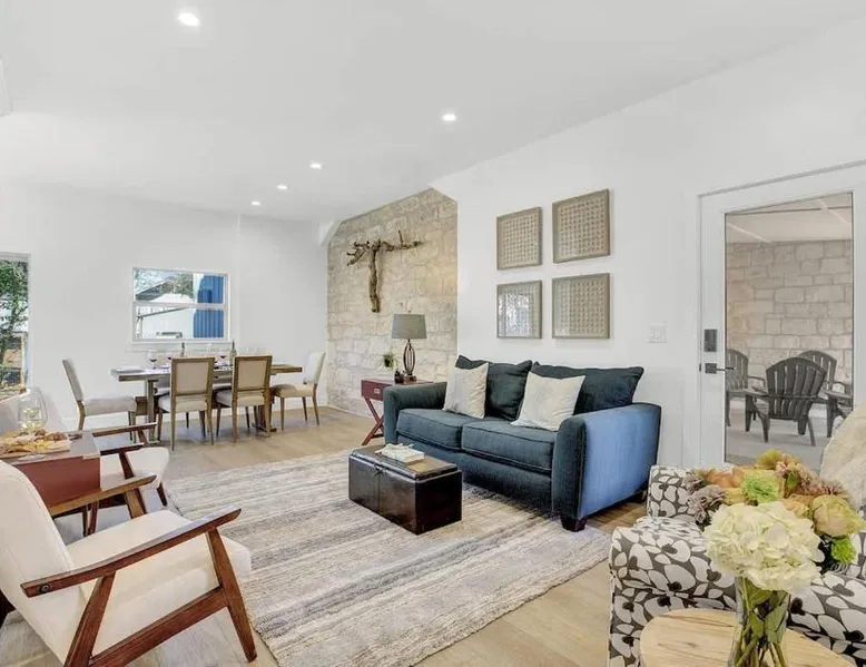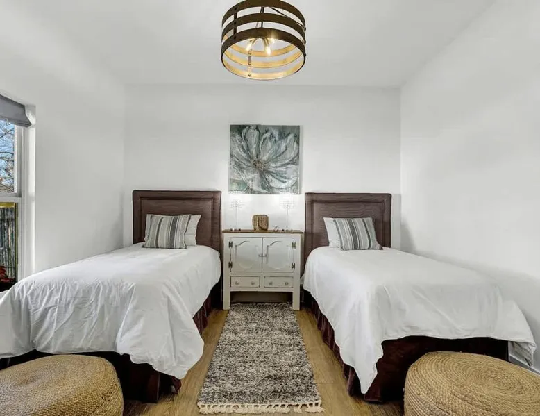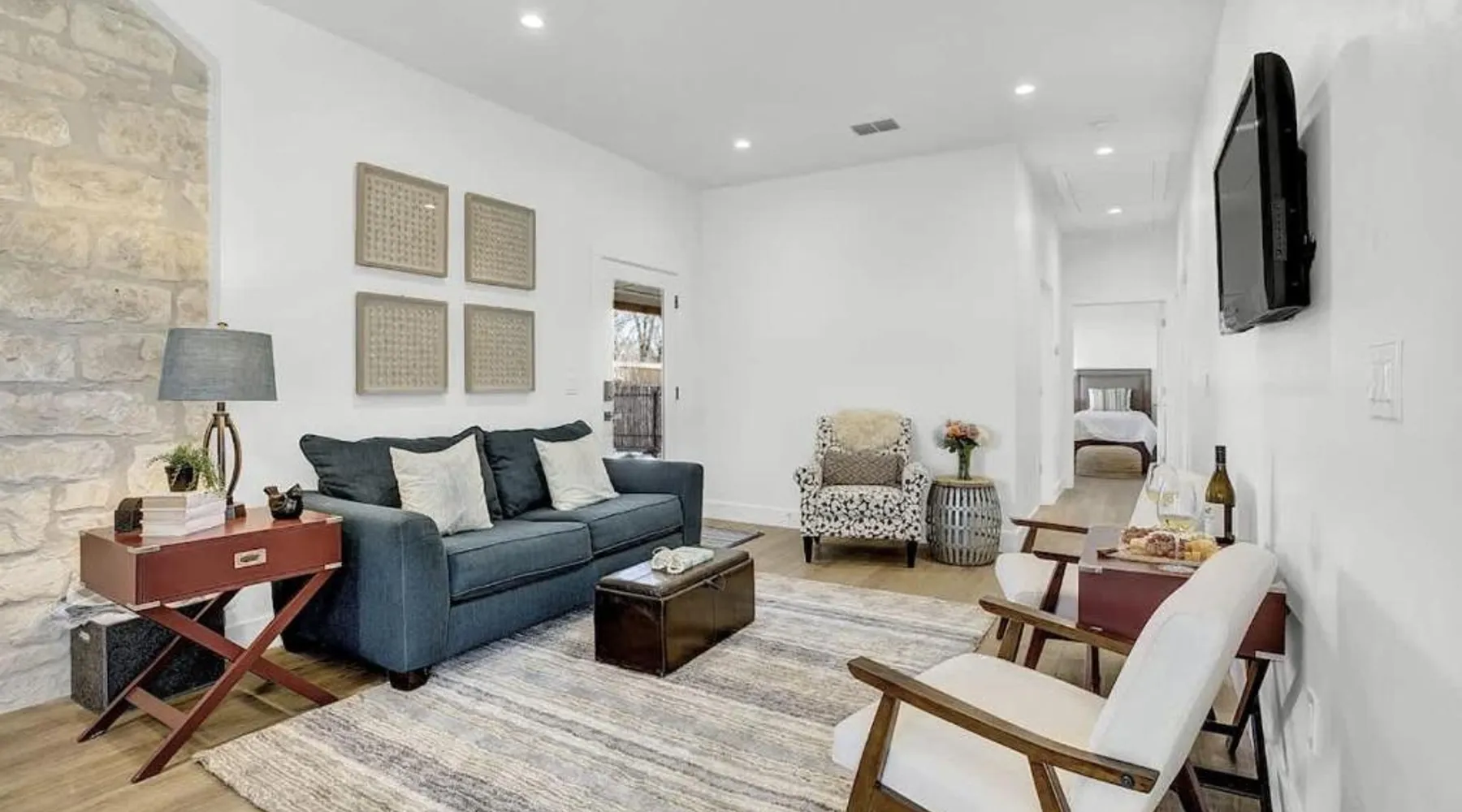 Spacious Accommodations: The Homestead Carriage House in Fredericksburg offers a spacious holiday home with three bedrooms and two bathrooms. Family rooms and a private entrance ensure comfort for all guests. Modern Amenities: Guests enjoy free WiFi, air-conditioning, and a fully equipped kitchen with a coffee machine, dishwasher, and microwave. Additional amenities include a washing machine, dining area, and outdoor fireplace. Convenient Location: Located 66 mi from San Antonio International Airport, the property is near Rancho Ponte Vineyard (6.2 mi) and Enchanted Rock State Natural Area (17 mi). Cycling enthusiasts can explore the surrounding area. Highly Rated by Guests: The Homestead Carriage House receives high ratings for its spaciousness and excellent facilities, making it a preferred choice for holidaymakers. Guests will have a special experience as the holiday home features a fireplace. Featuring a private entrance, this spacious holiday home also consists of 3 bedrooms, a seating area and 2 bathrooms with a shower and a hairdryer. Guests can make meals in the kitchen that is equipped with a stovetop, a refrigerator, a dishwasher and kitchenware. Boasting a patio, this holiday home also provides air conditioning, a washing machine and a flat-screen TV. The unit offers 4 beds.