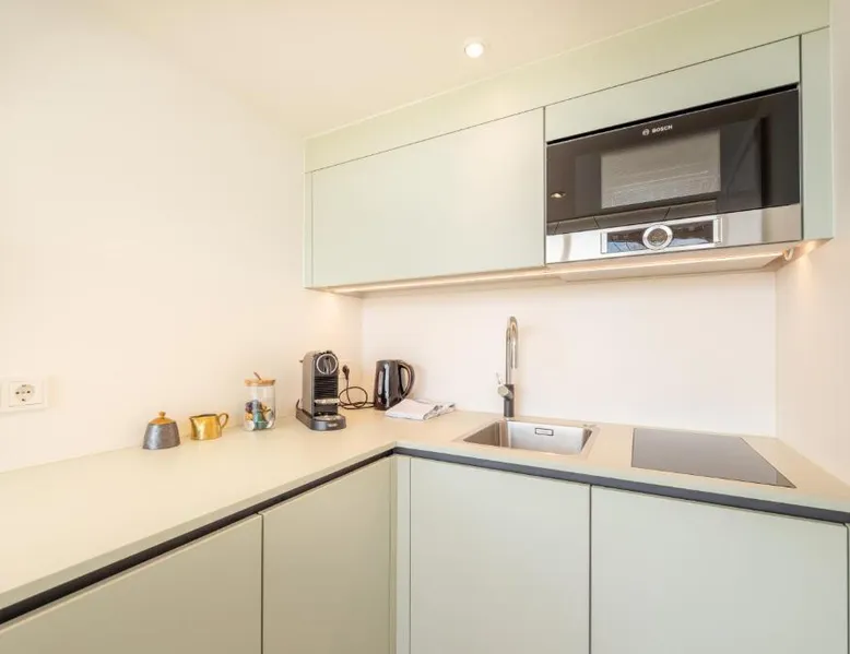 Modern Amenities: WannseeLiebe in Berlin offers a sauna, garden, terrace, and free WiFi. The apartment includes a kitchenette, washing machine, private bathroom, and lake views. Comfortable Living: Guests can relax in the seating area, dining table, and work desk. Additional amenities include a coffee machine, dishwasher, microwave, electric kettle, and TV. Prime Location: Located 23 mi from Berlin Brandenburg Airport, the property is near attractions such as Sanssouci Palace (6.2 mi) and Kurfürstendamm (11 mi). Water sports and boating are available in the surroundings. Guest Satisfaction: Highly rated for its lakes, scenic views, and convenient location. Featuring 1 bedroom, this apartment offers 1 bathroom with a hairdryer, a seating area and terrace where you can relax. The well-fitted kitchenette features a refrigerator, a dishwasher, a microwave and a toaster. The apartment offers a washing machine, a coffee machine, a wardrobe, a flat-screen TV, as well as lake views. The unit has 1 bed.