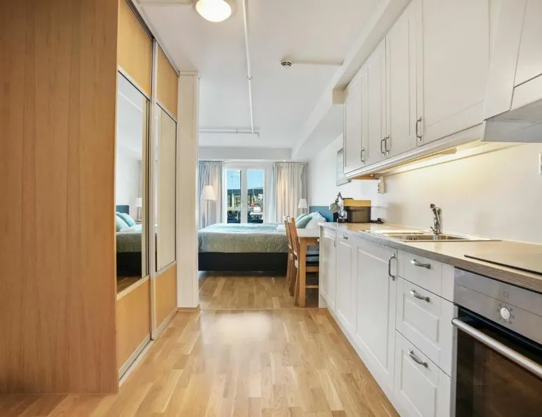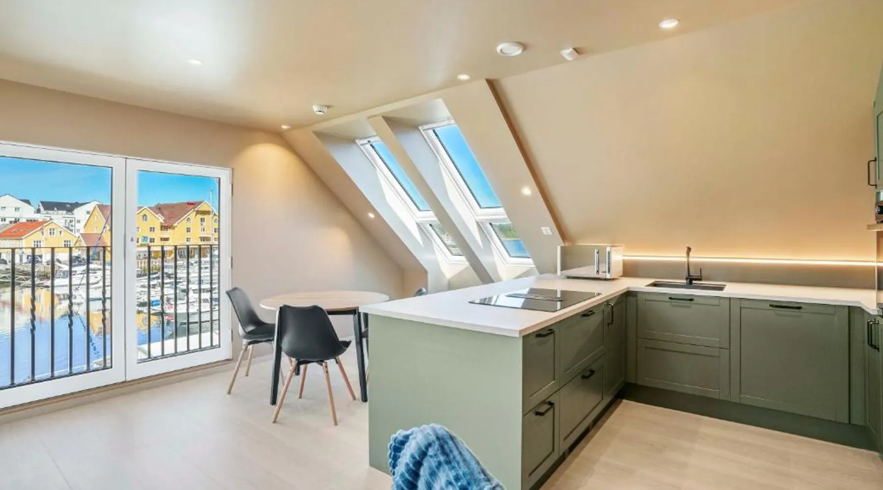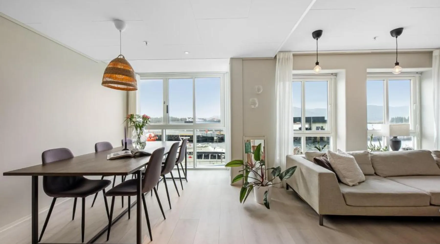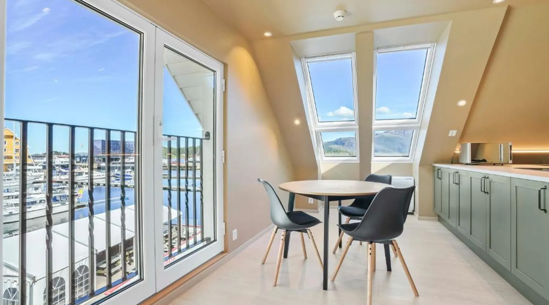 Comfortable Accommodations: Florø Apartments Hotell in Florø offers family rooms with private bathrooms. Each unit features air-conditioning, a kitchenette, and a balcony or terrace with sea views. Modern Amenities: Guests enjoy free WiFi, a washing machine, and a fully equipped kitchen with a refrigerator, microwave, and stovetop. Additional amenities include a dining area, TV, and free toiletries. Convenient Location: Located 1.2 mi from Florø Airport, the aparthotel is highly rated for its convenient location. Guests appreciate its central position for city trips. The unit offers 4 beds.