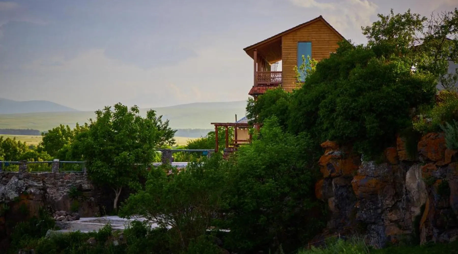 Elegant Accommodations: Edis Dacha in Tsalka offers a hotel with a garden, sun terrace, and an infinity swimming pool. Guests enjoy mountain and garden views from balconies and terraces. Comfortable Amenities: The property features a restaurant serving local cuisine, a bar, and free WiFi. Additional facilities include a lounge, outdoor fireplace, and a 24-hour front desk. Prime Location: Located 63 mi from Tbilisi International Airport, Edis Dacha is highly rated for its scenic location and attentive host. Guests appreciate the breakfast provided by the property. The suite has 1 bedroom and 1 bathroom with a shower and free toiletries. The suite features soundproof walls, a wardrobe, a dressing room as well as a terrace with garden views. The unit has 2 beds.