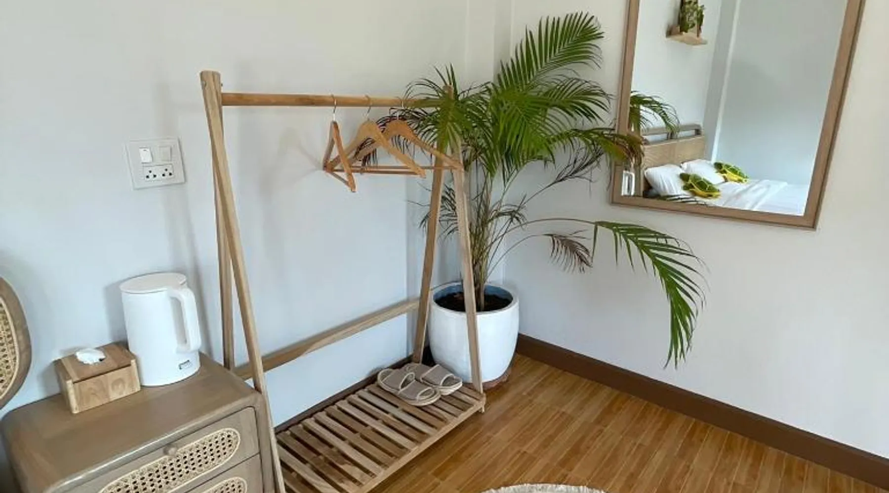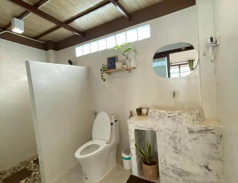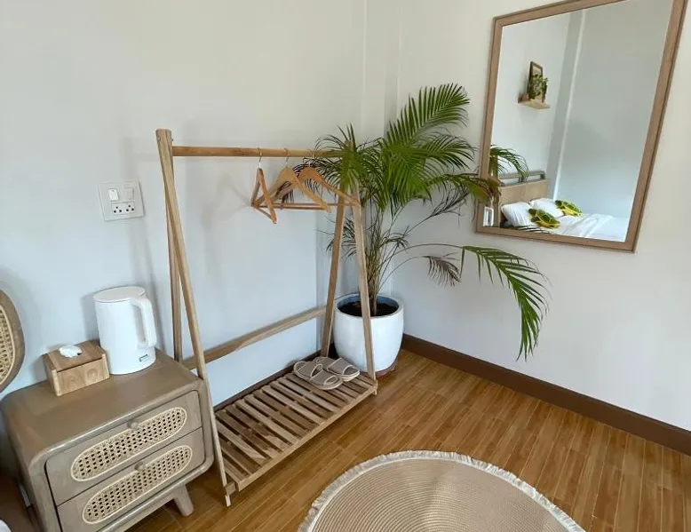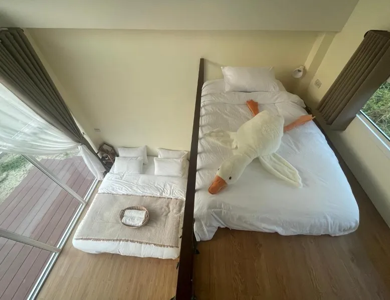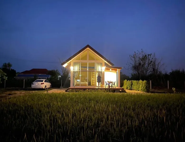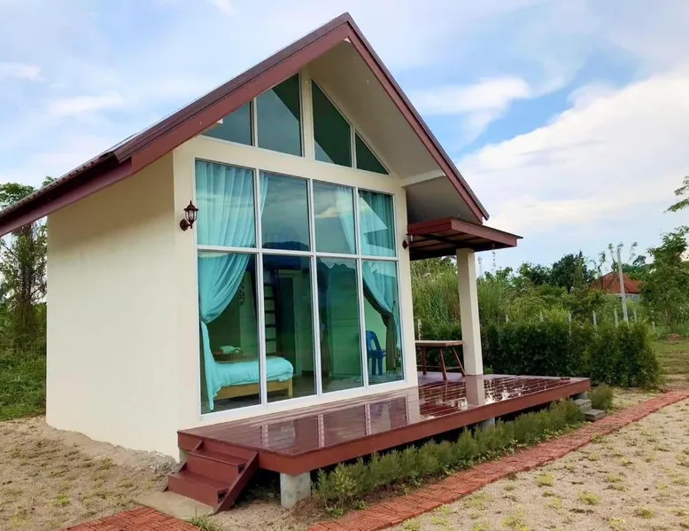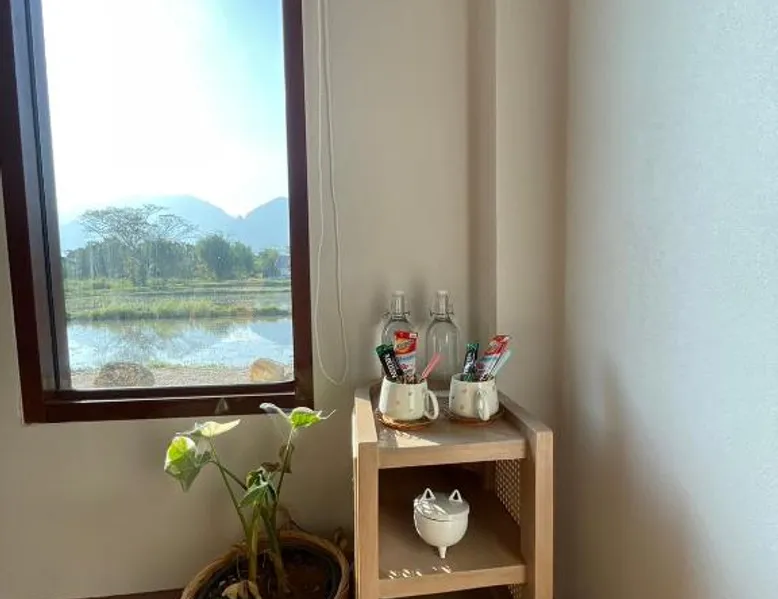 Charming Chalet in Chiang Rai: KeawKangNa Farmstay แก้วก๋างนา ฟาร์มสเตย์ offers a recently renovated chalet in Chiang Rai. Guests enjoy a terrace and balcony with garden and mountain views. Comfortable Accommodations: The chalet features air-conditioning, a private bathroom with bidet, and a dining area. Additional amenities include a mini-bar, soundproofing, and free toiletries. Delicious Breakfast: A warm Asian breakfast is served daily, including juice, fruits, and dishes. Outdoor dining areas provide a pleasant setting for meals. Local Attractions: Nearby attractions include Doi Tung Royal Villa (14 mi), Golden Triangle Park Hall Of Opium (18 mi), Mae Fah Luang University (25 mi), and Rajabhat ChiangRai University (29 mi). Walking tours and cycling are available. Highly Rated by Guests: Guests appreciate the friendly host and excellent service, making it a highly rated choice. This chalet comes with 1 living room, 1 separate bedroom and 1 bathroom with a shower and free toiletries. This chalet is air-conditioned and has soundproof walls, a mini-bar as well as a terrace with garden views. The unit has 1 bed.