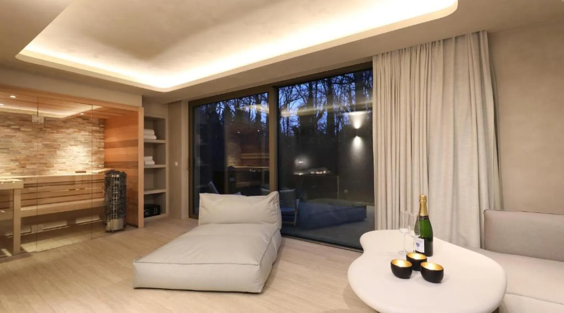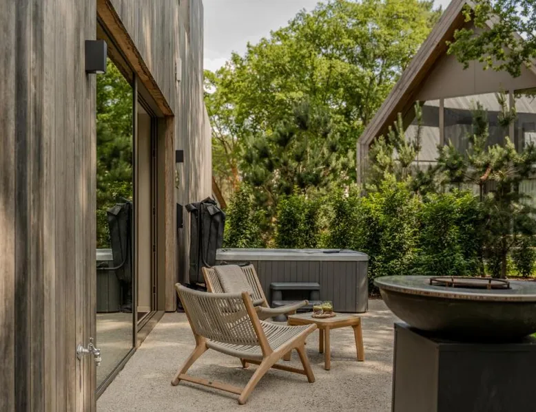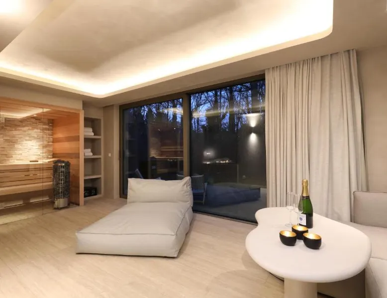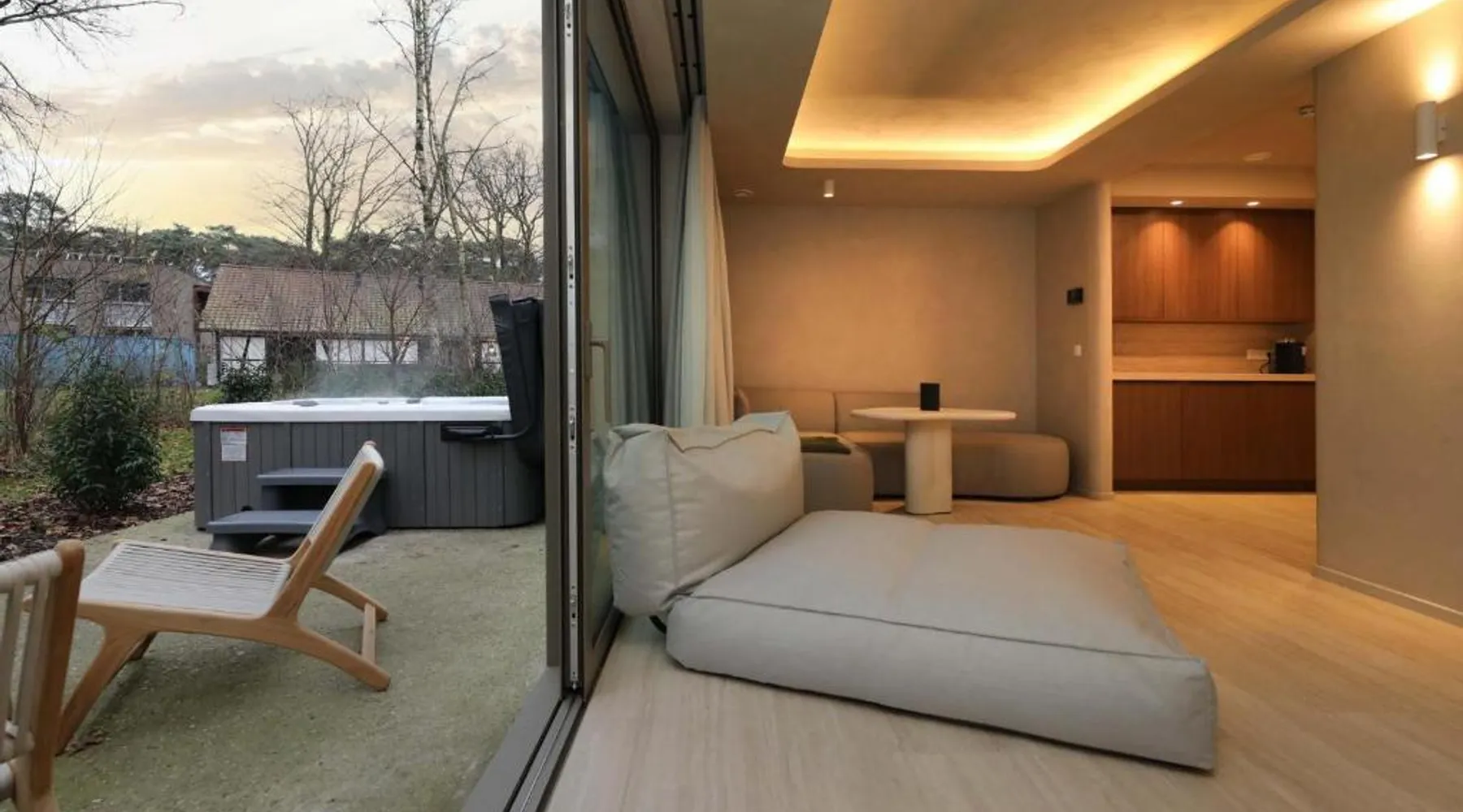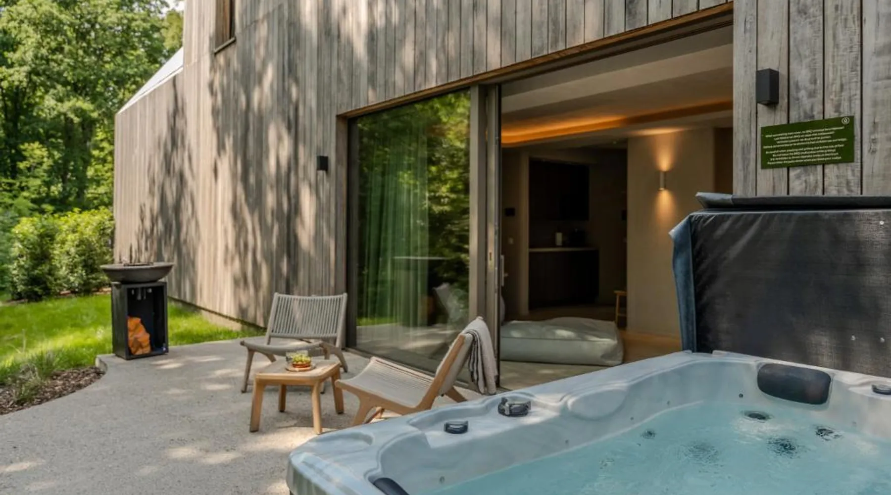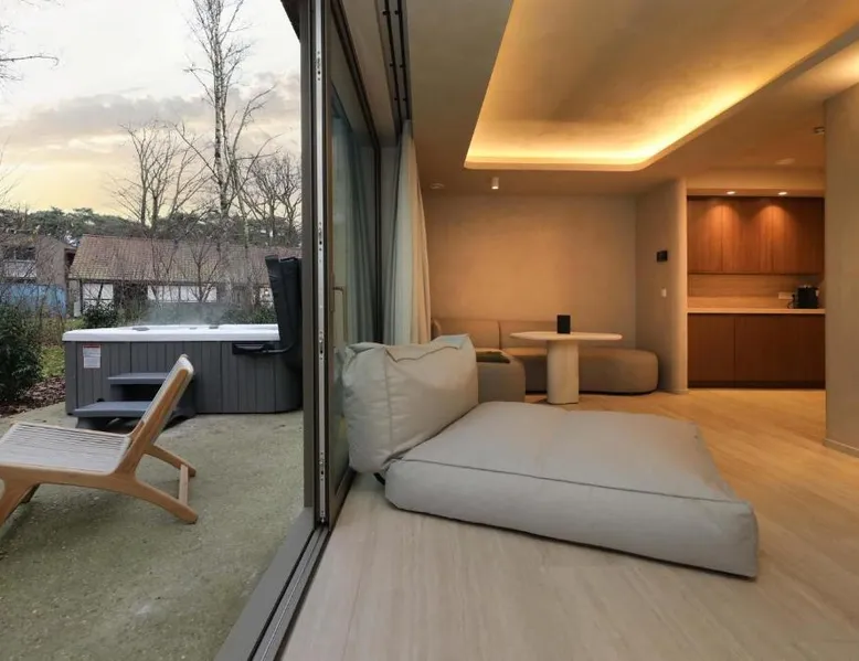 Spacious Accommodations: Wellness Suite - 2 personen - Woodz Lodges in Heusden-Zolder offers a spacious apartment with one bedroom, a living room, and a bathroom. Guests enjoy a terrace with garden views and a fully equipped kitchenette. Wellness Facilities: The property features a spa and wellness center, sauna, and hot tub. Free WiFi is available throughout the apartment, ensuring connectivity for all guests. Comfortable Amenities: The apartment includes bathrobes, a hairdryer, and a coffee machine. Additional amenities include a dishwasher, microwave, and TV. Free on-site private parking is provided. Local Attractions: Located 8.7 mi from Hasselt Market Square, 12 mi from Bokrijk, and 13 mi from C-Mine. Other nearby attractions include Horst Castle (24 mi) and Bobbejaanland (30 mi). Guest Satisfaction: Highly rated by guests for its spaciousness and excellent facilities. The hot tub and sauna are the standout features of this suite. This spacious suite features 1 living room, 1 separate bedroom and 1 bathroom with a shower and bathrobes. Guests will find a refrigerator, a dishwasher, kitchenware and a microwave in the kitchenette. The suite also comes with a barbecue. Boasting a terrace with garden views, this suite also features a tea and coffee maker and a TV. The unit has 1 bed.
