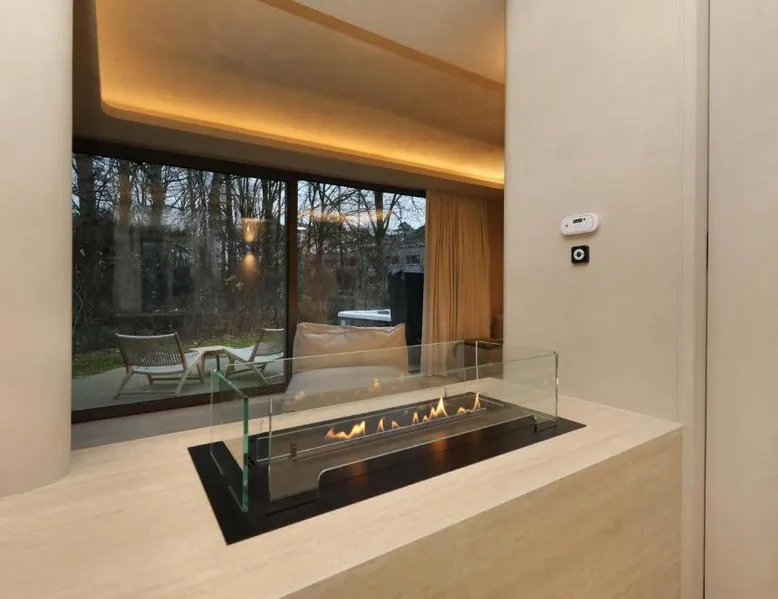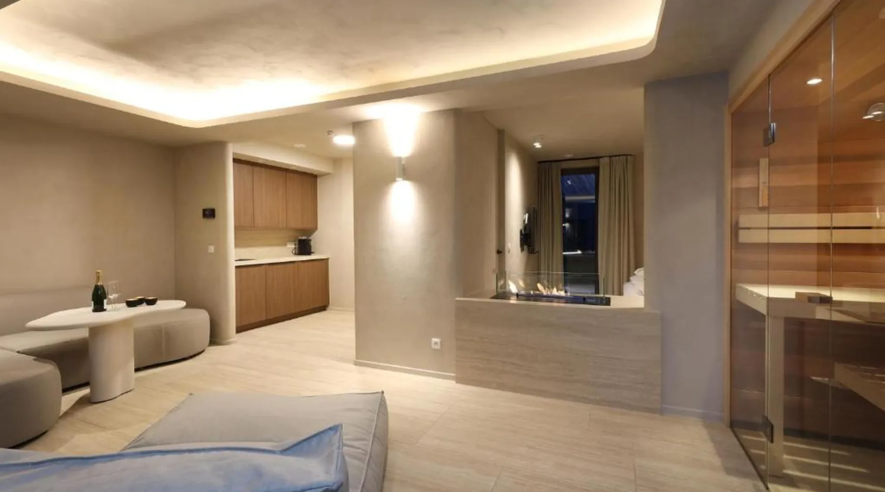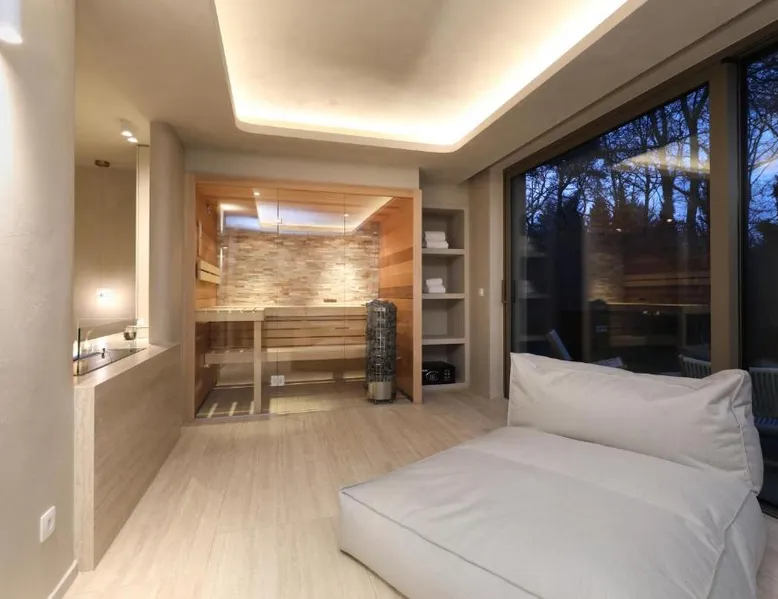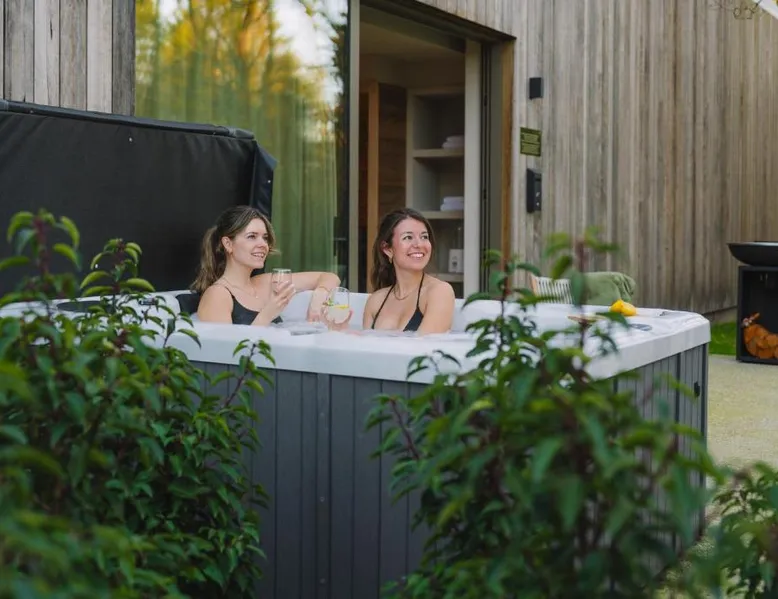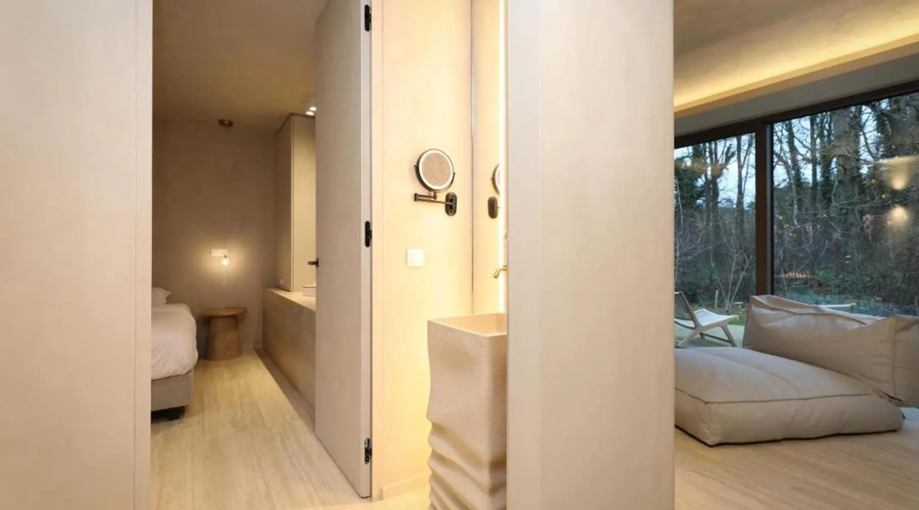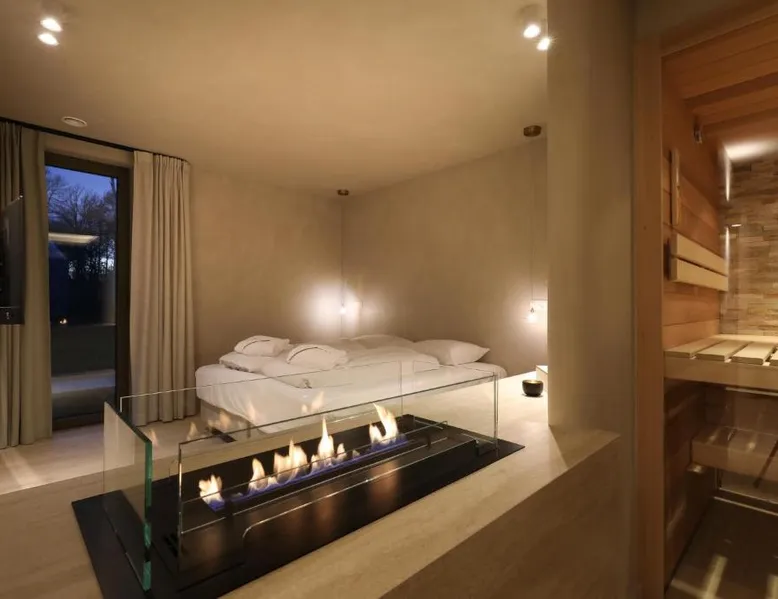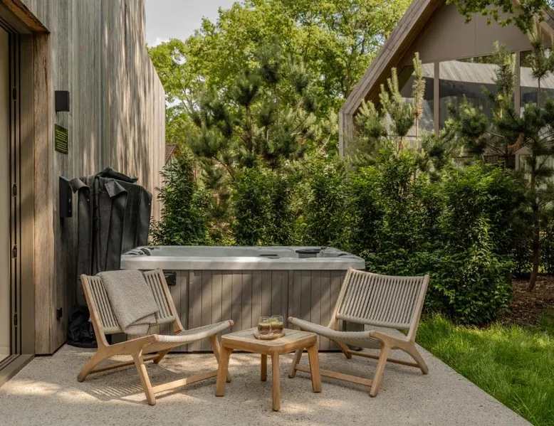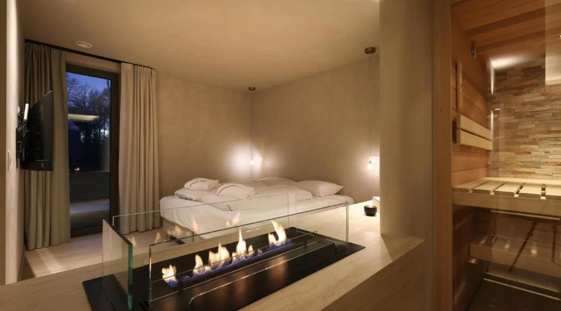 Spacious Accommodations: Wellness Suite - 2 personen - Woodz Lodges in Heusden-Zolder offers a spacious apartment with one bedroom, a living room, and a bathroom. Guests enjoy a terrace with garden views and a fully equipped kitchenette. Wellness Facilities: The property features a spa and wellness center, sauna, and hot tub. Free WiFi is available throughout the apartment, ensuring connectivity for all guests. Comfortable Amenities: The apartment includes bathrobes, a hairdryer, and a coffee machine. Additional amenities include a dishwasher, microwave, and TV. Free on-site private parking is provided. Local Attractions: Located 8.7 mi from Hasselt Market Square, 12 mi from Bokrijk, and 13 mi from C-Mine. Other nearby attractions include Horst Castle (24 mi) and Bobbejaanland (30 mi). Guest Satisfaction: Highly rated by guests for its spaciousness and excellent facilities. The hot tub and sauna are the standout features of this suite. This spacious suite features 1 living room, 1 separate bedroom and 1 bathroom with a shower and bathrobes. Guests will find a refrigerator, a dishwasher, kitchenware and a microwave in the kitchenette. The suite also comes with a barbecue. Boasting a terrace with garden views, this suite also features a tea and coffee maker and a TV. The unit has 1 bed.