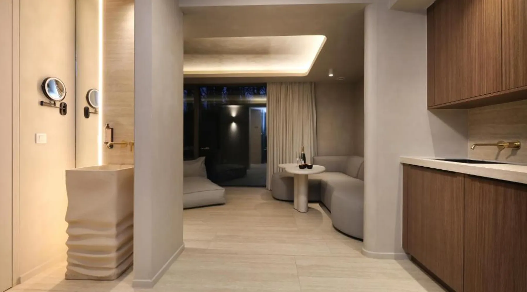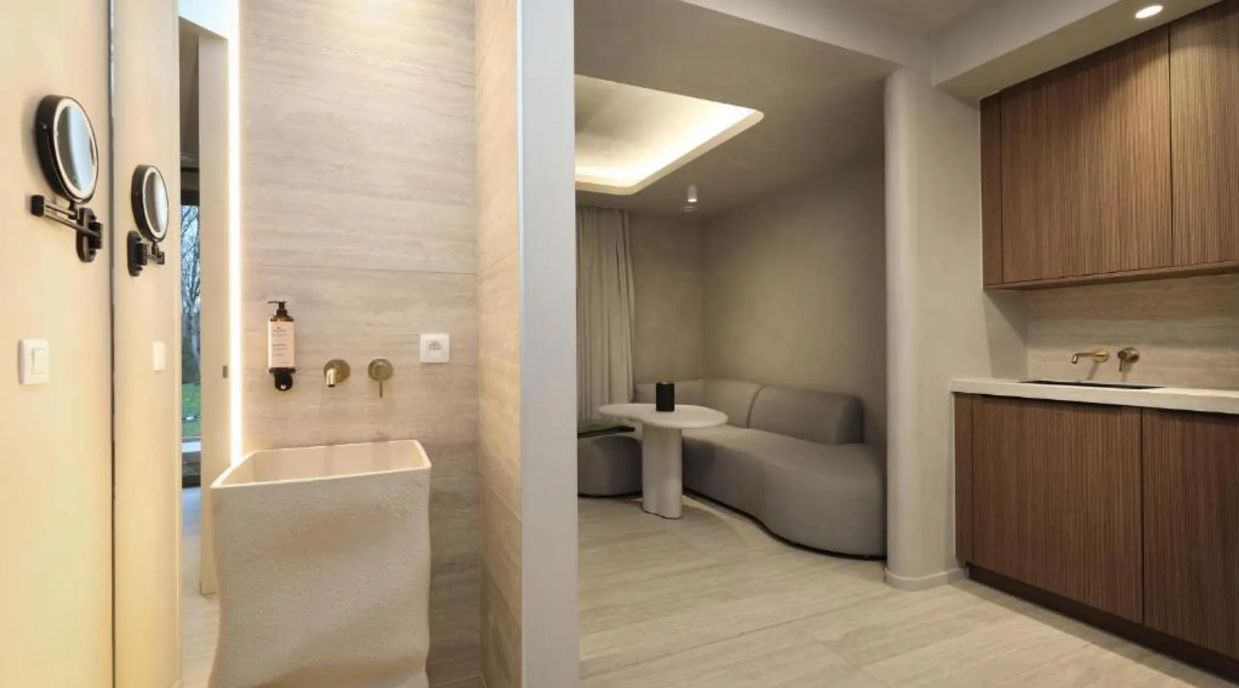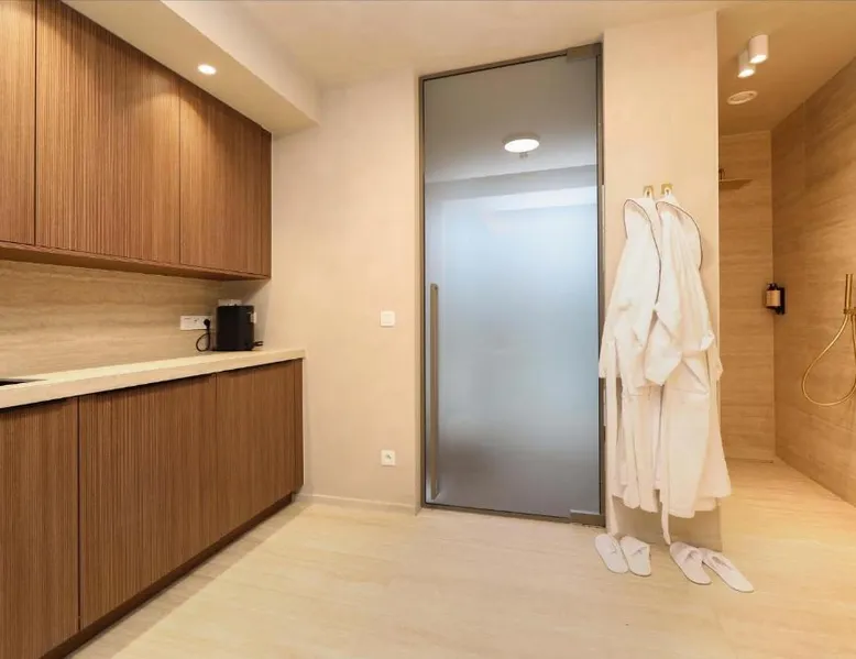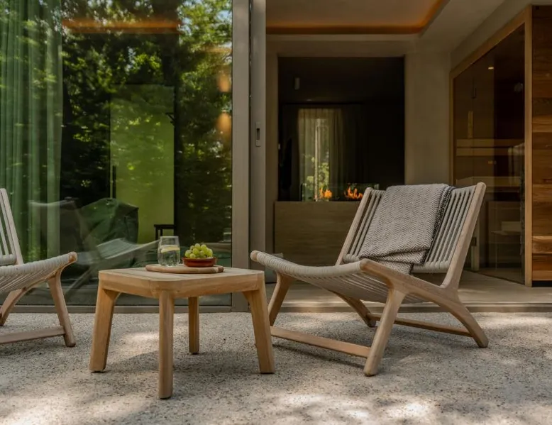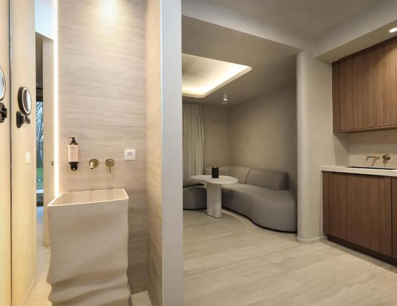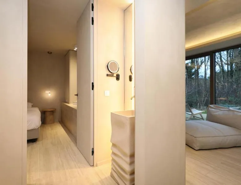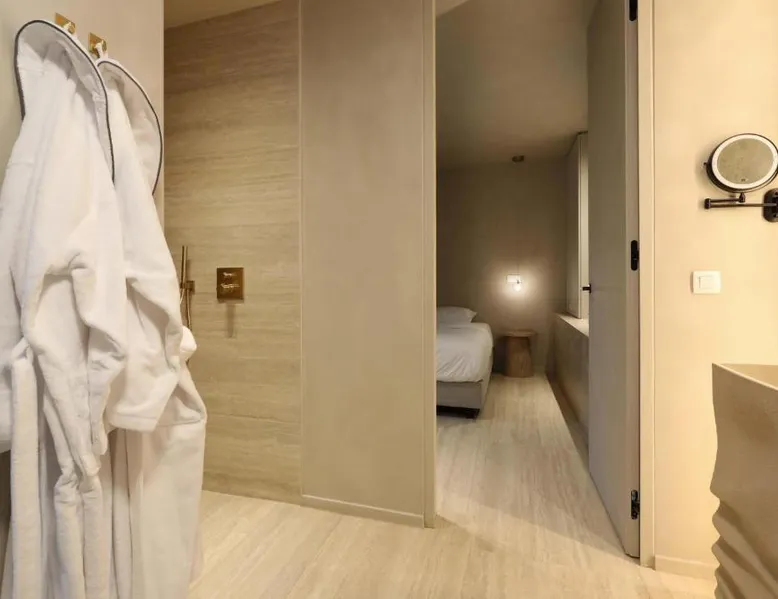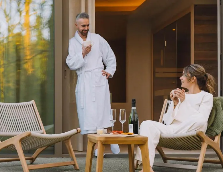 Spacious Accommodations: Wellness Suite - 2 personen - Woodz Lodges in Heusden-Zolder offers a spacious apartment with one bedroom, a living room, and a bathroom. Guests enjoy a terrace with garden views and a fully equipped kitchenette. Wellness Facilities: The property features a spa and wellness center, sauna, and hot tub. Free WiFi is available throughout the apartment, ensuring connectivity for all guests. Comfortable Amenities: The apartment includes bathrobes, a hairdryer, and a coffee machine. Additional amenities include a dishwasher, microwave, and TV. Free on-site private parking is provided. Local Attractions: Located 8.7 mi from Hasselt Market Square, 12 mi from Bokrijk, and 13 mi from C-Mine. Other nearby attractions include Horst Castle (24 mi) and Bobbejaanland (30 mi). Guest Satisfaction: Highly rated by guests for its spaciousness and excellent facilities. The hot tub and sauna are the standout features of this suite. This spacious suite features 1 living room, 1 separate bedroom and 1 bathroom with a shower and bathrobes. Guests will find a refrigerator, a dishwasher, kitchenware and a microwave in the kitchenette. The suite also comes with a barbecue. Boasting a terrace with garden views, this suite also features a tea and coffee maker and a TV. The unit has 1 bed.