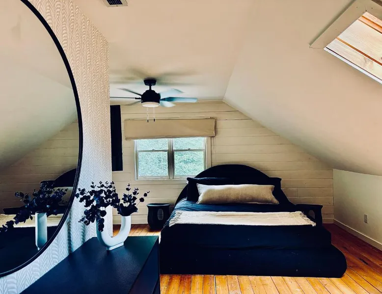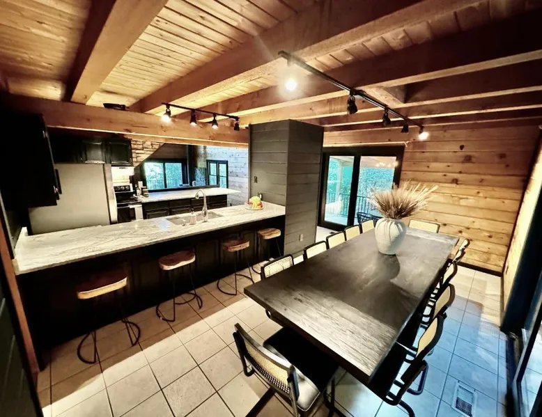 Spacious Accommodations: MOONLIGHT MOUNTAIN MANOR in Horse Shoe offers a spacious holiday home with five bedrooms and three bathrooms. Recently renovated, the property features a garden, terrace, and free WiFi. Modern Amenities: Guests enjoy a hot tub, family rooms, air-conditioning, and a fully equipped kitchen with a dishwasher, microwave, and oven. Additional amenities include a washing machine, fireplace, and TV. Convenient Location: Located 9.9 mi from Asheville Regional Airport, the property is 24 mi from Biltmore Estate and 16 mi from the North Carolina Arboretum. Nearby attractions include Harrah's Cherokee Center and Caesars Head State Park. This holiday home features a hot tub and a fireplace. In the fully equipped kitchen, guests will find a stovetop, a refrigerator, a dishwasher and an oven. The spacious holiday home features air conditioning, a washing machine, a tea and coffee maker as well as a terrace with garden views. The unit has 8 beds.