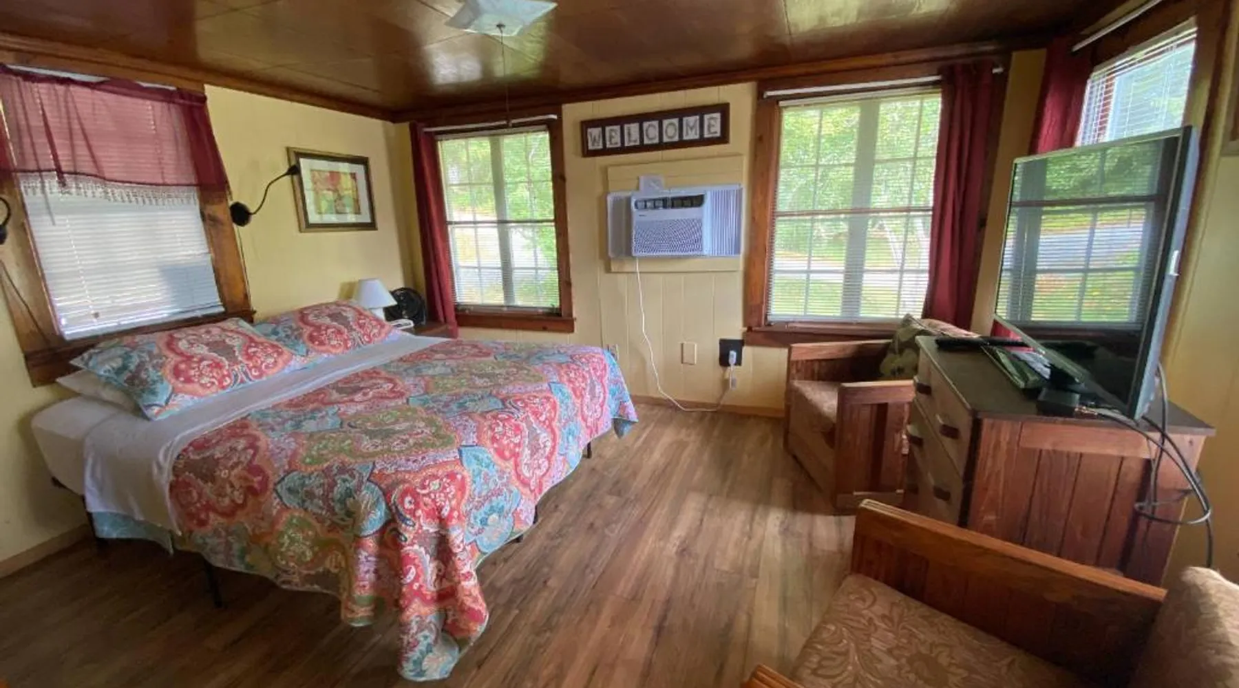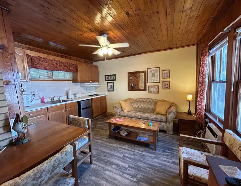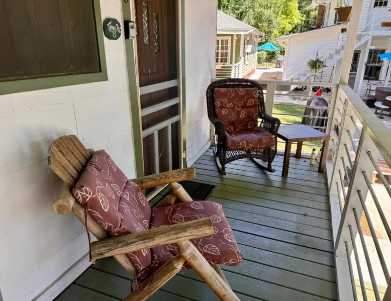 Comfortable Accommodations: Mountain Lake Cottages in Hendersonville offers apartment-style accommodations with garden and lake views. Each unit features a private bathroom, kitchenette, and balcony. Outdoor Amenities: Guests can enjoy a garden, outdoor fireplace, play area, and seating areas. Additional facilities include barbecue areas, picnic spots, and outdoor dining areas. Convenient Location: Located 15 mi from Asheville Regional Airport, the property is near attractions such as Biltmore Estate (27 mi) and North Carolina Arboretum (22 mi). Free on-site private parking is available. Guest Satisfaction: Highly rated by guests for its excellent facilities and scenic views. Featuring a private entrance, this air-conditioned suite consists of a kitchenette, 1 bedroom and 1 bathroom with a shower and a hairdryer. The fully equipped kitchenette features a stovetop, a refrigerator, kitchenware and a microwave. Boasting a balcony with garden views, this suite also provides a coffee machine and a flat-screen TV with cable channels. The unit offers 1 bed.