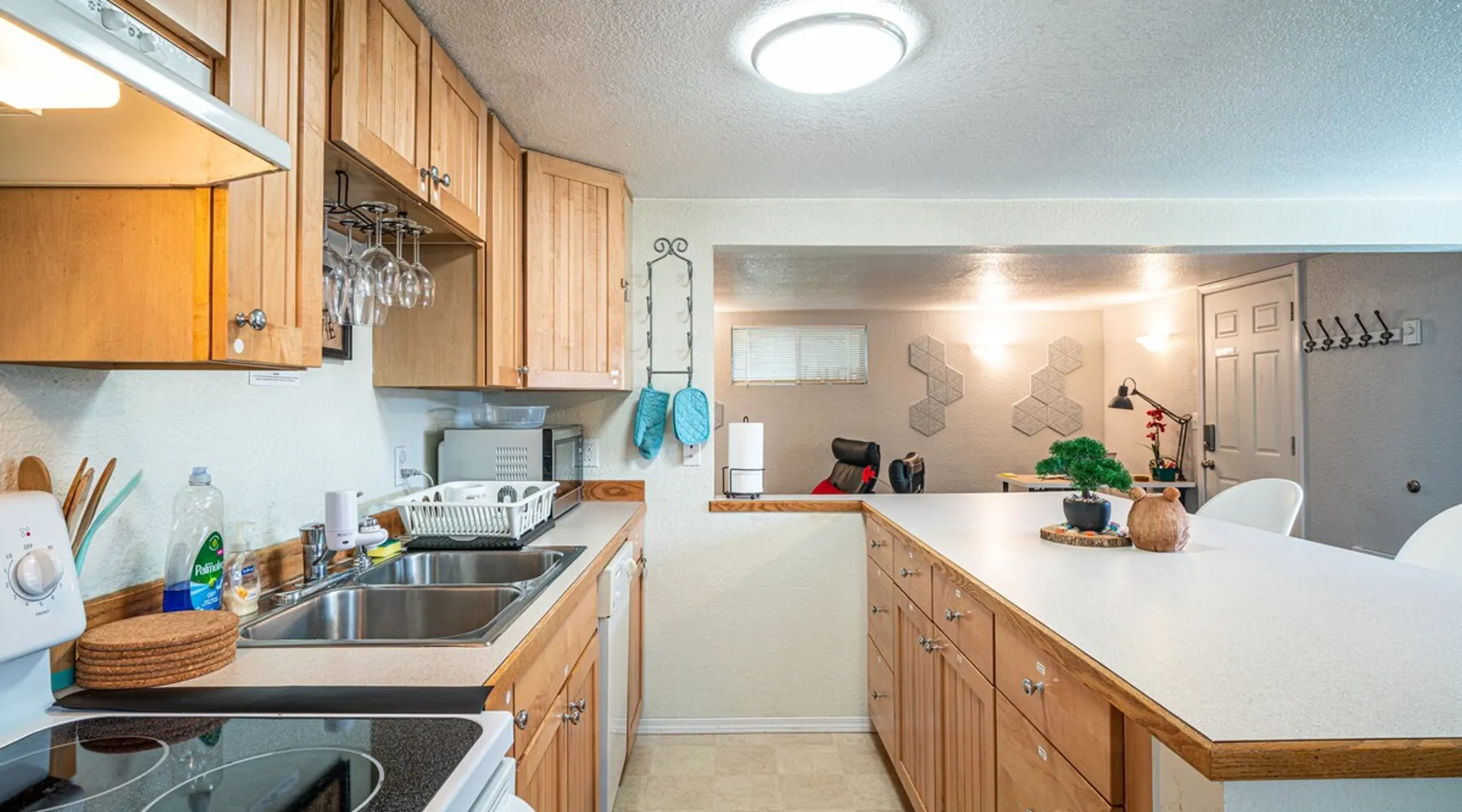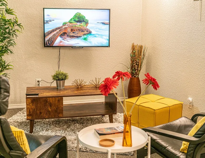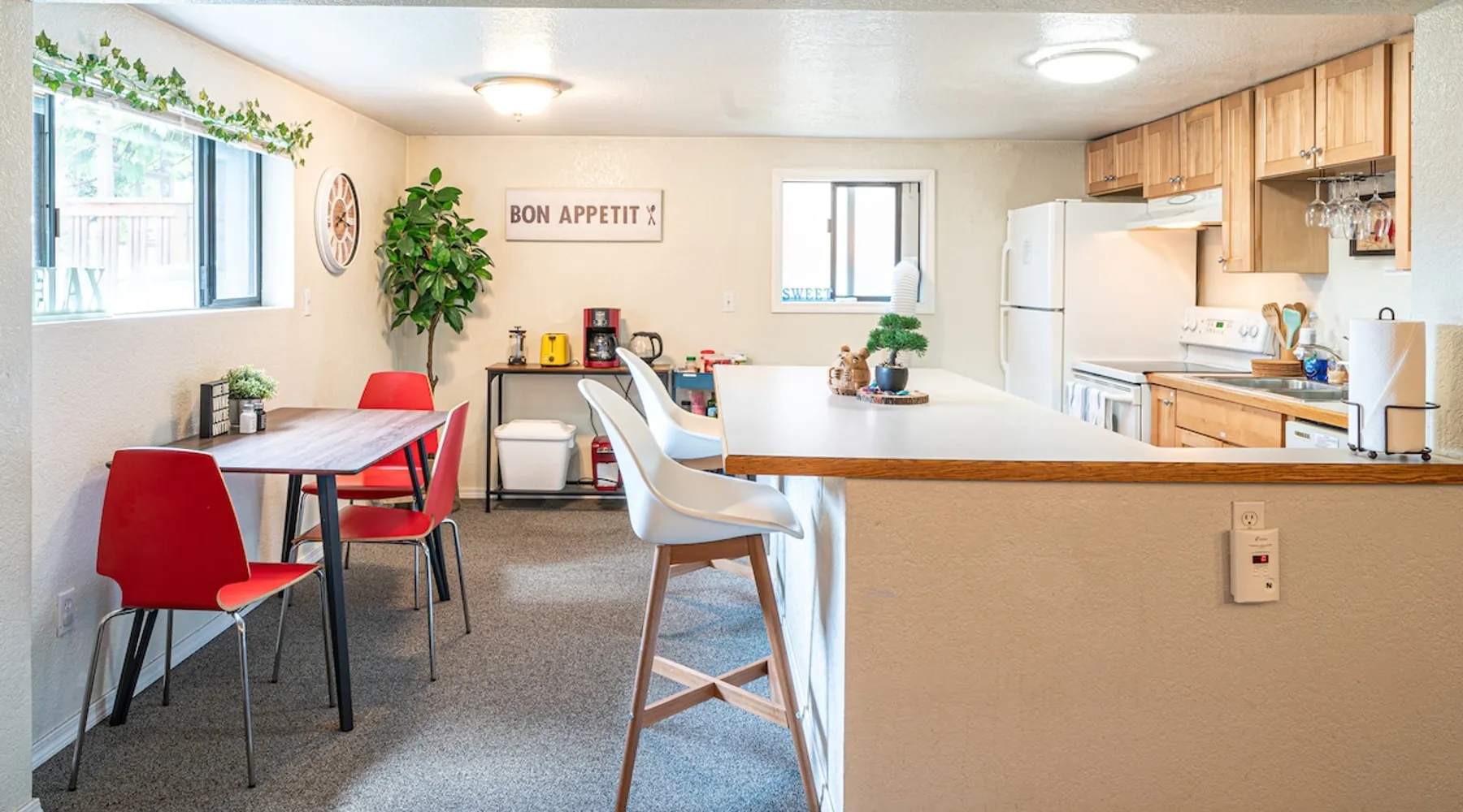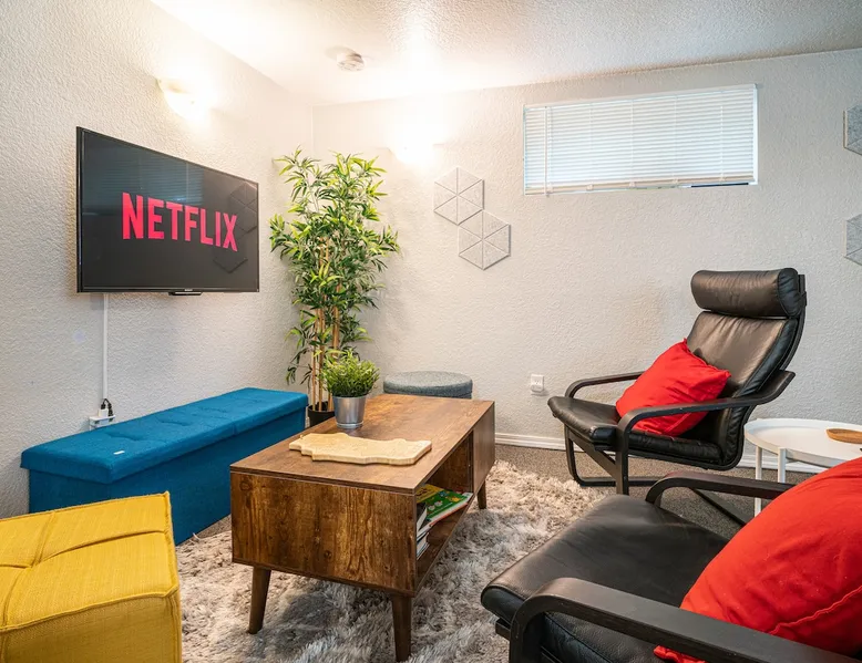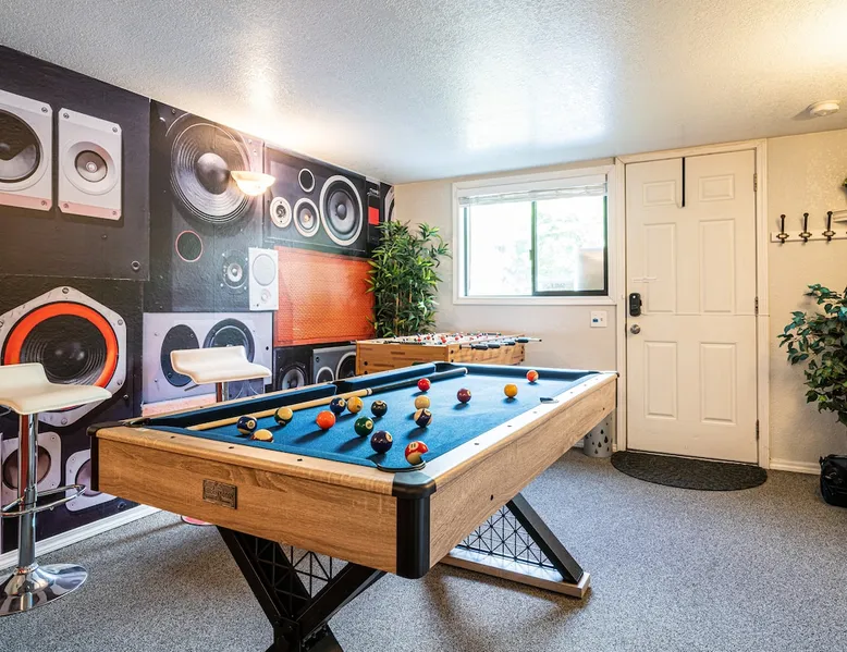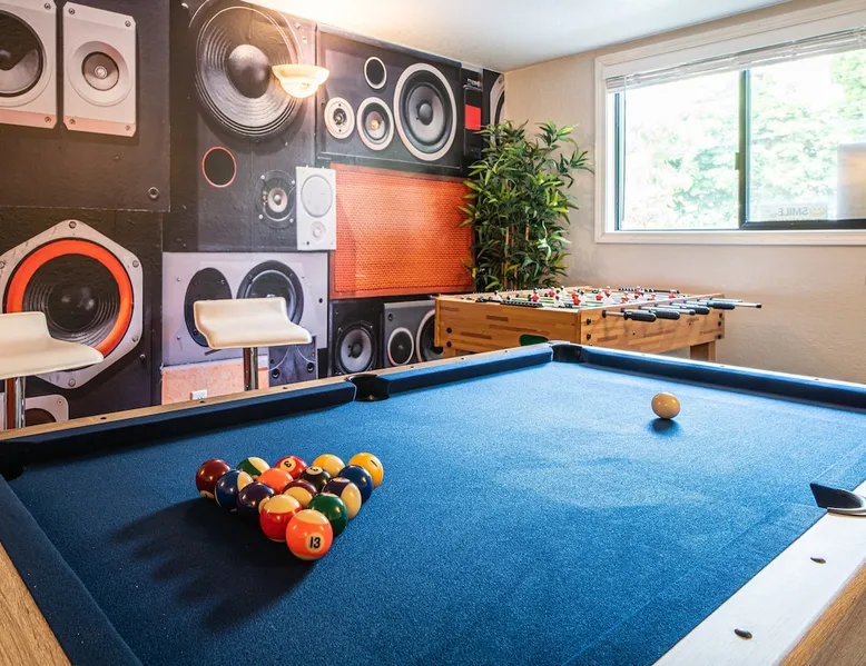 ✦ 1130 sqft! Spacious workation & Prime Location. ✦ 84 walk score + 2 bus stops in front. 4-7 min walk to Woodland Zoo, hip restaurants and groceries; 10-20 min bus ride to Downtown, Space Needle, Pike Place, Ballard Market, U-District. Ideal WFH setup w/ 4 desks + 600mbps wifi. 2 large living rooms, fully-stocked kitchen & bath, 2 bedrooms, a comfortable queen sofa bed, sleep up to 6 ppl. 2 Smart TVs. Gorgeous backyard w/ BBQ. AC, washer/dryer & parking incl. The space This cute bottom unit of a Tudor duplex is well set up for your entertainment, relaxation, and work from home. Entire place plus a cute backyard and your own parking. Please make yourself at home! ✦ Large living room #1 includes everything you need to kick back and relax: a smart TV, pool table, foosball table, various board games and a sectional sofa that can be pulled out to a comfortable close to full XL size bed PLUS a working desk/chair set-up with extra monitor, key board and mouse. ✦ Large living room #2 has two comfortable lounge chairs and a second smart TV ✦ Fully equipped, cozy kitchen with a large island, a coffee bar and a set of dining table and chair. All general kitchenware, dining ware, stove, oven, dishwasher and microwave will be available for your use. ✦ A clean, full-sized, well-stocked bathroom with body soap, shampoo and conditioner. ✦ Bedroom #1 includes a queen-sized bed with memory foam mattress, an air-conditioner and a computer desk/chair. ✦ Bedroom #2 includes a full-sized bed with memory foam mattress and a computer desk/chair. ✦ Washer and dryer in unit making your stay extra comfortable. ✦ Each room has its own wall heater and can be adjusted to desired temperature individually. ✦ Pack-N-Play w/ mattress, high chair and toddler dining set are provided for the little ones. ✦ Cute backyard with a large BBQ and two sets of outdoor furniture. ✦ Front entrance includes easy keyless entry and a private parking. The parking is tight but it is also a rare find in this prime location. Note: This is the bottom unit of a duplex so some noise and footsteps will be expected. No excessive drinking, party, smoking or drug is allowed. The fire pit shown in the pictures is not available for guest use due to fire hazard and safety reasons. Guest access Guests have access to all areas of the home and the backyard, with the exception of a few locked supply cabinets (for our cleaners) and the fire pit (due to fire hazard and safety reasons). The upstairs unit will share the backyard with the guests. Additionally, kindly be respectful of the upstairs unit/ neighbors by cleaning up after yourself and keeping noises to a reasonable level at all times. The side yard is not available for guests' use. Other things to note 1. A few days prior to your arrival, a digital guidebook will be provided with helpful information regarding check in and check out instructions, emergency information and house rules, as well as recommendations for places to eat and things to do. 2. Keyless entry to the home is provided via a digital keypad. A unique code is provided for each stay, and all previously used codes are deactivated to ensure safety and security. 3. Our home has cameras at front entry and backyard only for safety and insurance purposes. No cameras are inside the house. 4. Our housekeepers will arrive shortly after 11:00 am on the date of checkout. 5. We require pictures of government-issued ID for the safety of our guests, our housekeepers and ourselves. 6. Same day booking may have a later check-in time than 4pm. Check-in time for same day booking will be confirmed by host after booking is approved. Please review the house rules and ensure that you are fully comfortable before booking. We look forward to hosting you! **Long Term Rental bookings** 1) Will need to go through a Tenant Screening Process, which will cost approximately $55 extra (charged by the screening provider). 2) A lease will need to be signed License number: STR-OPLI-21-000509 **Driveway access during a week in December ** A new roof install is scheduled sometime this December 2024. We expect minimal sound impact to this unit during working hours as it is on a lower level. The driveway however will not be available during this time as it needs to be used by the installers. Street parking will be available for use and we will share a guide for potential parking options that are within 1-2 blocks from our home. Thank you. Registration details STR-OPLI-21-000509