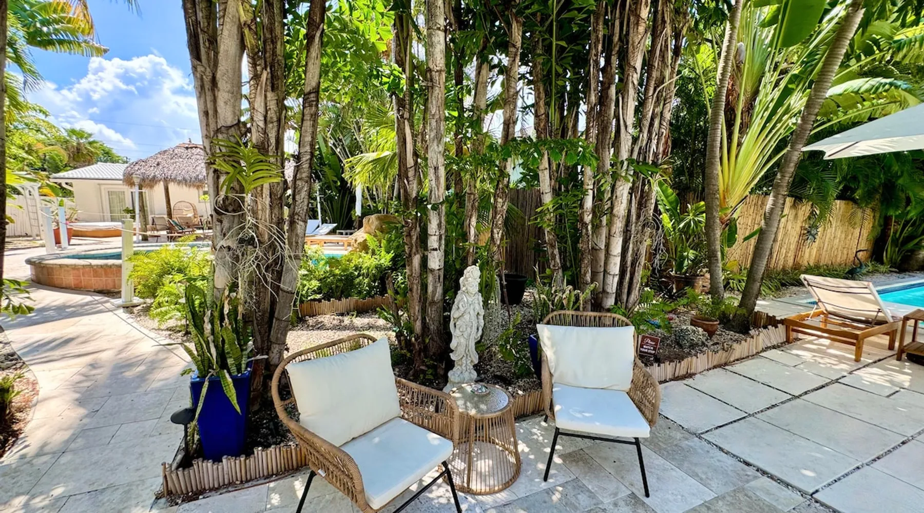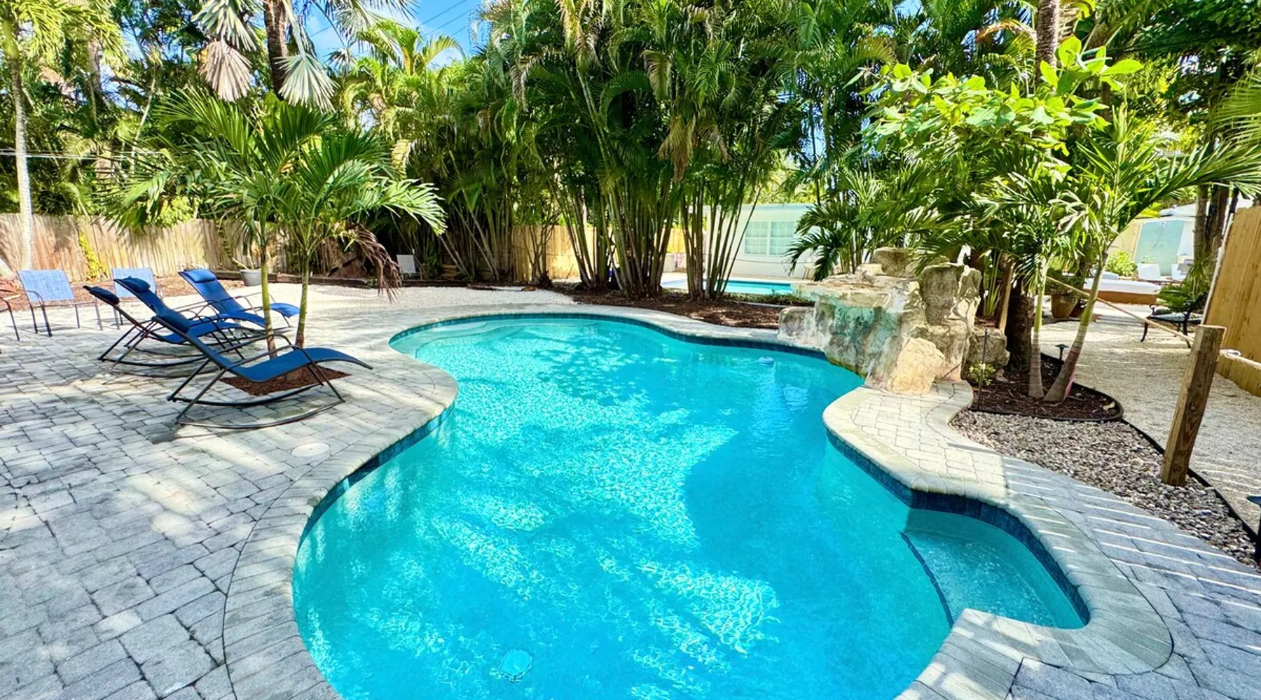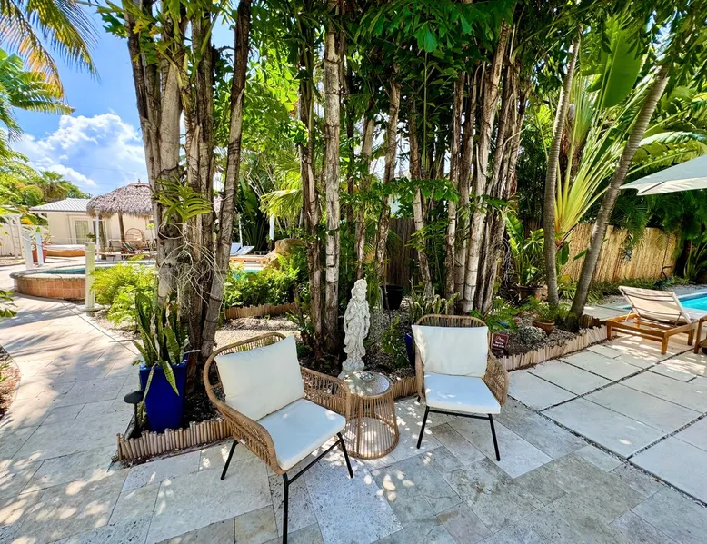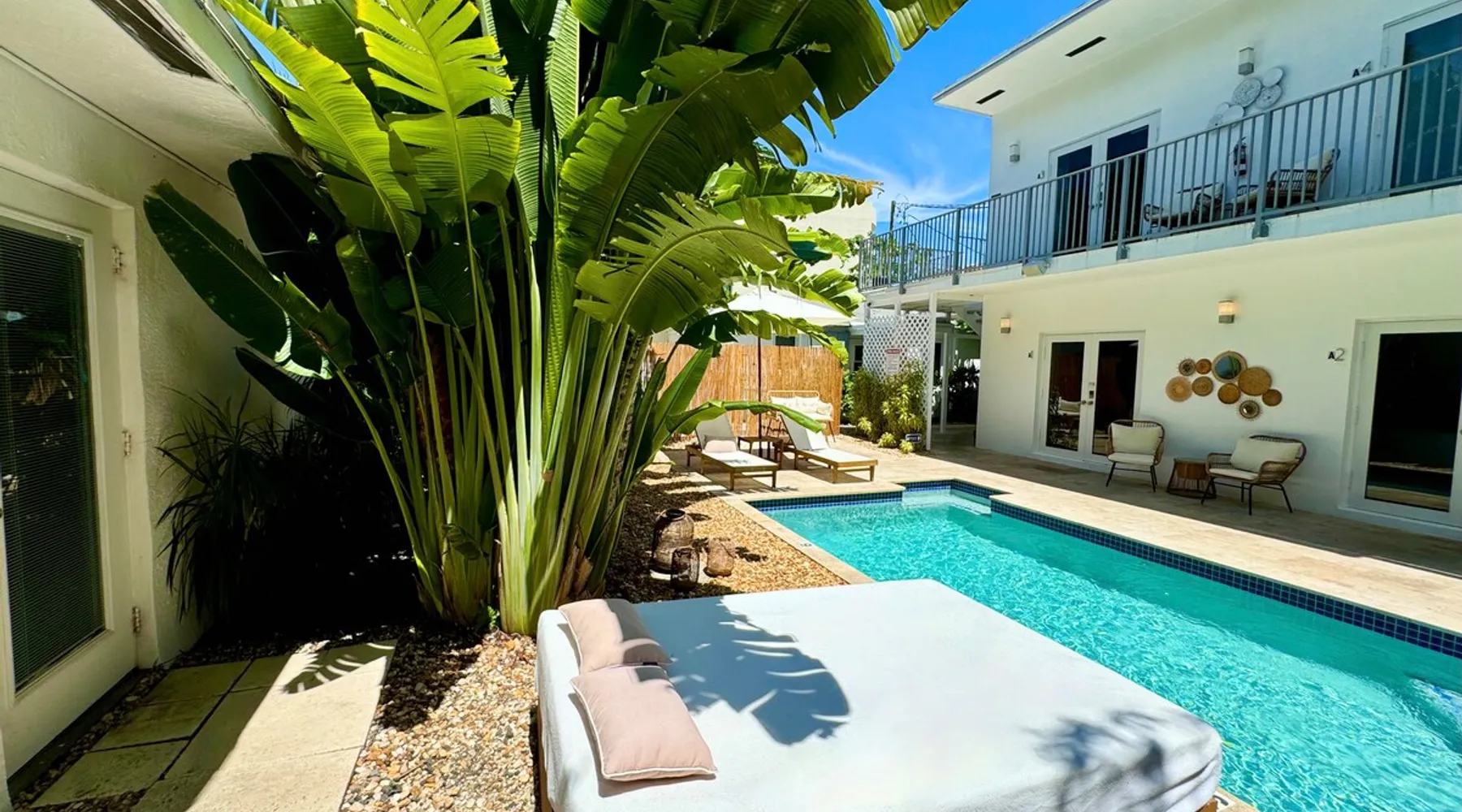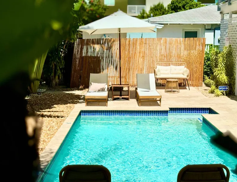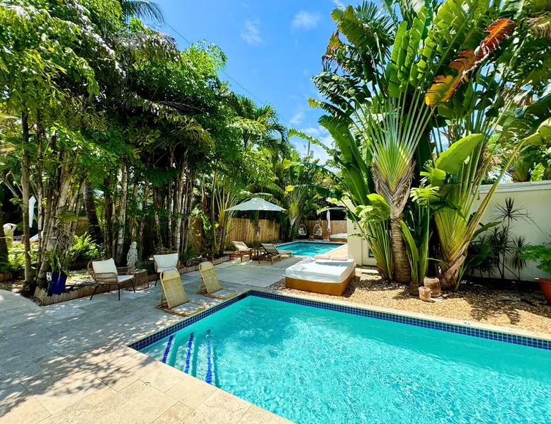 Welcome to Islands Inn on the Drive by Le Chateau! Imagine a charming guesthouse nestled in the vibrant heart of Wilton Manors, where the pulse of Fort Lauderdale's finest bars, restaurants, and shopping is just steps away. This delightful retreat offers the best of both worlds: the excitement of the city's nightlife and the tranquility of a lush, tropical paradise. The space Welcome to Islands Inn on the Drive by Le Chateau! Imagine a charming guesthouse nestled in the vibrant heart of Wilton Manors, where the pulse of Fort Lauderdale's finest bars, restaurants, and shopping is just steps away. This delightful retreat offers the best of both worlds: the excitement of the city's nightlife and the tranquility of a lush, tropical paradise. As you step onto the property, you're greeted by two inviting warm pools, perfect for a refreshing dip any time of the day. The grounds are a verdant oasis, teeming with lush foliage and vibrant flowers, creating a serene backdrop for relaxation. Inside, each room is a sanctuary of comfort, adorned with Le Chateau Soft Cloud Percale luxury linens that promise restorative sleep after a day of adventure. The décor captures the essence of South Florida living, blending coastal charm with modern elegance. Picture yourself lounging by the pool with a refreshing drink in hand, the sun casting a warm glow as you unwind in this idyllic setting. As the day turns to night, venture out to explore the bustling streets of Wilton Manors. Savor delicious cuisine at nearby restaurants, sip on craft cocktails at lively bars, and discover unique treasures at local shops. Every moment at this guesthouse is an opportunity to create unforgettable memories. From lazy afternoons by the pool to nights filled with laughter and exploration, your time here will be filled with joy and discovery. By choosing this lovely guesthouse, you're not just booking a place to stay; you're immersing yourself in an experience that epitomizes the charm and vibrancy of South Florida living. ***Islands Inn on the Drive is a clothing optional, adults-only guesthouse catering to men located in the center of Wilton Manors. Managed by Le Chateau Properties A typical day here may look like this: Wake up, brew a delicious cup of coffee and take in the lovely view of the lush grounds. You can also visit one of the most quaint little breakfast spots in Fort Lauderdale called Egg & U Diner. It's owned by a British woman who welcomes all Fort Lauderdale locals every morning with a warm smile, and where the servers are as lovely as they are irreverent. They've been there for 60+ years, and it's a “must-visit” destination. Right in the same small shopping center, there's a consignment store called Decades. Here you can find your next treasured home decor item. They have anything from Restoration Hardware furniture all the way to a unique bauble discovered at a thrift store. All in great shape and ready to occupy that perfect spot in your home. If some beach time is in order, you're very close to Fort Lauderdale Beach, which is between Oakland Park Blvd (Northern point), and Las Olas Blvd (Southern point). The closer to Oakland Park you get the quieter and more peaceful it is. If you enjoy a little more activity, people and volleyball, head towards Las Olas! You're welcome to use the beach chairs and towels that are at the property. All along A1A, the road bordering the beach, there's plenty of parking and many bars and restaurants for you to visit. After you've relaxed, you may want to head over to Wilton Manors, the super fun LGBTQ district in Fort Lauderdale. You can grab a bite at Tulio's Tacos, (try the Smokey Pineapple Margarita, you'll thank me!), and any of their tacos are delicious. Here you'll see locals and tourists mingle as they walk from gastropub to gastropub all along the Wilton Drive strip. We suggest you also try another local hangout: Apt. 9F, which sits across the street from Tulio's Tacos, and serves great wines and tapas. Please tell Carol and Nancy (the owners) that Alex & Ray sent you, they'll treat you extra nice ;-). There's plenty of places to enjoy a great dinner such as Union Kitchen and Bar (also in Wilton Manors), try their Japanese Old Fashion, it'll change your life. Also, if you like pasta, mushrooms and you love truffle, try their Porcini Campanelle, heaven on a plate! If good Peruvian is your thing, Bravo is a great option. They began with gourmet sandwiches, which are a must, and then expanded their menu to full offering of delicious Peruvian dishes. Their Ceviche de Corvina is perhaps the best one, or the Lomo Saltado if you're in the mood for steak. Portions are good sized. When you're ready to turn in, enjoy the large rain shower head, and amazing water pressure of our showers. The beds are meant to provide restorative sleep. We can't wait to host you! Guest access Guests are welcome to use all areas of the grounds. Other things to note Other things to note + Islands Inn on the Drive is a clothing optional, adults-only guesthouse catering to men located in the center of Wilton Manors. + No pets allowed + DO NOT THROW WIPES DOWN THE TOILET. There's a $1500 fee if plumbing is clogged due to flushing of wipes. + No smoking inside the rooms please, including vaping or medicinal marihuana. You're welcome to smoke outside. + No loud noise/music after 9PM. + Some guests may find that the color of the water coming from the faucets may have a yellowish tint. The yellow coloration occurs naturally in regions across the nation where water flows through peat soil. The city's water comes from the Biscayne Aquifer. Fort Lauderdale's water is perfectly clean and potable.