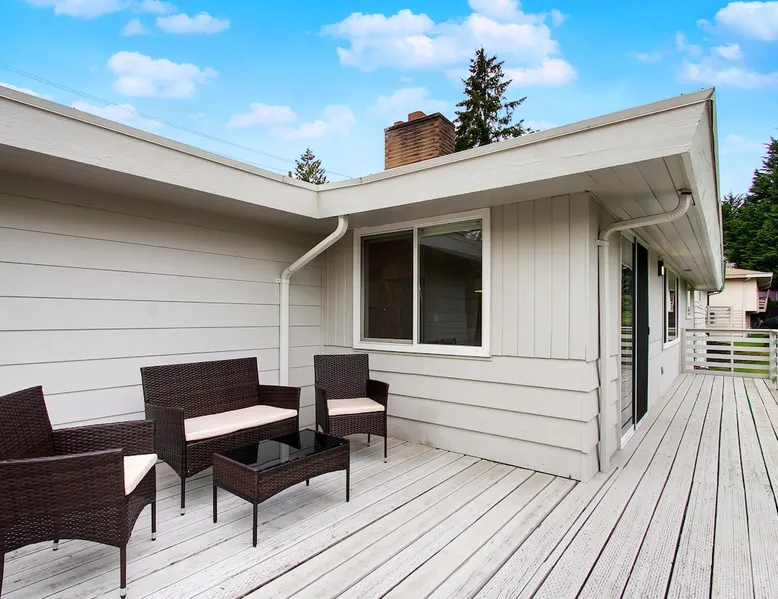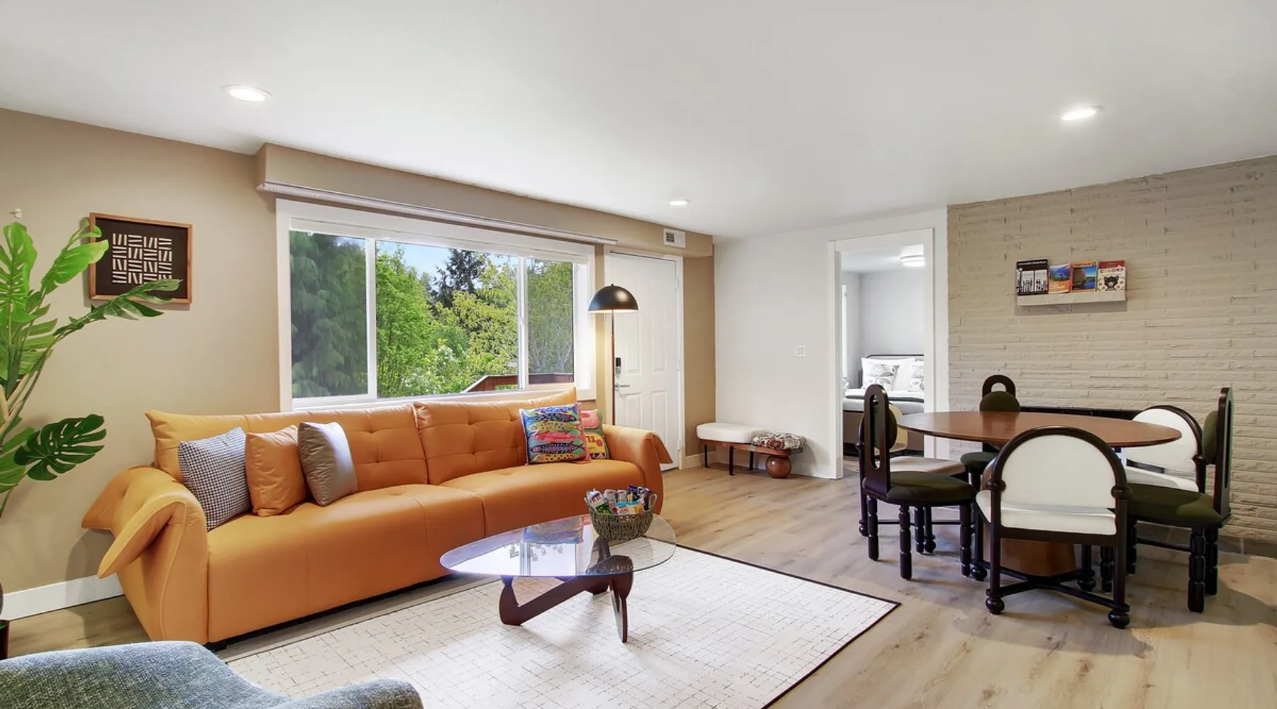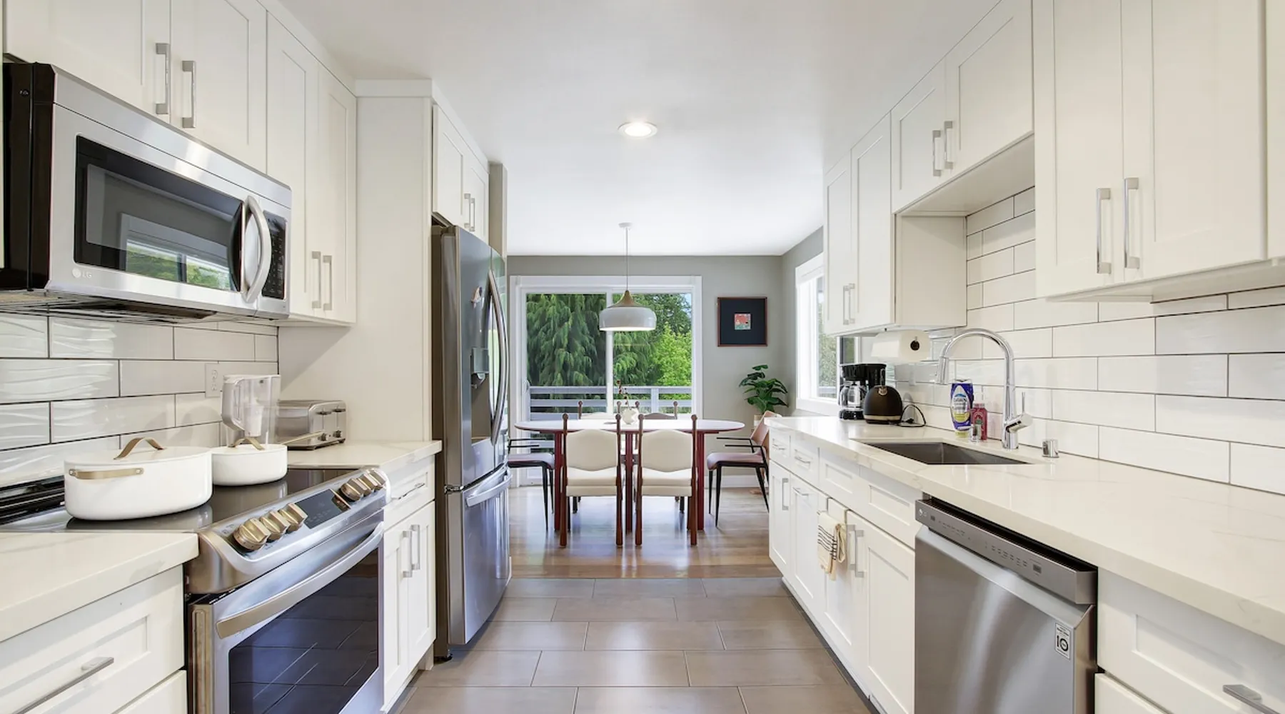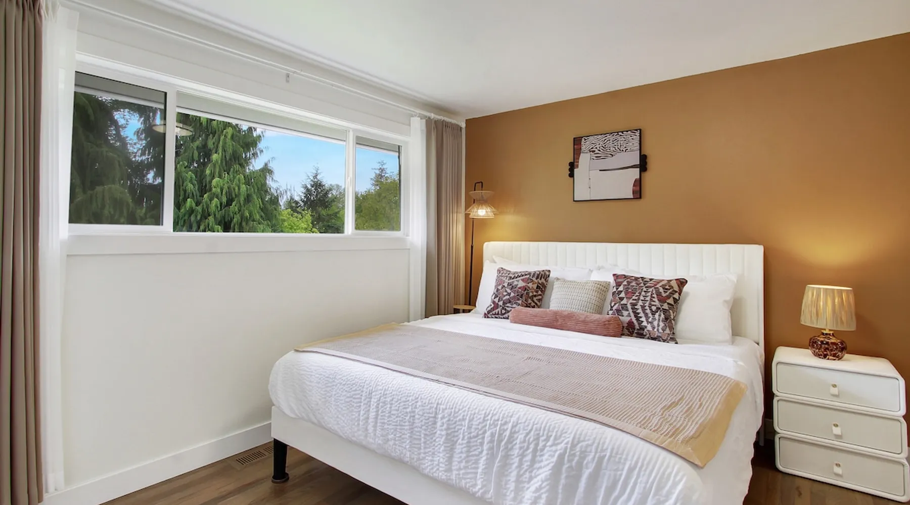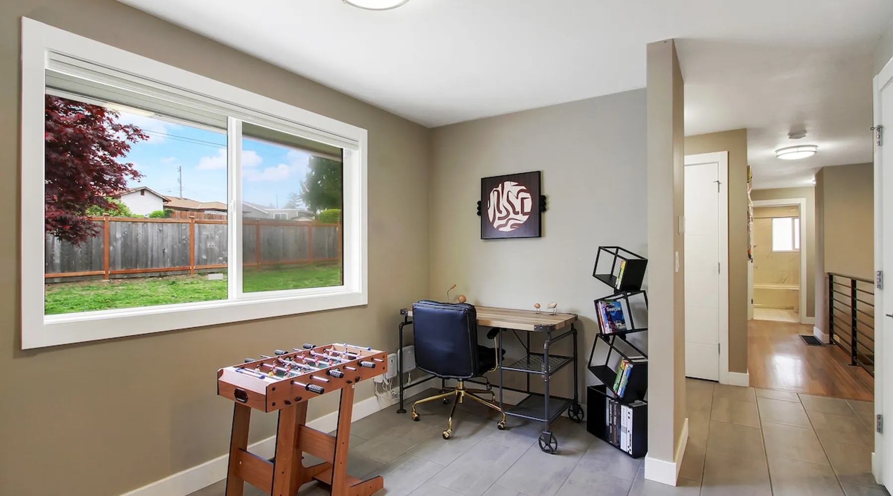 Relax in our spacious and stylish 6-bedroom, 3-bathroom home with modern updates and impeccable interiors. Enjoy large front and back yards, wrap-around deck with serene views and seating, and two chef's kitchens with stainless steel appliances. Features include two living rooms, office nook, two dining rooms, two kitchens, two laundry, uncovered parking, central AC/heating, fast WIFI and more. This home is perfect for groups or families! 15 minutes to SeaTac, 20 to Downtown, 25 to Bellevue. The space Home Layout: *Main Floor* - Living room with Smart TV - Dining room - Wrap around balcony with patio furniture - Kitchen with stainless steel appliances - Office nook - Garage with washer and dryer (no parking) - Primary bedroom with king bed - Two bedrooms with queen beds - Two full bathrooms *Lower Floor* - Chef's kitchen with stainless steel appliances - Dining table with seating for 6 - Living room with Smart TV - One bedroom with king bed - One bedroom with queen bed - One bedroom with two twin beds and a desk *Home Features* - Modern and chic design with comfortable furniture and high-end finishes. - Central AC and central heating. - Fresh linens and bedding for a comfortable sleep. - Driveway parking for four vehicles. - Fully-stocked kitchens with coffee maker, coffee, tea, hot chocolate, pots, pans, bowls, plates, glasses and utensils. - Smart TV with streaming apps pre-installed - just login! - High-speed WiFi (up to 1 Gbps) for all your working from home needs! - Two sets of washer and dryers, and laundry soap. Guest access You will have access to the full home including front and back yards. The garage will not be available for parking, just for laundry, but you can park four vehicles in the driveway. Other things to note ✨ Early Check-In & Late Check-Out ✨ Want to make the most of your stay? Early check-in and late check-out are available (subject to availability) for a small additional fee, as they require special coordination with our cleaning team. Simply request the upgrade, and we’ll send you a quick link to our Guest Portal where you can secure extra time to relax and enjoy your visit. **We expect our guests to comply to Seattle's Trash Collection rules** • Trash goes in the green bin. • Food scraps should go in a bag and be placed in the green trash bin. • Recycling (blue bin) is for clean items only: plastics, flattened cardboard, paper, rinsed cans, and rinsed glass containers. • No bagged garbage is allowed in the recycling bin. • Failure to comply will result in additional charges. **Additional Important Details** • While we consider our home to be suitable for children and families, please be aware that it is not child-proofed. Kindly ensure that children are supervised at all times. **House Rules** • Absolutely NO parties or events (resulting in a $500 fine), adhere to quiet hours between 10pm-8am, refrain from smoking or vaping anywhere on the premises, including outdoor spaces, refrain from engaging in digital piracy, and kindly remove shoes before entering the home. • NO pets allowed. Failure to adhere to our pet free space will result in a $500 fine. We have regularly scheduled pest control and landscapers. You may see them during your stay, we will try our best to give you a heads up but that is not always possible.