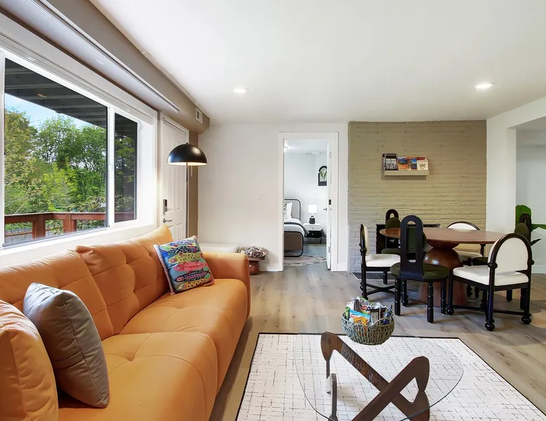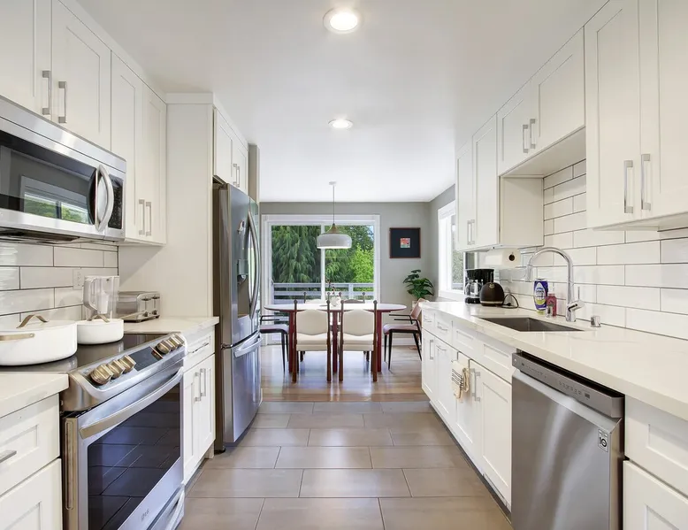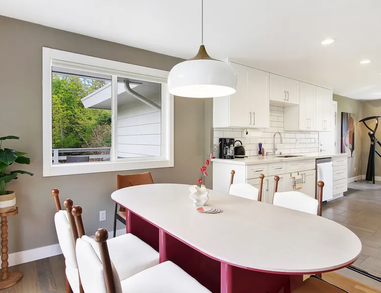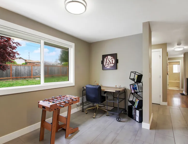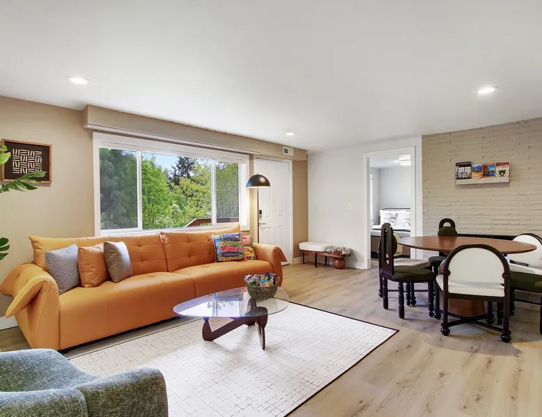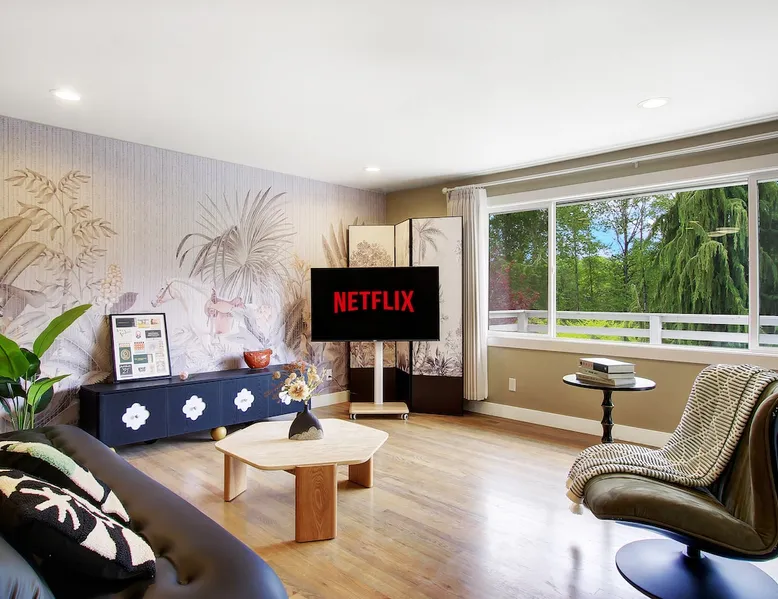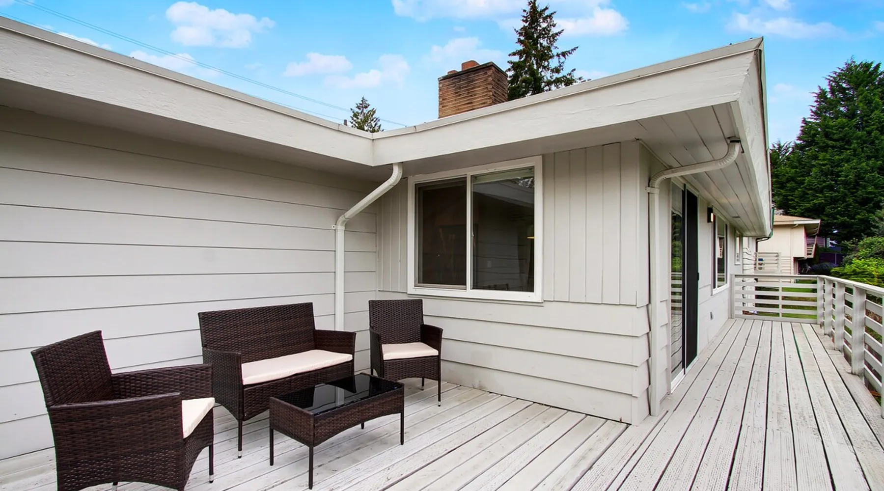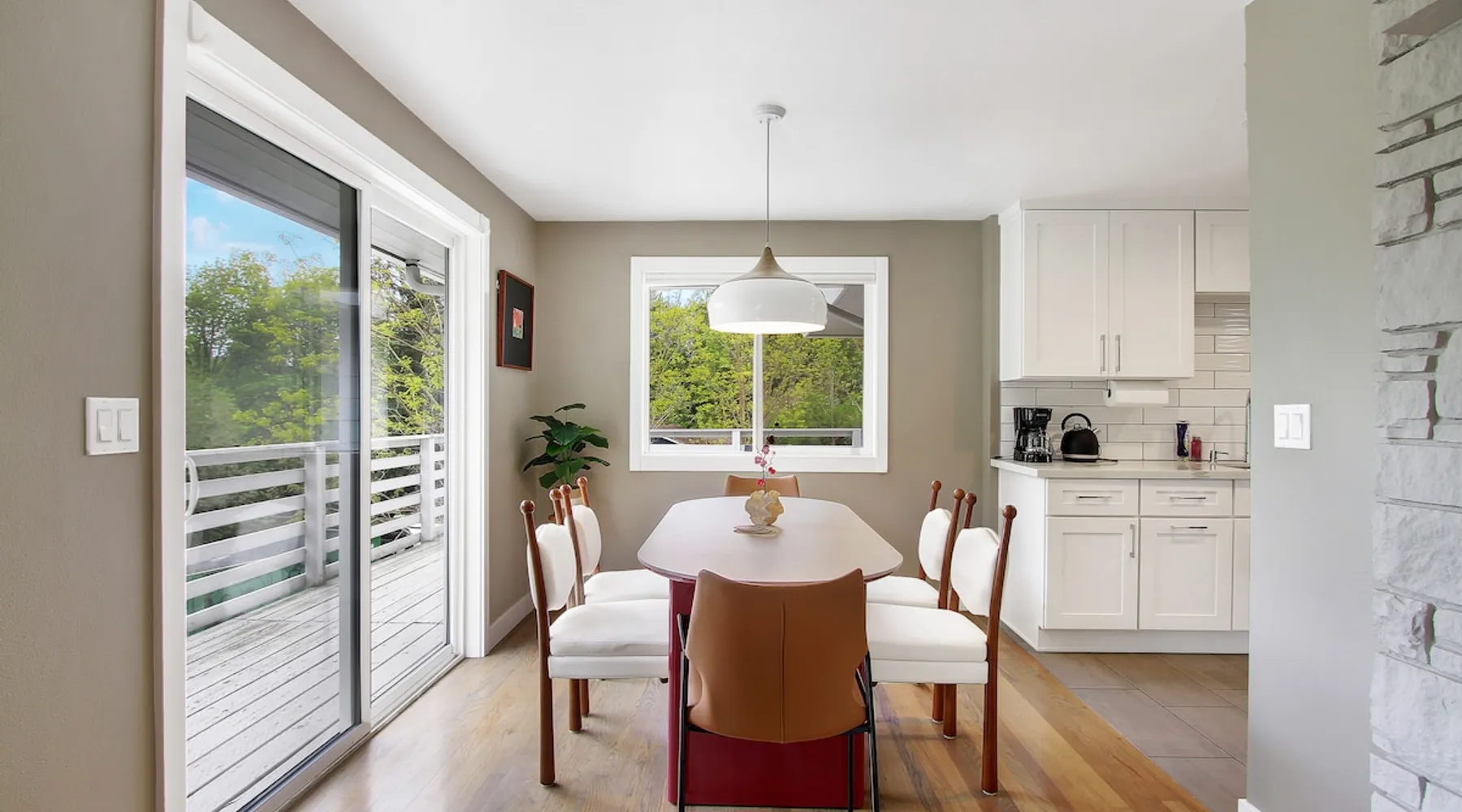 Relax in our spacious and stylish 6-bedroom, 3-bathroom home with modern updates and impeccable interiors. Enjoy large front and back yards, wrap-around deck with serene views and seating, and two chef's kitchens with stainless steel appliances. Features include two living rooms, office nook, two dining rooms, two kitchens, two laundry, uncovered parking, central AC/heating, fast WIFI and more. This home is perfect for groups or families! 15 minutes to SeaTac, 20 to Downtown, 25 to Bellevue. The space Home Layout: *Main Floor* - Living room with Smart TV - Dining room - Wrap around balcony with patio furniture - Kitchen with stainless steel appliances - Office nook - Garage with washer and dryer (no parking) - Primary bedroom with king bed - Two bedrooms with queen beds - Two full bathrooms *Lower Floor* - Chef's kitchen with stainless steel appliances - Dining table with seating for 6 - Living room with Smart TV - One bedroom with king bed - One bedroom with queen bed - One bedroom with two twin beds and a desk *Home Features* - Modern and chic design with comfortable furniture and high-end finishes. - Central AC and central heating. - Fresh linens and bedding for a comfortable sleep. - Driveway parking for four vehicles. - Fully-stocked kitchens with coffee maker, coffee, tea, hot chocolate, pots, pans, bowls, plates, glasses and utensils. - Smart TV with streaming apps pre-installed - just login! - High-speed WiFi (up to 1 Gbps) for all your working from home needs! - Two sets of washer and dryers, and laundry soap. Guest access You will have access to the full home including front and back yards. The garage will not be available for parking, just for laundry, but you can park four vehicles in the driveway. Other things to note ✨ Early Check-In & Late Check-Out ✨ Want to make the most of your stay? Early check-in and late check-out are available (subject to availability) for a small additional fee, as they require special coordination with our cleaning team. Simply request the upgrade, and we’ll send you a quick link to our Guest Portal where you can secure extra time to relax and enjoy your visit. **We expect our guests to comply to Seattle's Trash Collection rules** • Trash goes in the green bin. • Food scraps should go in a bag and be placed in the green trash bin. • Recycling (blue bin) is for clean items only: plastics, flattened cardboard, paper, rinsed cans, and rinsed glass containers. • No bagged garbage is allowed in the recycling bin. • Failure to comply will result in additional charges. **Additional Important Details** • While we consider our home to be suitable for children and families, please be aware that it is not child-proofed. Kindly ensure that children are supervised at all times. **House Rules** • Absolutely NO parties or events (resulting in a $500 fine), adhere to quiet hours between 10pm-8am, refrain from smoking or vaping anywhere on the premises, including outdoor spaces, refrain from engaging in digital piracy, and kindly remove shoes before entering the home. • NO pets allowed. Failure to adhere to our pet free space will result in a $500 fine. We have regularly scheduled pest control and landscapers. You may see them during your stay, we will try our best to give you a heads up but that is not always possible.
