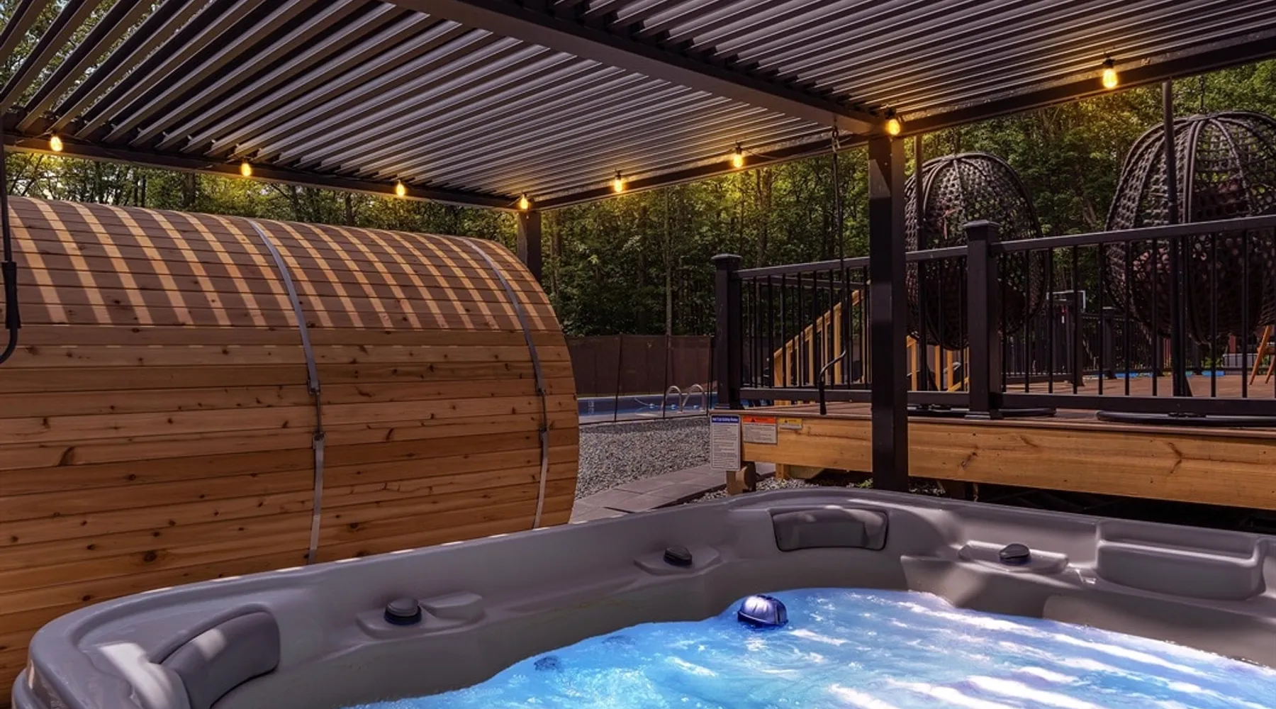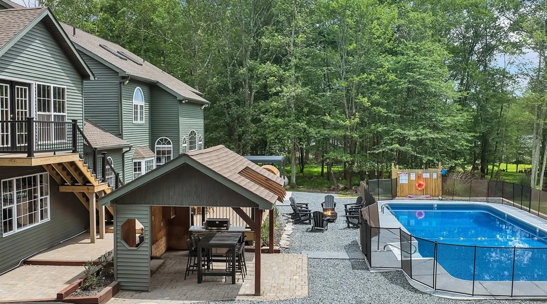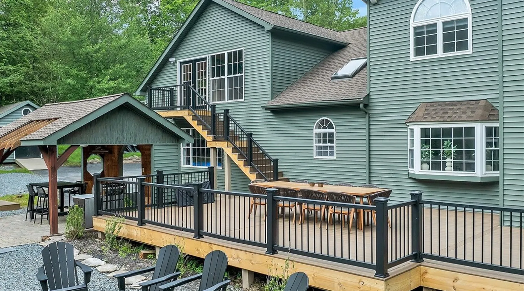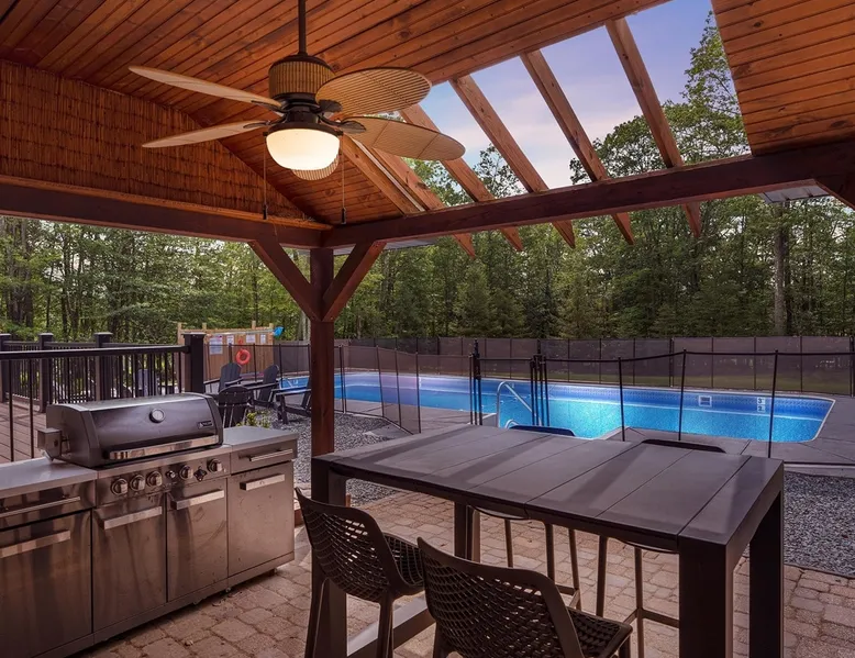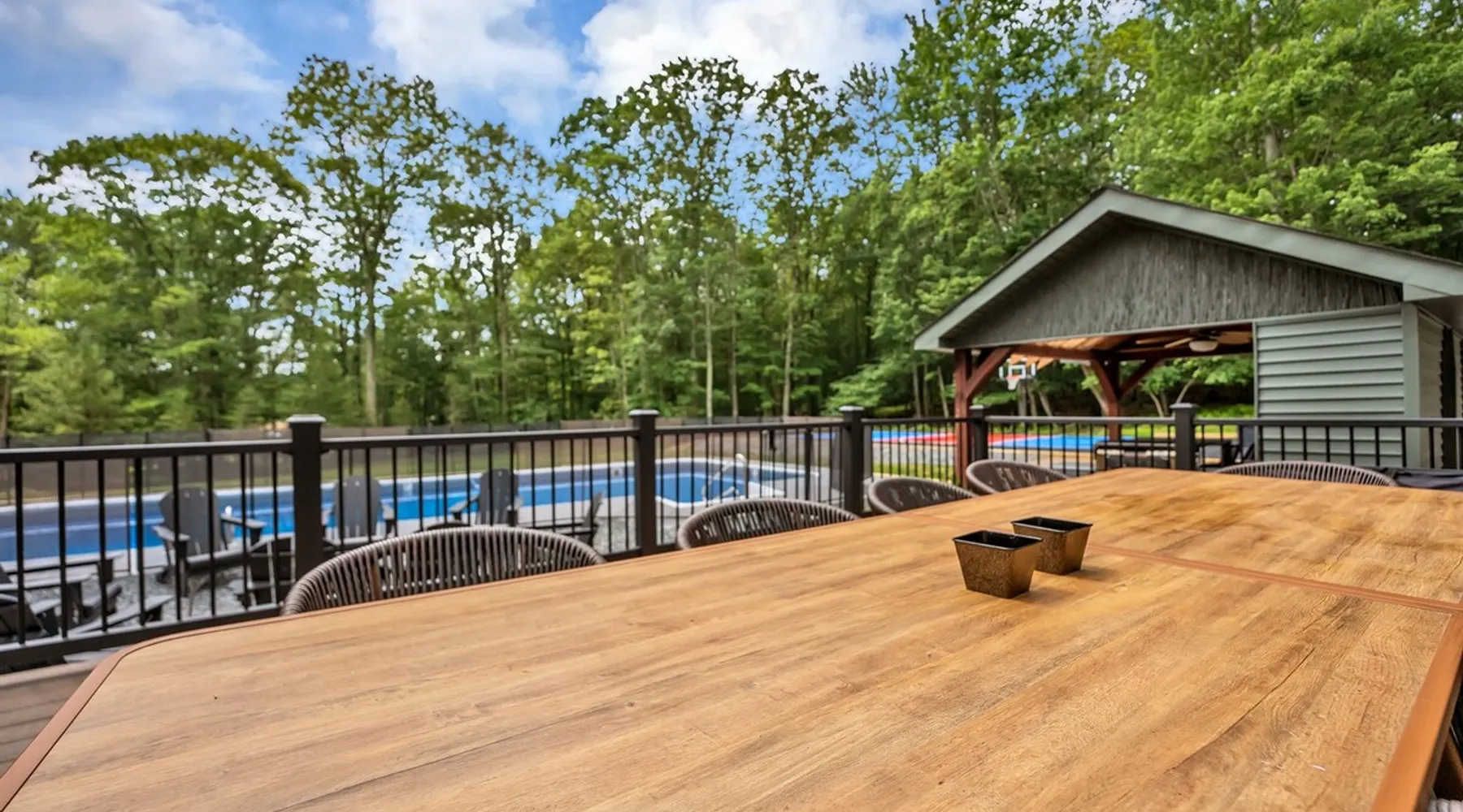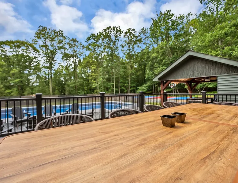 Your perfect retreat awaits! This newly designed 8-bedroom, 5-bath estate is the ultimate getaway for large groups, blending luxury with fun-packed amenities. Dive into the 45’ saltwater pool & relax in the private hot tub and sauna, and unleash your competitive side in our epic game room. We're minutes from indoor thrills at Kalahari and fall hiking trails, making it the perfect base for your Poconos adventure. Book your unforgettable vacation & start making lasting memories! The space Escape to the Pocono Mountains and stay in this stunning 8-bedroom, 5-bath estate in the highly sought-after location! Located just minutes from water parks, shopping, hiking, and top attractions like Camelback ski resort, Mount Airy Casino, and the Delaware Water Gap all while enjoying a peaceful mountain retreat with incredible amenities. 🏡 Estate Highlights ✅ Sleeps 22 Comfortably – Perfect for mutligenerational families & groups ✅ Private Pool ✅ Private Hot Tub and Sauna – Relax under the stars after a day of adventure ✅ Pickleball and basketball 1/2 court ✅ Game Room Fun – 3 arcade machines, foosball, air hockey, basketball and a kids climbing gym ✅ Upstairs Loft with pool table, jukebox, poker table and bar ✅ Fully Equipped Kitchen – Everything you need to cook delicious meals. Includes a gas range, premium appliances, coffee bar (K cups included), and seating for 17. ✅ Cozy Living Room – Fireplace, plush seating & 75" Smart TV for movie nights ✅ Fast WiFi + Smart TVs – Stay connected & entertained ✅ Outdoor Space-private yard, fireplace, tiki bar, pool, sauna, hot tub and yard games ✅EV charger 🛏 Sleeping Arrangements 💤 Master Bedroom (Main Level) – King bed, premium luxury linens, 43” Smart TV, en-suite bath 💤 Bedroom 2 (Main Level) – King bed, premium luxury linens, 43” Smart TV 💤 Bedroom 3 (main Level) – 2 Queen beds, premium luxury linens, 💤 Bedroom 4 (Main Level) – 2 Bunk beds (Full over Queen), premium luxury linens, 43” Smart TV 💤 Bedroom 5 (Upper Level) – King bed, premium luxury linens, 43” Smart TV, jack-n-jill bath 💤 Bedroom 6 (Upper Level) – King bed, premium luxury linens, 43” Smart TV, jack-n-jill bath 💤 Bedroom 7 (Upper Level) – King bed, premium luxury linens, 43” Smart TV 💤 Bedroom 8 (Upper Level) – King bed, premium luxury linens, 43” Smart TV 🎯 Ultimate Kids Game Room Challenge your friends and family in the fully loaded game room, featuring: 🎮 3 Arcade Machines – Classic & modern games Nintendo Switch 🏒 Air Hockey Table – Fast-paced excitement Pop-a-shot BB game Foosball Table Indoor Gym Ultimate Game room for older kids and Adults 🎱 Pool Table – Fun for all skill levels Poker Table Jukebox- greatest hits Karaoke Machine Large seating area with 75" TV for Movie Night 🍳 Kitchen & Living Space The open-plan kitchen and living area is the heart of the home, featuring: Gourmet Kitchen: Gas range, Instant Pot, blender, griddle and spices. Coffee Bar: K-Cups, and supplies included. Dining Space: Seating for 17 for casual meals. Living Area: 85” Smart TV, gas fireplace and cozy seating 🌲Large Private Yard 🏊 45' Pool with enclosure for year-round enjoyment coming this winter 🛁 Private Hot Tub – The perfect way to unwind under the stars 🔥Barrel Sauna -- Detox and destress in your private sauna with a view 🔥 Grill & Outdoor Seating – Enjoy BBQs with breathtaking views 🚗 Perfect Location – Minutes from Top Attractions! 🔑 Guest Access Guests have full access to: entire house, pool, hot tub, sauna, private yard, EV charger, Private driveway parking. High-speed internet, keyless entry, and smart home features. 📋 Things to Note Pool, Sauna and Hot Tub Usage: Follow provided guidelines for safe use. Pets must be approved and require a fee Kid-Friendly Features: Full game room designed for kids! Arcade games, climbing structure, bb game, foosball and more! Book Now & Experience the Best of The Poconos! Whether you’re planning a family vacation, couples' retreat, or a fun getaway with friends, this estate has everything you need for an unforgettable stay. Don’t wait—book today! Guest access When you stay in this home, you have the whole space to yourself. You can park in the private driveway and will be given a code to enter the home. During winter months, 4 wheel drive vehicles are recommended. The driveway will be plowed, however, fresh snow during your stay can make travel difficult. Feel free and make use of the full-size washer and dryer, high-speed WiFi, pool, hot tub, and sauna. From this luxury home, you’re just minutes from some of the nation’s most beautiful natural landmarks, restaurants, retail shops, ski resorts and waterparks. A video cameras is on site near the front door with a view of the driveway to the back to ensure the safety and security of those accessing the property. Other things to note 🏡 Estate Highlights ✅ Sleeps 22 Comfortably – Perfect for mutligenerational families & groups ✅ Private Heated Pool ✅ Private Hot Tub and Sauna – Relax under the stars after a day of adventure ✅ Pickleball and basketball court ✅ Game Room Fun – 3 arcade machines, foosball, air hockey, basketball and a kids climbing gym ✅ Upstairs Loft with pool table, jukebox, poker table and bar ✅ Fully Equipped Kitchen – Everything you need to cook delicious meals. Includes a gas range, premium appliances, coffee bar (K cups included), and seating for 17. ✅ Cozy Living Room – Fireplace, plush seating & 75" Smart TV for movie nights ✅ Fast WiFi + Smart TVs – Stay connected & entertained ✅ Outdoor Space-private yard, fireplace, tiki bar, pool, sauna, hot tub and yard games ✅EV charger