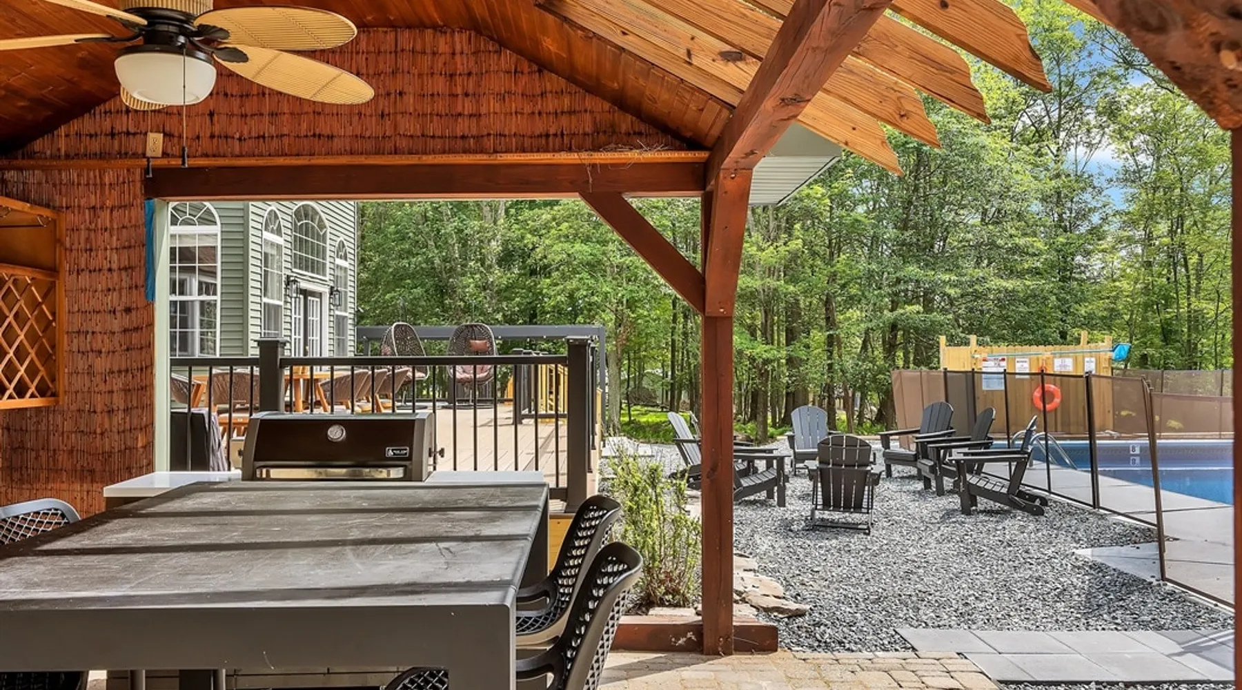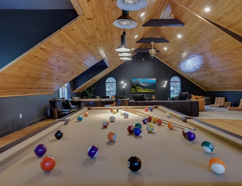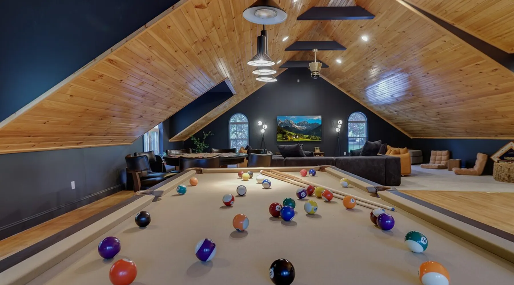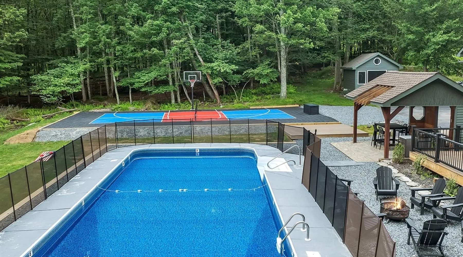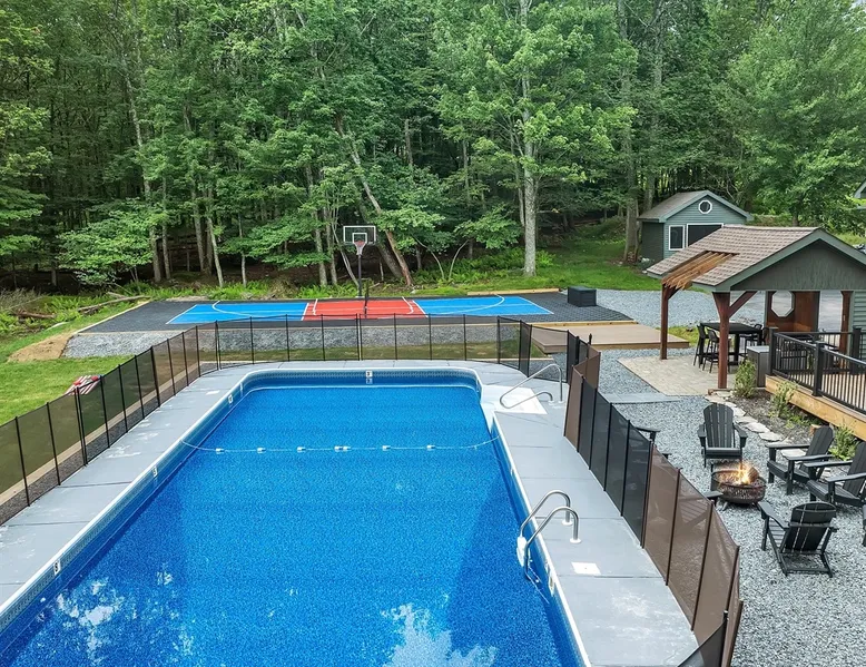Your perfect retreat awaits! This newly designed 8-bedroom, 5-bath estate is the ultimate getaway for large groups, blending luxury with fun-packed amenities. Dive into the 45’ saltwater pool & relax in the private hot tub and sauna, and unleash your competitive side in our epic game room. We're minutes from indoor thrills at Kalahari and fall hiking trails, making it the perfect base for your Poconos adventure. Book your unforgettable vacation & start making lasting memories! The space Escape to the Pocono Mountains and stay in this stunning 8-bedroom, 5-bath estate in the highly sought-after location! Located just minutes from water parks, shopping, hiking, and top attractions like Camelback ski resort, Mount Airy Casino, and the Delaware Water Gap all while enjoying a peaceful mountain retreat with incredible amenities. 🏡 Estate Highlights ✅ Sleeps 22 Comfortably – Perfect for mutligenerational families & groups ✅ Private Pool ✅ Private Hot Tub and Sauna – Relax under the stars after a day of adventure ✅ Pickleball and basketball 1/2 court ✅ Game Room Fun – 3 arcade machines, foosball, air hockey, basketball and a kids climbing gym ✅ Upstairs Loft with pool table, jukebox, poker table and bar ✅ Fully Equipped Kitchen – Everything you need to cook delicious meals. Includes a gas range, premium appliances, coffee bar (K cups included), and seating for 17. ✅ Cozy Living Room – Fireplace, plush seating & 75" Smart TV for movie nights ✅ Fast WiFi + Smart TVs – Stay connected & entertained ✅ Outdoor Space-private yard, fireplace, tiki bar, pool, sauna, hot tub and yard games ✅EV charger 🛏 Sleeping Arrangements 💤 Master Bedroom (Main Level) – King bed, premium luxury linens, 43” Smart TV, en-suite bath 💤 Bedroom 2 (Main Level) – King bed, premium luxury linens, 43” Smart TV 💤 Bedroom 3 (main Level) – 2 Queen beds, premium luxury linens, 💤 Bedroom 4 (Main Level) – 2 Bunk beds (Full over Queen), premium luxury linens, 43” Smart TV 💤 Bedroom 5 (Upper Level) – King bed, premium luxury linens, 43” Smart TV, jack-n-jill bath 💤 Bedroom 6 (Upper Level) – King bed, premium luxury linens, 43” Smart TV, jack-n-jill bath 💤 Bedroom 7 (Upper Level) – King bed, premium luxury linens, 43” Smart TV 💤 Bedroom 8 (Upper Level) – King bed, premium luxury linens, 43” Smart TV 🎯 Ultimate Kids Game Room Challenge your friends and family in the fully loaded game room, featuring: 🎮 3 Arcade Machines – Classic & modern games Nintendo Switch 🏒 Air Hockey Table – Fast-paced excitement Pop-a-shot BB game Foosball Table Indoor Gym Ultimate Game room for older kids and Adults 🎱 Pool Table – Fun for all skill levels Poker Table Jukebox- greatest hits Karaoke Machine Large seating area with 75" TV for Movie Night 🍳 Kitchen & Living Space The open-plan kitchen and living area is the heart of the home, featuring: Gourmet Kitchen: Gas range, Instant Pot, blender, griddle and spices. Coffee Bar: K-Cups, and supplies included. Dining Space: Seating for 17 for casual meals. Living Area: 85” Smart TV, gas fireplace and cozy seating 🌲Large Private Yard 🏊 45' Pool with enclosure for year-round enjoyment coming this winter 🛁 Private Hot Tub – The perfect way to unwind under the stars 🔥Barrel Sauna -- Detox and destress in your private sauna with a view 🔥 Grill & Outdoor Seating – Enjoy BBQs with breathtaking views 🚗 Perfect Location – Minutes from Top Attractions! 🔑 Guest Access Guests have full access to: entire house, pool, hot tub, sauna, private yard, EV charger, Private driveway parking. High-speed internet, keyless entry, and smart home features. 📋 Things to Note Pool, Sauna and Hot Tub Usage: Follow provided guidelines for safe use. Pets must be approved and require a fee Kid-Friendly Features: Full game room designed for kids! Arcade games, climbing structure, bb game, foosball and more! Book Now & Experience the Best of The Poconos! Whether you’re planning a family vacation, couples' retreat, or a fun getaway with friends, this estate has everything you need for an unforgettable stay. Don’t wait—book today! Guest access When you stay in this home, you have the whole space to yourself. You can park in the private driveway and will be given a code to enter the home. During winter months, 4 wheel drive vehicles are recommended. The driveway will be plowed, however, fresh snow during your stay can make travel difficult. Feel free and make use of the full-size washer and dryer, high-speed WiFi, pool, hot tub, and sauna. From this luxury home, you’re just minutes from some of the nation’s most beautiful natural landmarks, restaurants, retail shops, ski resorts and waterparks. A video cameras is on site near the front door with a view of the driveway to the back to ensure the safety and security of those accessing the property. Other things to note 🏡 Estate Highlights ✅ Sleeps 22 Comfortably – Perfect for mutligenerational families & groups ✅ Private Heated Pool ✅ Private Hot Tub and Sauna – Relax under the stars after a day of adventure ✅ Pickleball and basketball court ✅ Game Room Fun – 3 arcade machines, foosball, air hockey, basketball and a kids climbing gym ✅ Upstairs Loft with pool table, jukebox, poker table and bar ✅ Fully Equipped Kitchen – Everything you need to cook delicious meals. Includes a gas range, premium appliances, coffee bar (K cups included), and seating for 17. ✅ Cozy Living Room – Fireplace, plush seating & 75" Smart TV for movie nights ✅ Fast WiFi + Smart TVs – Stay connected & entertained ✅ Outdoor Space-private yard, fireplace, tiki bar, pool, sauna, hot tub and yard games ✅EV charger