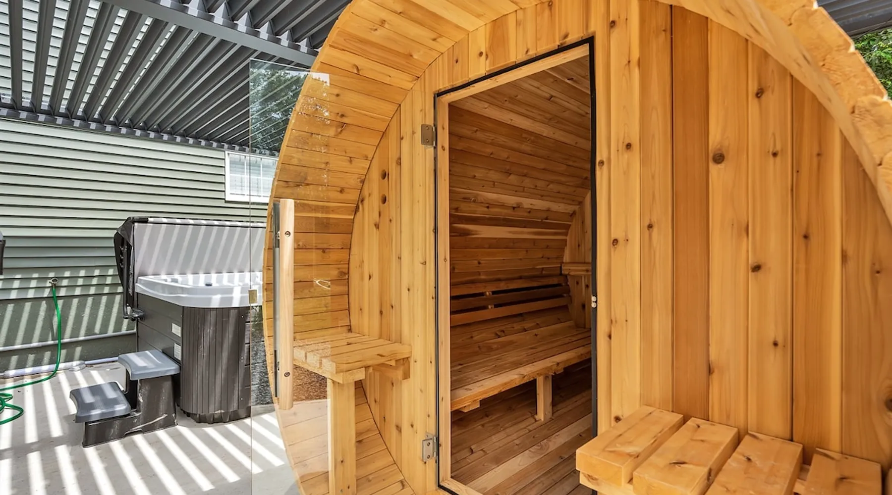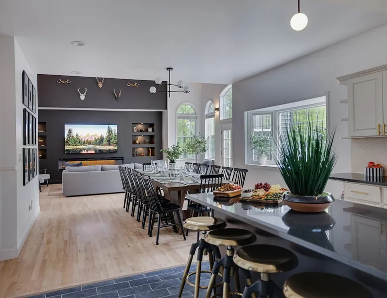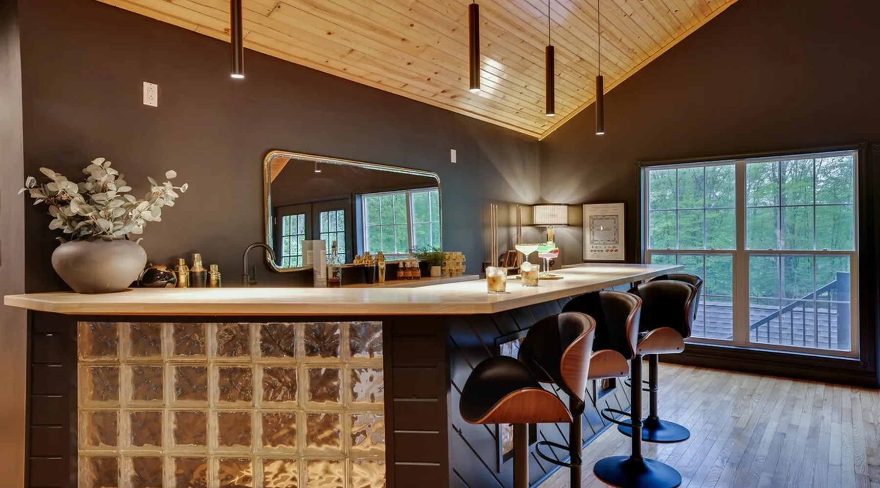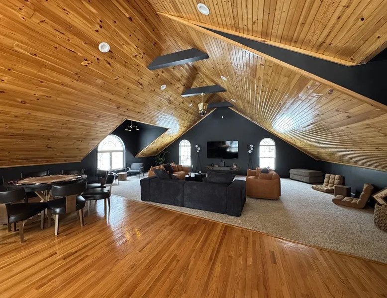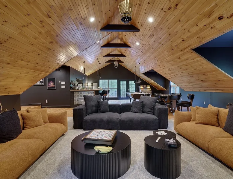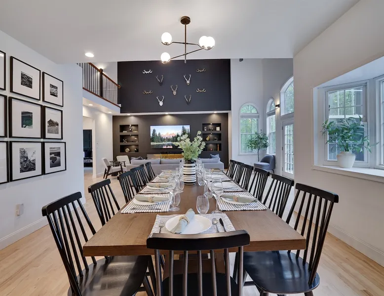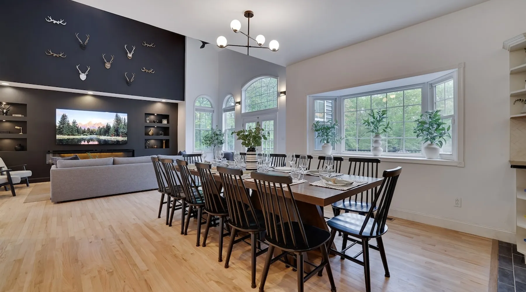 Your perfect retreat awaits! This newly designed 8-bedroom, 5-bath estate is the ultimate getaway for large groups, blending luxury with fun-packed amenities. Dive into the 45’ saltwater pool & relax in the private hot tub and sauna, and unleash your competitive side in our epic game room. We're minutes from indoor thrills at Kalahari and fall hiking trails, making it the perfect base for your Poconos adventure. Book your unforgettable vacation & start making lasting memories! The space Escape to the Pocono Mountains and stay in this stunning 8-bedroom, 5-bath estate in the highly sought-after location! Located just minutes from water parks, shopping, hiking, and top attractions like Camelback ski resort, Mount Airy Casino, and the Delaware Water Gap all while enjoying a peaceful mountain retreat with incredible amenities. 🏡 Estate Highlights ✅ Sleeps 22 Comfortably – Perfect for mutligenerational families & groups ✅ Private Pool ✅ Private Hot Tub and Sauna – Relax under the stars after a day of adventure ✅ Pickleball and basketball 1/2 court ✅ Game Room Fun – 3 arcade machines, foosball, air hockey, basketball and a kids climbing gym ✅ Upstairs Loft with pool table, jukebox, poker table and bar ✅ Fully Equipped Kitchen – Everything you need to cook delicious meals. Includes a gas range, premium appliances, coffee bar (K cups included), and seating for 17. ✅ Cozy Living Room – Fireplace, plush seating & 75" Smart TV for movie nights ✅ Fast WiFi + Smart TVs – Stay connected & entertained ✅ Outdoor Space-private yard, fireplace, tiki bar, pool, sauna, hot tub and yard games ✅EV charger 🛏 Sleeping Arrangements 💤 Master Bedroom (Main Level) – King bed, premium luxury linens, 43” Smart TV, en-suite bath 💤 Bedroom 2 (Main Level) – King bed, premium luxury linens, 43” Smart TV 💤 Bedroom 3 (main Level) – 2 Queen beds, premium luxury linens, 💤 Bedroom 4 (Main Level) – 2 Bunk beds (Full over Queen), premium luxury linens, 43” Smart TV 💤 Bedroom 5 (Upper Level) – King bed, premium luxury linens, 43” Smart TV, jack-n-jill bath 💤 Bedroom 6 (Upper Level) – King bed, premium luxury linens, 43” Smart TV, jack-n-jill bath 💤 Bedroom 7 (Upper Level) – King bed, premium luxury linens, 43” Smart TV 💤 Bedroom 8 (Upper Level) – King bed, premium luxury linens, 43” Smart TV 🎯 Ultimate Kids Game Room Challenge your friends and family in the fully loaded game room, featuring: 🎮 3 Arcade Machines – Classic & modern games Nintendo Switch 🏒 Air Hockey Table – Fast-paced excitement Pop-a-shot BB game Foosball Table Indoor Gym Ultimate Game room for older kids and Adults 🎱 Pool Table – Fun for all skill levels Poker Table Jukebox- greatest hits Karaoke Machine Large seating area with 75" TV for Movie Night 🍳 Kitchen & Living Space The open-plan kitchen and living area is the heart of the home, featuring: Gourmet Kitchen: Gas range, Instant Pot, blender, griddle and spices. Coffee Bar: K-Cups, and supplies included. Dining Space: Seating for 17 for casual meals. Living Area: 85” Smart TV, gas fireplace and cozy seating 🌲Large Private Yard 🏊 45' Pool with enclosure for year-round enjoyment coming this winter 🛁 Private Hot Tub – The perfect way to unwind under the stars 🔥Barrel Sauna -- Detox and destress in your private sauna with a view 🔥 Grill & Outdoor Seating – Enjoy BBQs with breathtaking views 🚗 Perfect Location – Minutes from Top Attractions! 🔑 Guest Access Guests have full access to: entire house, pool, hot tub, sauna, private yard, EV charger, Private driveway parking. High-speed internet, keyless entry, and smart home features. 📋 Things to Note Pool, Sauna and Hot Tub Usage: Follow provided guidelines for safe use. Pets must be approved and require a fee Kid-Friendly Features: Full game room designed for kids! Arcade games, climbing structure, bb game, foosball and more! Book Now & Experience the Best of The Poconos! Whether you’re planning a family vacation, couples' retreat, or a fun getaway with friends, this estate has everything you need for an unforgettable stay. Don’t wait—book today! Guest access When you stay in this home, you have the whole space to yourself. You can park in the private driveway and will be given a code to enter the home. During winter months, 4 wheel drive vehicles are recommended. The driveway will be plowed, however, fresh snow during your stay can make travel difficult. Feel free and make use of the full-size washer and dryer, high-speed WiFi, pool, hot tub, and sauna. From this luxury home, you’re just minutes from some of the nation’s most beautiful natural landmarks, restaurants, retail shops, ski resorts and waterparks. A video cameras is on site near the front door with a view of the driveway to the back to ensure the safety and security of those accessing the property. Other things to note 🏡 Estate Highlights ✅ Sleeps 22 Comfortably – Perfect for mutligenerational families & groups ✅ Private Heated Pool ✅ Private Hot Tub and Sauna – Relax under the stars after a day of adventure ✅ Pickleball and basketball court ✅ Game Room Fun – 3 arcade machines, foosball, air hockey, basketball and a kids climbing gym ✅ Upstairs Loft with pool table, jukebox, poker table and bar ✅ Fully Equipped Kitchen – Everything you need to cook delicious meals. Includes a gas range, premium appliances, coffee bar (K cups included), and seating for 17. ✅ Cozy Living Room – Fireplace, plush seating & 75" Smart TV for movie nights ✅ Fast WiFi + Smart TVs – Stay connected & entertained ✅ Outdoor Space-private yard, fireplace, tiki bar, pool, sauna, hot tub and yard games ✅EV charger