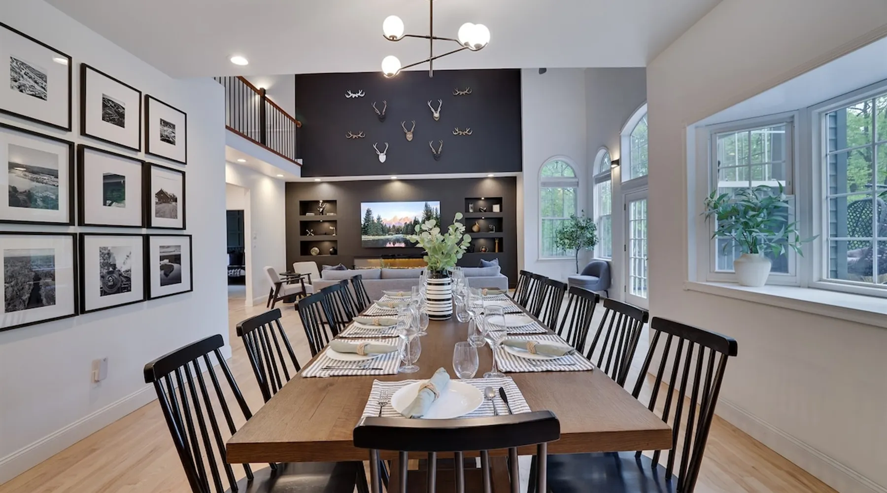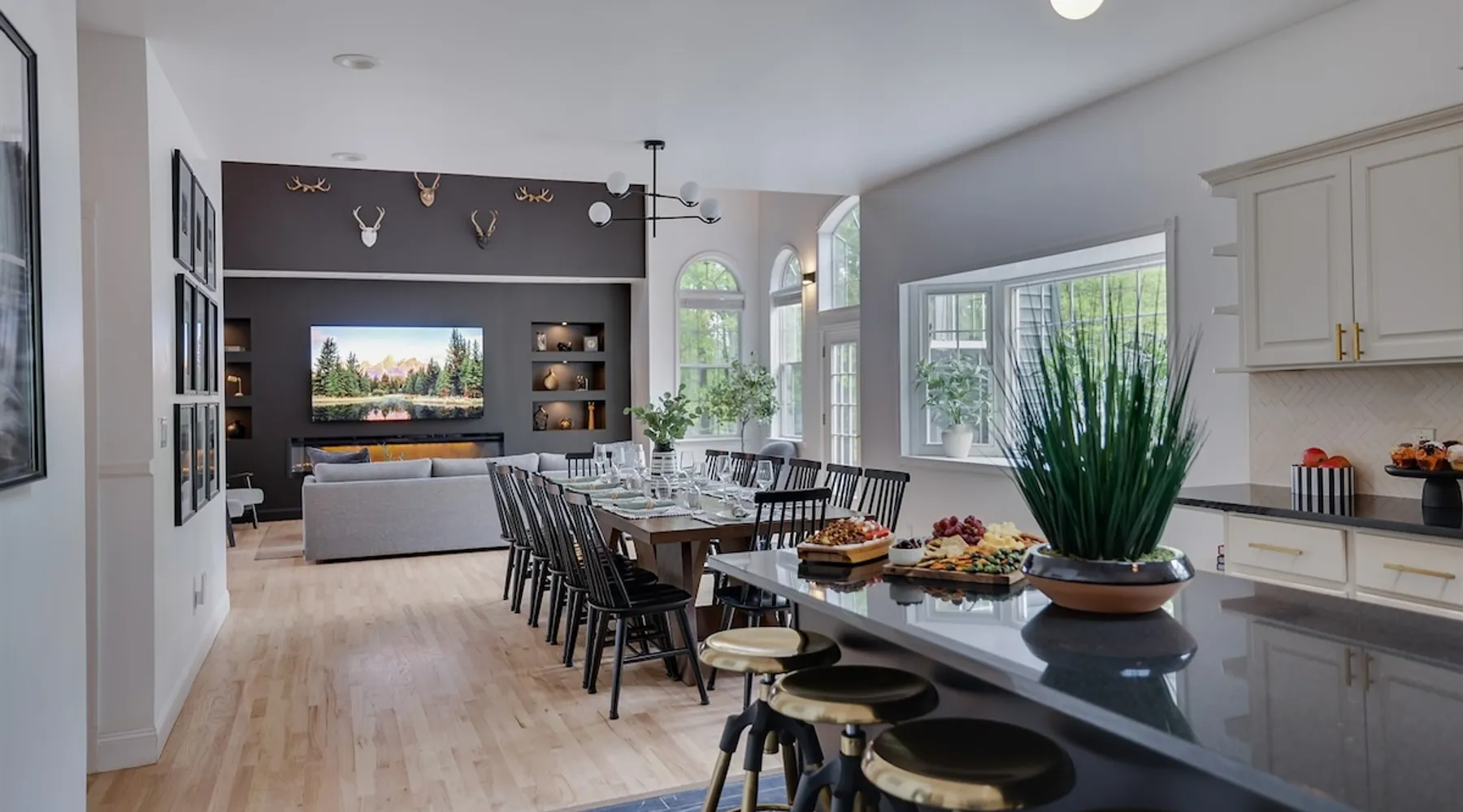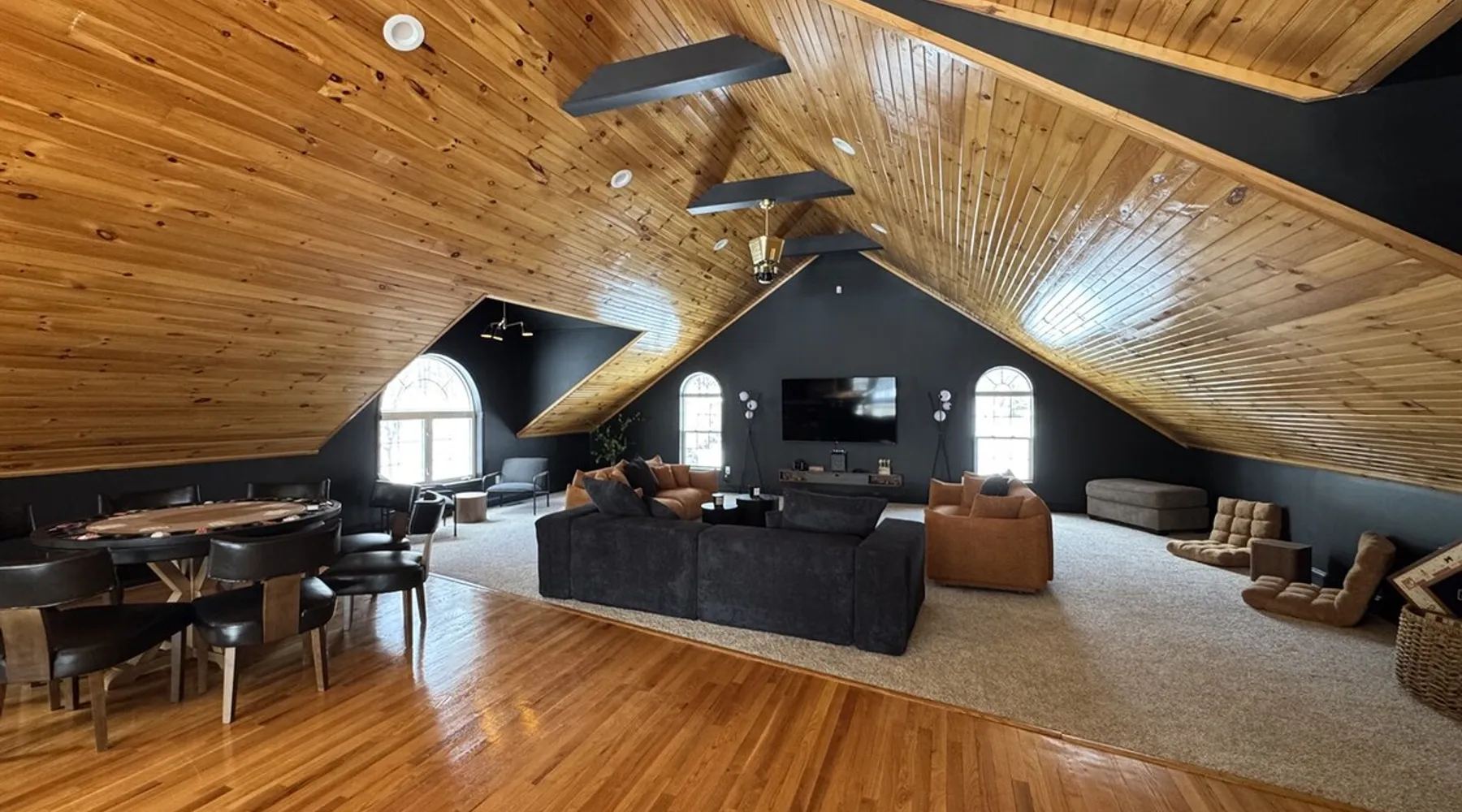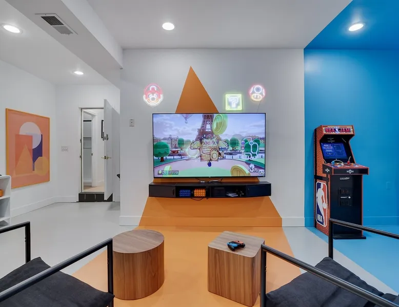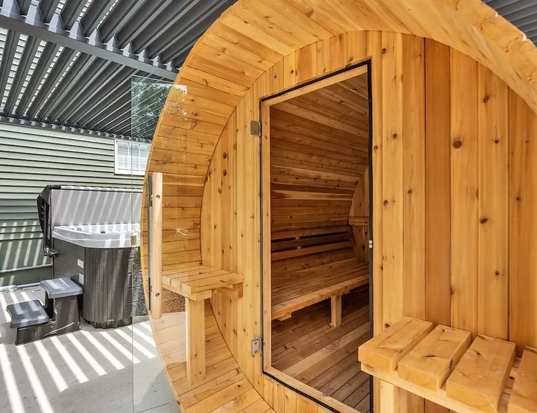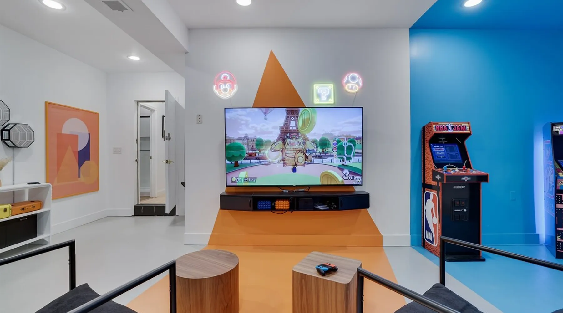 Your perfect retreat awaits! This newly designed 8-bedroom, 5-bath estate is the ultimate getaway for large groups, blending luxury with fun-packed amenities. Dive into the 45’ saltwater pool & relax in the private hot tub and sauna, and unleash your competitive side in our epic game room. We're minutes from indoor thrills at Kalahari and fall hiking trails, making it the perfect base for your Poconos adventure. Book your unforgettable vacation & start making lasting memories! The space Escape to the Pocono Mountains and stay in this stunning 8-bedroom, 5-bath estate in the highly sought-after location! Located just minutes from water parks, shopping, hiking, and top attractions like Camelback ski resort, Mount Airy Casino, and the Delaware Water Gap all while enjoying a peaceful mountain retreat with incredible amenities. 🏡 Estate Highlights ✅ Sleeps 22 Comfortably – Perfect for mutligenerational families & groups ✅ Private Pool ✅ Private Hot Tub and Sauna – Relax under the stars after a day of adventure ✅ Pickleball and basketball 1/2 court ✅ Game Room Fun – 3 arcade machines, foosball, air hockey, basketball and a kids climbing gym ✅ Upstairs Loft with pool table, jukebox, poker table and bar ✅ Fully Equipped Kitchen – Everything you need to cook delicious meals. Includes a gas range, premium appliances, coffee bar (K cups included), and seating for 17. ✅ Cozy Living Room – Fireplace, plush seating & 75" Smart TV for movie nights ✅ Fast WiFi + Smart TVs – Stay connected & entertained ✅ Outdoor Space-private yard, fireplace, tiki bar, pool, sauna, hot tub and yard games ✅EV charger 🛏 Sleeping Arrangements 💤 Master Bedroom (Main Level) – King bed, premium luxury linens, 43” Smart TV, en-suite bath 💤 Bedroom 2 (Main Level) – King bed, premium luxury linens, 43” Smart TV 💤 Bedroom 3 (main Level) – 2 Queen beds, premium luxury linens, 💤 Bedroom 4 (Main Level) – 2 Bunk beds (Full over Queen), premium luxury linens, 43” Smart TV 💤 Bedroom 5 (Upper Level) – King bed, premium luxury linens, 43” Smart TV, jack-n-jill bath 💤 Bedroom 6 (Upper Level) – King bed, premium luxury linens, 43” Smart TV, jack-n-jill bath 💤 Bedroom 7 (Upper Level) – King bed, premium luxury linens, 43” Smart TV 💤 Bedroom 8 (Upper Level) – King bed, premium luxury linens, 43” Smart TV 🎯 Ultimate Kids Game Room Challenge your friends and family in the fully loaded game room, featuring: 🎮 3 Arcade Machines – Classic & modern games Nintendo Switch 🏒 Air Hockey Table – Fast-paced excitement Pop-a-shot BB game Foosball Table Indoor Gym Ultimate Game room for older kids and Adults 🎱 Pool Table – Fun for all skill levels Poker Table Jukebox- greatest hits Karaoke Machine Large seating area with 75" TV for Movie Night 🍳 Kitchen & Living Space The open-plan kitchen and living area is the heart of the home, featuring: Gourmet Kitchen: Gas range, Instant Pot, blender, griddle and spices. Coffee Bar: K-Cups, and supplies included. Dining Space: Seating for 17 for casual meals. Living Area: 85” Smart TV, gas fireplace and cozy seating 🌲Large Private Yard 🏊 45' Pool with enclosure for year-round enjoyment coming this winter 🛁 Private Hot Tub – The perfect way to unwind under the stars 🔥Barrel Sauna -- Detox and destress in your private sauna with a view 🔥 Grill & Outdoor Seating – Enjoy BBQs with breathtaking views 🚗 Perfect Location – Minutes from Top Attractions! 🔑 Guest Access Guests have full access to: entire house, pool, hot tub, sauna, private yard, EV charger, Private driveway parking. High-speed internet, keyless entry, and smart home features. 📋 Things to Note Pool, Sauna and Hot Tub Usage: Follow provided guidelines for safe use. Pets must be approved and require a fee Kid-Friendly Features: Full game room designed for kids! Arcade games, climbing structure, bb game, foosball and more! Book Now & Experience the Best of The Poconos! Whether you’re planning a family vacation, couples' retreat, or a fun getaway with friends, this estate has everything you need for an unforgettable stay. Don’t wait—book today! Guest access When you stay in this home, you have the whole space to yourself. You can park in the private driveway and will be given a code to enter the home. During winter months, 4 wheel drive vehicles are recommended. The driveway will be plowed, however, fresh snow during your stay can make travel difficult. Feel free and make use of the full-size washer and dryer, high-speed WiFi, pool, hot tub, and sauna. From this luxury home, you’re just minutes from some of the nation’s most beautiful natural landmarks, restaurants, retail shops, ski resorts and waterparks. A video cameras is on site near the front door with a view of the driveway to the back to ensure the safety and security of those accessing the property. Other things to note 🏡 Estate Highlights ✅ Sleeps 22 Comfortably – Perfect for mutligenerational families & groups ✅ Private Heated Pool ✅ Private Hot Tub and Sauna – Relax under the stars after a day of adventure ✅ Pickleball and basketball court ✅ Game Room Fun – 3 arcade machines, foosball, air hockey, basketball and a kids climbing gym ✅ Upstairs Loft with pool table, jukebox, poker table and bar ✅ Fully Equipped Kitchen – Everything you need to cook delicious meals. Includes a gas range, premium appliances, coffee bar (K cups included), and seating for 17. ✅ Cozy Living Room – Fireplace, plush seating & 75" Smart TV for movie nights ✅ Fast WiFi + Smart TVs – Stay connected & entertained ✅ Outdoor Space-private yard, fireplace, tiki bar, pool, sauna, hot tub and yard games ✅EV charger