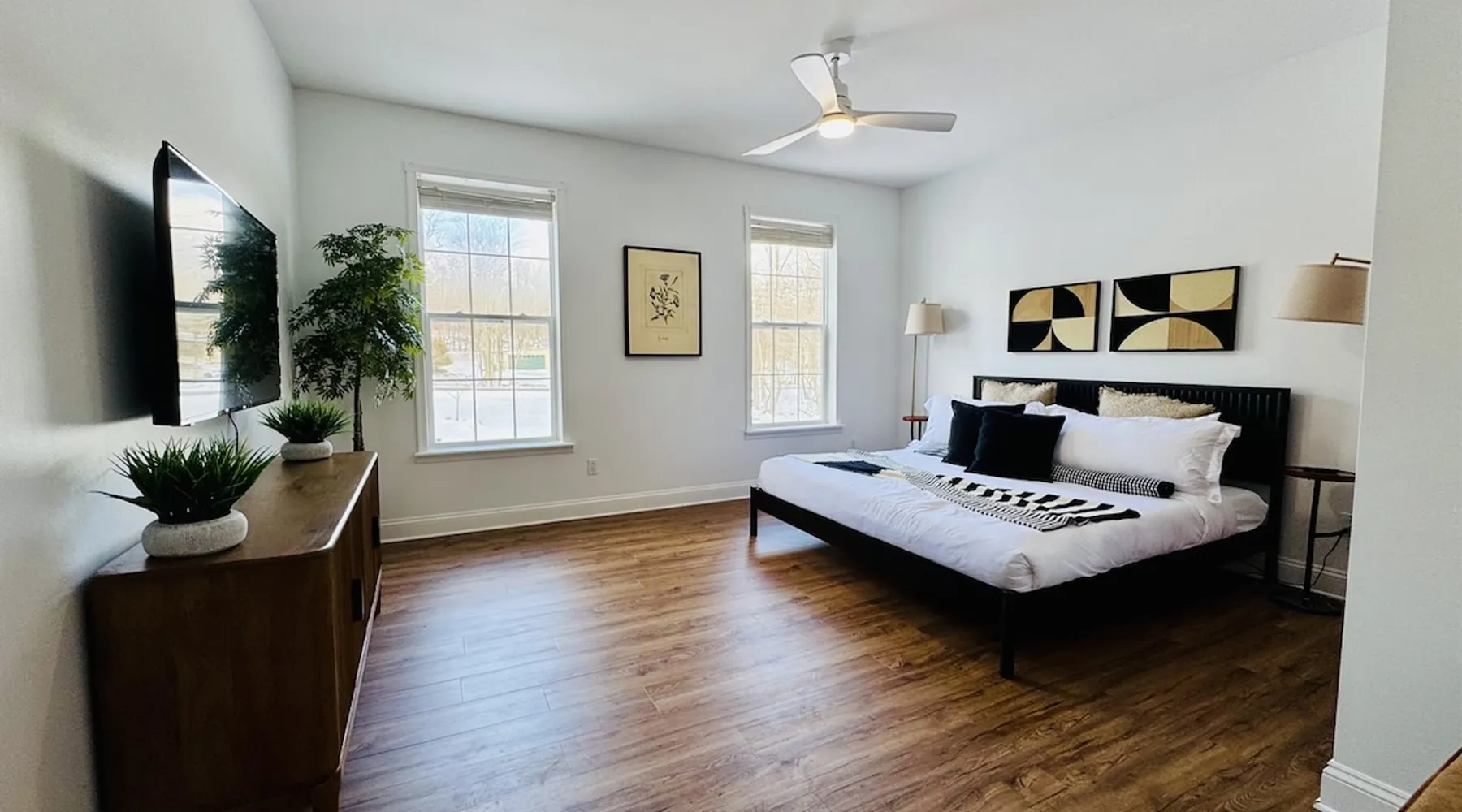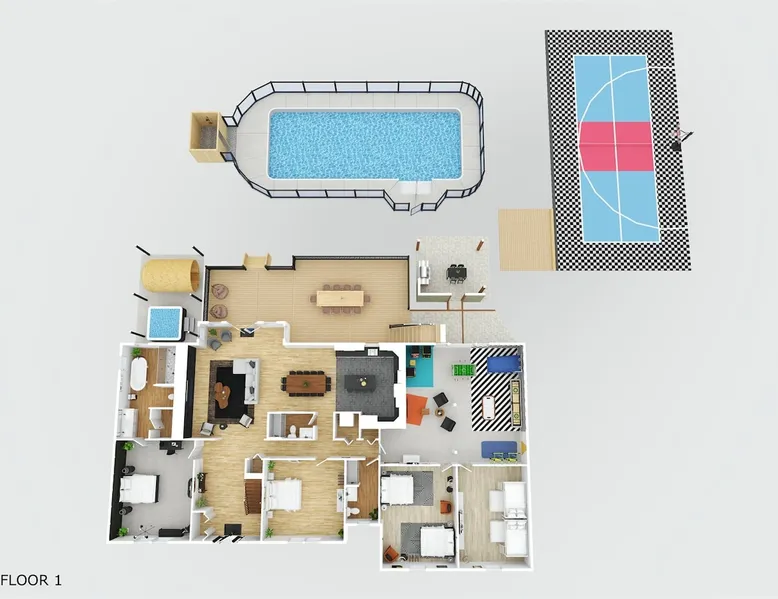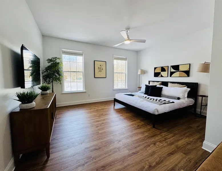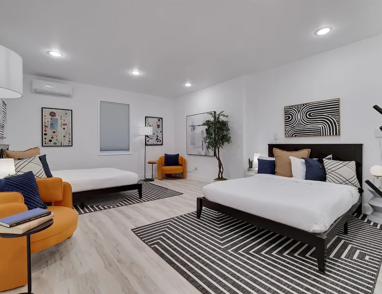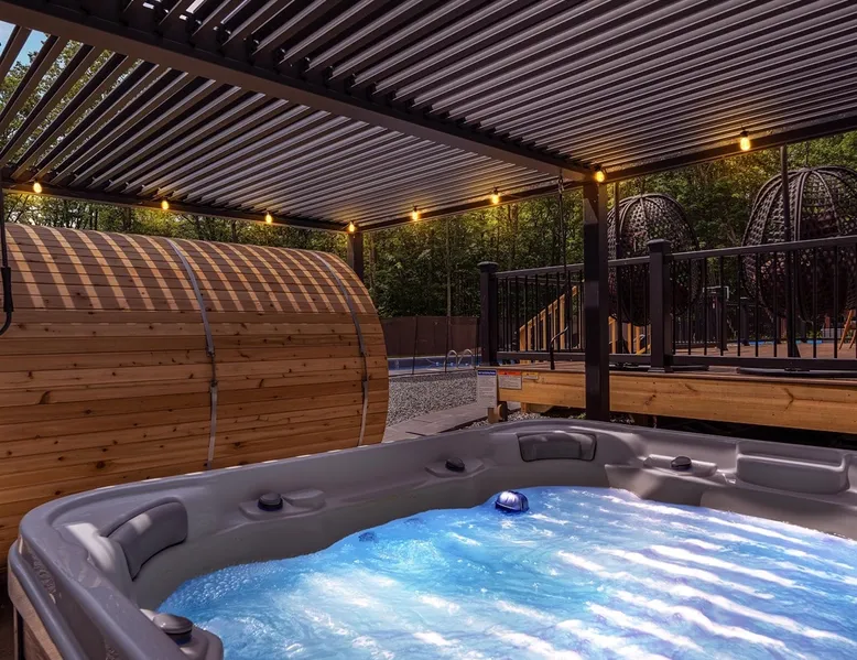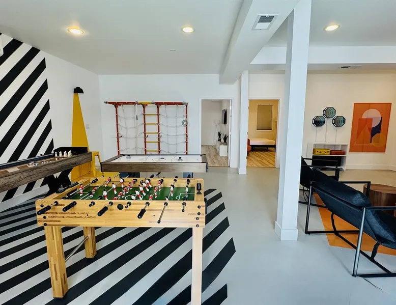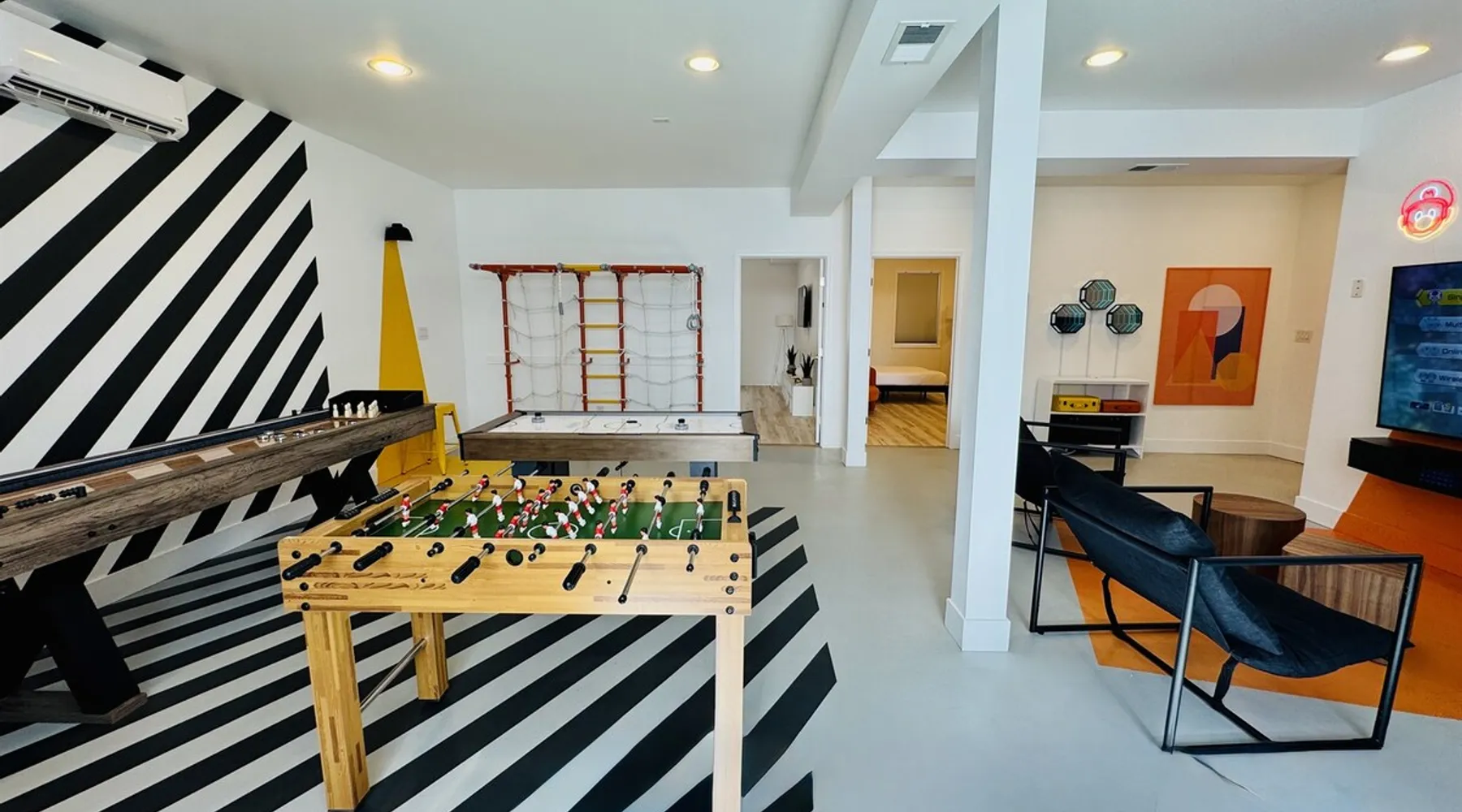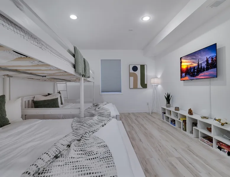 Your perfect retreat awaits! This newly designed 8-bedroom, 5-bath estate is the ultimate getaway for large groups, blending luxury with fun-packed amenities. Dive into the 45’ saltwater pool & relax in the private hot tub and sauna, and unleash your competitive side in our epic game room. We're minutes from indoor thrills at Kalahari and fall hiking trails, making it the perfect base for your Poconos adventure. Book your unforgettable vacation & start making lasting memories! The space Escape to the Pocono Mountains and stay in this stunning 8-bedroom, 5-bath estate in the highly sought-after location! Located just minutes from water parks, shopping, hiking, and top attractions like Camelback ski resort, Mount Airy Casino, and the Delaware Water Gap all while enjoying a peaceful mountain retreat with incredible amenities. 🏡 Estate Highlights ✅ Sleeps 22 Comfortably – Perfect for mutligenerational families & groups ✅ Private Pool ✅ Private Hot Tub and Sauna – Relax under the stars after a day of adventure ✅ Pickleball and basketball 1/2 court ✅ Game Room Fun – 3 arcade machines, foosball, air hockey, basketball and a kids climbing gym ✅ Upstairs Loft with pool table, jukebox, poker table and bar ✅ Fully Equipped Kitchen – Everything you need to cook delicious meals. Includes a gas range, premium appliances, coffee bar (K cups included), and seating for 17. ✅ Cozy Living Room – Fireplace, plush seating & 75" Smart TV for movie nights ✅ Fast WiFi + Smart TVs – Stay connected & entertained ✅ Outdoor Space-private yard, fireplace, tiki bar, pool, sauna, hot tub and yard games ✅EV charger 🛏 Sleeping Arrangements 💤 Master Bedroom (Main Level) – King bed, premium luxury linens, 43” Smart TV, en-suite bath 💤 Bedroom 2 (Main Level) – King bed, premium luxury linens, 43” Smart TV 💤 Bedroom 3 (main Level) – 2 Queen beds, premium luxury linens, 💤 Bedroom 4 (Main Level) – 2 Bunk beds (Full over Queen), premium luxury linens, 43” Smart TV 💤 Bedroom 5 (Upper Level) – King bed, premium luxury linens, 43” Smart TV, jack-n-jill bath 💤 Bedroom 6 (Upper Level) – King bed, premium luxury linens, 43” Smart TV, jack-n-jill bath 💤 Bedroom 7 (Upper Level) – King bed, premium luxury linens, 43” Smart TV 💤 Bedroom 8 (Upper Level) – King bed, premium luxury linens, 43” Smart TV 🎯 Ultimate Kids Game Room Challenge your friends and family in the fully loaded game room, featuring: 🎮 3 Arcade Machines – Classic & modern games Nintendo Switch 🏒 Air Hockey Table – Fast-paced excitement Pop-a-shot BB game Foosball Table Indoor Gym Ultimate Game room for older kids and Adults 🎱 Pool Table – Fun for all skill levels Poker Table Jukebox- greatest hits Karaoke Machine Large seating area with 75" TV for Movie Night 🍳 Kitchen & Living Space The open-plan kitchen and living area is the heart of the home, featuring: Gourmet Kitchen: Gas range, Instant Pot, blender, griddle and spices. Coffee Bar: K-Cups, and supplies included. Dining Space: Seating for 17 for casual meals. Living Area: 85” Smart TV, gas fireplace and cozy seating 🌲Large Private Yard 🏊 45' Pool with enclosure for year-round enjoyment coming this winter 🛁 Private Hot Tub – The perfect way to unwind under the stars 🔥Barrel Sauna -- Detox and destress in your private sauna with a view 🔥 Grill & Outdoor Seating – Enjoy BBQs with breathtaking views 🚗 Perfect Location – Minutes from Top Attractions! 🔑 Guest Access Guests have full access to: entire house, pool, hot tub, sauna, private yard, EV charger, Private driveway parking. High-speed internet, keyless entry, and smart home features. 📋 Things to Note Pool, Sauna and Hot Tub Usage: Follow provided guidelines for safe use. Pets must be approved and require a fee Kid-Friendly Features: Full game room designed for kids! Arcade games, climbing structure, bb game, foosball and more! Book Now & Experience the Best of The Poconos! Whether you’re planning a family vacation, couples' retreat, or a fun getaway with friends, this estate has everything you need for an unforgettable stay. Don’t wait—book today! Guest access When you stay in this home, you have the whole space to yourself. You can park in the private driveway and will be given a code to enter the home. During winter months, 4 wheel drive vehicles are recommended. The driveway will be plowed, however, fresh snow during your stay can make travel difficult. Feel free and make use of the full-size washer and dryer, high-speed WiFi, pool, hot tub, and sauna. From this luxury home, you’re just minutes from some of the nation’s most beautiful natural landmarks, restaurants, retail shops, ski resorts and waterparks. A video cameras is on site near the front door with a view of the driveway to the back to ensure the safety and security of those accessing the property. Other things to note 🏡 Estate Highlights ✅ Sleeps 22 Comfortably – Perfect for mutligenerational families & groups ✅ Private Heated Pool ✅ Private Hot Tub and Sauna – Relax under the stars after a day of adventure ✅ Pickleball and basketball court ✅ Game Room Fun – 3 arcade machines, foosball, air hockey, basketball and a kids climbing gym ✅ Upstairs Loft with pool table, jukebox, poker table and bar ✅ Fully Equipped Kitchen – Everything you need to cook delicious meals. Includes a gas range, premium appliances, coffee bar (K cups included), and seating for 17. ✅ Cozy Living Room – Fireplace, plush seating & 75" Smart TV for movie nights ✅ Fast WiFi + Smart TVs – Stay connected & entertained ✅ Outdoor Space-private yard, fireplace, tiki bar, pool, sauna, hot tub and yard games ✅EV charger