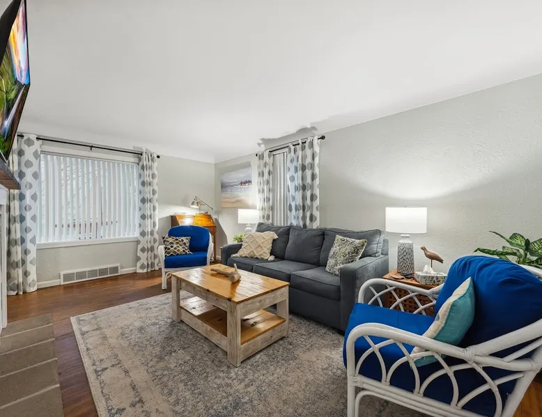 Steps from Port Clinton Beach, this 2-bed, 1-bath cottage is a Lake Erie gem. Cozy living room with lake views, eat-in kitchen with full sized appliances. Bedrooms: one queen, one with two twins. Bathroom with tub/shower. The home has a private patio with grill. The beach very close for swimming, sunsets. Kids’ park two blocks away, Cedar Point is 30 min. Close to shops, dining. Perfect for relaxation and adventure. Close to Jet Express for day trips to PIB with family/friends. The space Nestled just steps from the sandy shores of Port Clinton Beach, this charming 2-bedroom, 1-bathroom vacation rental offers the perfect Lake Erie getaway. The cozy, sunlit living room welcomes you with plush seating and large windows framing peekaboo views of the shimmering lake. A fully equipped eat-in kitchen, complete with modern appliances, invites you to whip up meals with fresh local catches. Both bedrooms are thoughtfully designed for relaxation, featuring soft linens, ample storage, and a serene ambiance—one with a queen bed, the other with a twin bed with additional twin trundle, ideal for families or friends. The sofa in the living room is a pull out for additional guests to sleep. The updated bathroom features a tub/shower combo with a shower curtain, offering both convenience and comfort with crisp, clean finishes. Outside, a private patio with a grill and seating area beckons for evening barbecues under the stars, while the beach is a short stroll away for swimming, sunbathing, or sunset walks along the shore. Just two blocks away, a delightful park with playground equipment awaits, perfect for children to play and unwind. For thrill-seekers, the world-famous Cedar Point amusement park is only a 30-minute drive away. With downtown Port Clinton’s Jet Express, vibrant shops, restaurants, and fishing charters just minutes away, this inviting retreat blends tranquility, family-friendly fun, and adventure for an unforgettable lakeside escape. Plan a trip to Put-In-Bay with your family/friends and stay with us! We do require a "Security/Damage Hold" for all rentals. This is not a charge and is intended for accidental damage that may happen during your stay. Reach out to us for seasonal/direct discounts. We are The Beach Hutch. Guest access Entire home is accessible with key pad entry. Garage is owner use only. Check in door codes will be provided the day of your arrival after the cleaning team is complete, by 3:30PM EST to the email address on file. Other things to note Perfect base camp for Put-In-Bay or Kelley's Island touring. Island hopping or just a relaxing day at the beach. Cedar Point is a short car ride away if you are a thrill-seeker. If you love to fish, Lake Erie is known for its world-class Walleye and Perch fishing.