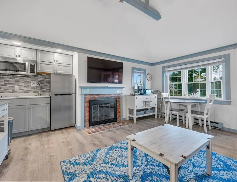Welcome to The Duckling Welcome to The Duckling, a charming 1-bedroom, 1-bathroom cottage located along the picturesque shores of Nantucket Sound in South Yarmouth. This cozy retreat, perfect for couples or small families, offers comfort, convenience, and partial ocean views, making it the ideal Cape Cod getaway. The space Welcome to The Duckling, a charming 1-bedroom, 1-bathroom cottage located along the picturesque shores of Nantucket Sound in South Yarmouth. This cozy retreat, perfect for couples or small families, offers comfort, convenience, and partial ocean views, making it the ideal Cape Cod getaway. About The Duckling The Duckling comfortably accommodates up to four guests with a queen bed in the bedroom and a queen sofa bed in the living area. The kitchen is equipped with a fridge, toaster oven, and all the essentials for preparing your favorite meals. Relax in the inviting living space featuring a Smart TV and coastal-inspired decor, designed to make you feel at home. Prime Location & Exclusive Beach Access Just a short walk from the beach, The Duckling provides access to a private stretch of Nantucket Sound's stunning shoreline. Lounge on the beach chairs, enjoy the shared BBQ area with a charcoal grill, or take in the peaceful partial ocean views from the property. This tranquil location is perfect for soaking up the Cape’s natural beauty. About Seaside Cottages Seaside Cottages offer the perfect blend of charm and convenience for your Cape Cod getaway. Ranging from cozy studios to spacious three-bedroom cottages, these delightful retreats are nestled along the shores of Nantucket Sound in South Yarmouth. Guests enjoy exclusive access to a private beach, where soft sand and gentle waves provide the ultimate relaxation. A shared charcoal grill and picnic table area create a welcoming space for outdoor meals and gatherings. While some cottages boast stunning water views, all are just steps away from the beach, ensuring you’re never far from the coastal beauty of Cape Cod. Other things to note All cottages are individually owned and guest requests to be transferred to a different cottage upon arrival can not be accommodated. Please make sure you fully read the description of this cottage before booking it. As the photos show, cottages are connected to each other with a shared wall. Some may have doors between them that will be locked at all times. This cottage does not have air conditioning. Pets are not allowed at Seaside Cottages.