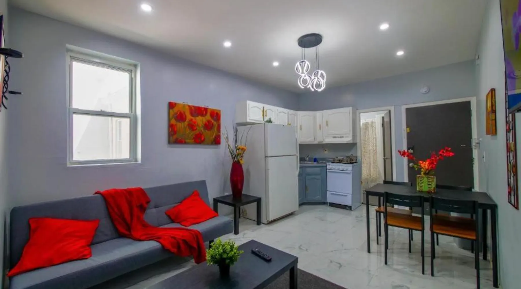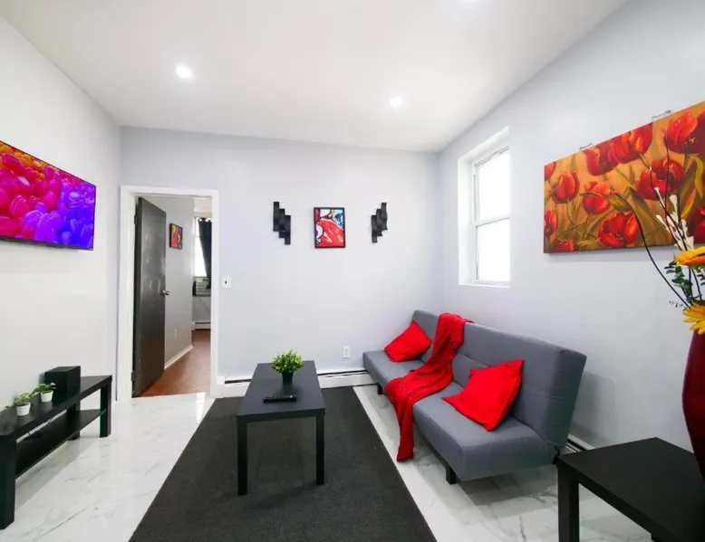 Comfortable Living: Sleek one-bedroom abode near NYC offers a spacious apartment in Jersey City. The property features one bedroom, one bathroom, and a comfortable living room. Modern Amenities: Guests enjoy free WiFi, air-conditioning, a fully equipped kitchen with a stovetop, and a TV. The apartment ensures a pleasant and convenient stay. Convenient Location: Located 7.5 mi from Teterboro Airport, the apartment is close to attractions such as Jacob K. Javits Convention Center (4.3 mi), Macy's (4.3 mi), and Penn Station (4.3 mi). Local Activities: The surrounding area includes an ice-skating rink and boating opportunities, providing ample activities for visitors. The air-conditioned apartment features 1 bedroom, 1 bathroom and a kitchen. The apartment's kitchen, which has a stovetop, is available for cooking and storing food. This apartment offers heating and a TV. The unit offers 2 beds.