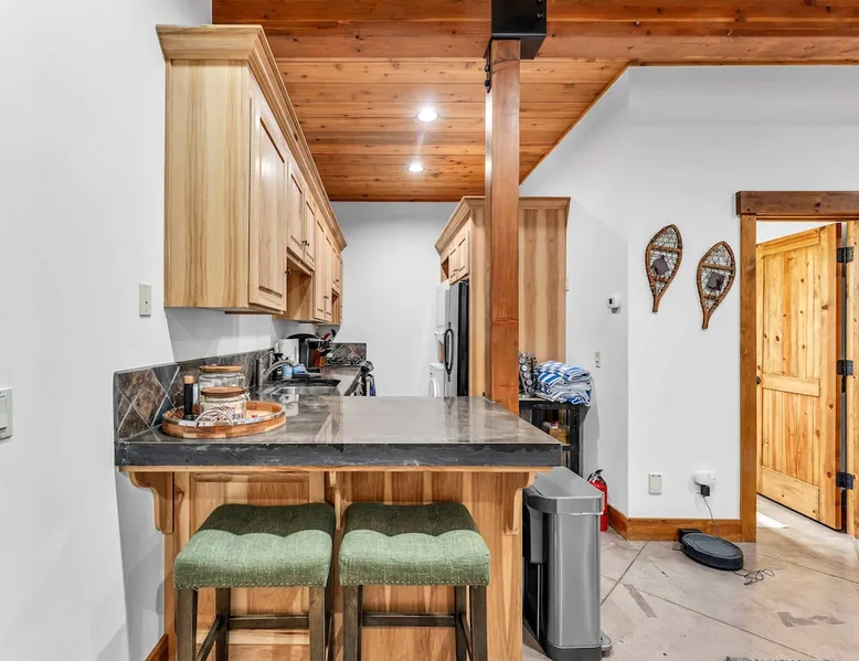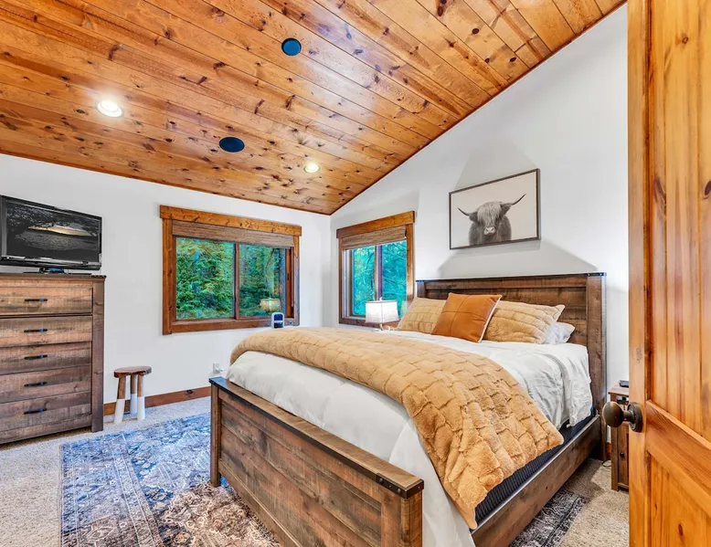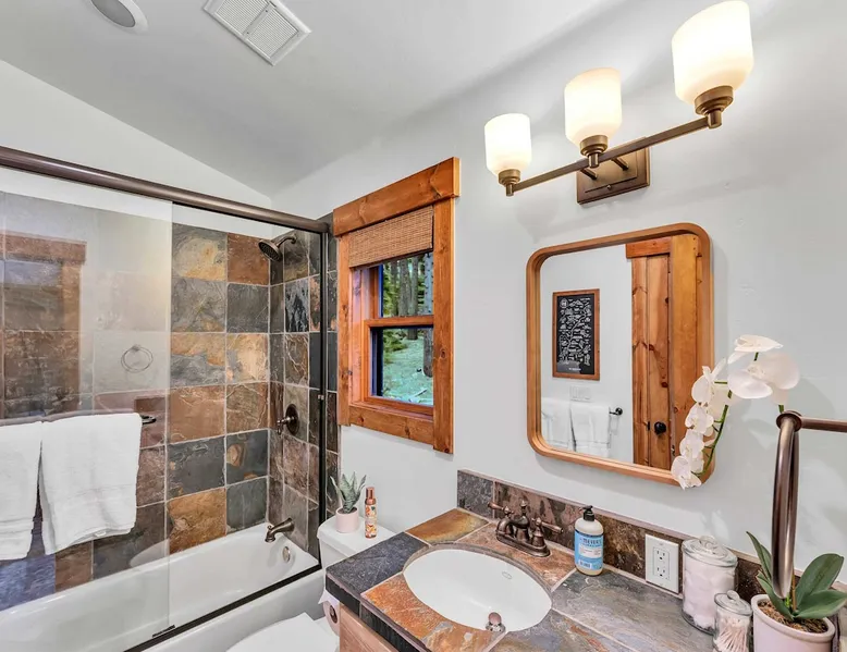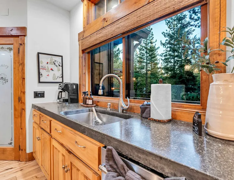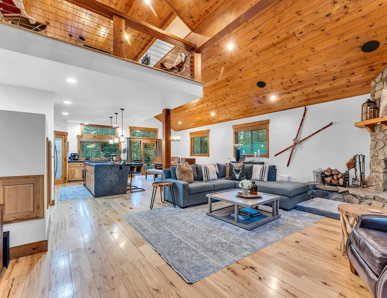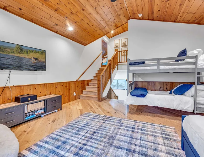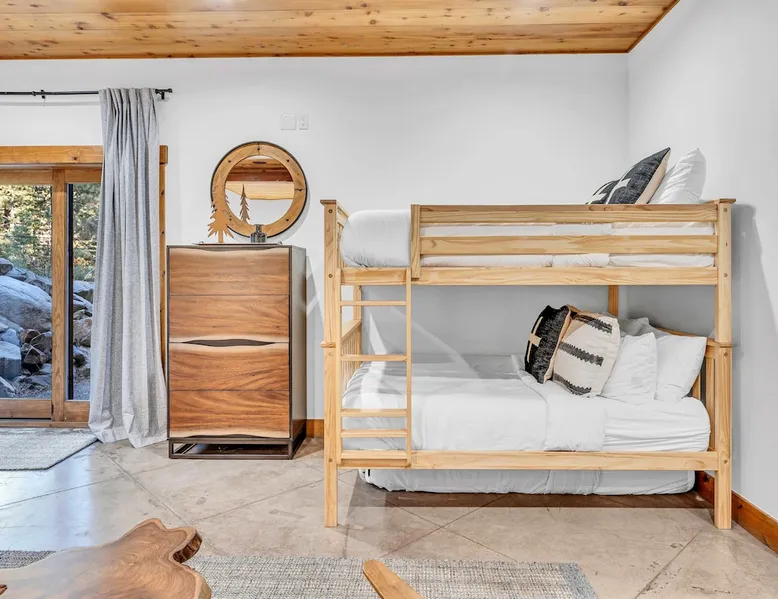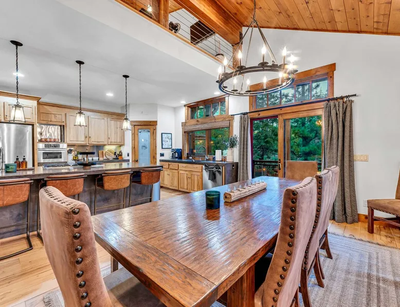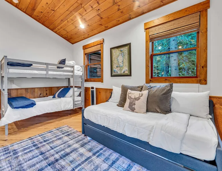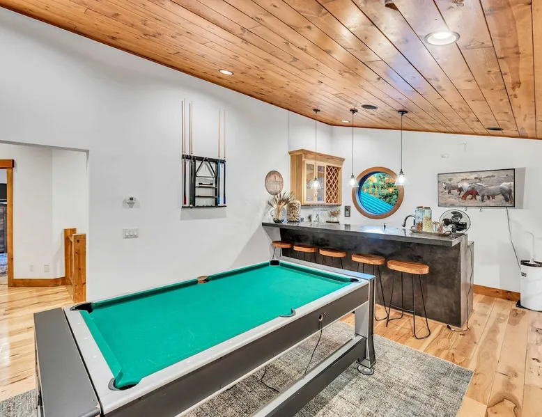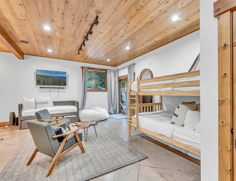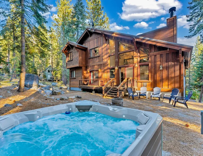 Experience mountain luxury in this split-level chalet, near top ski resorts and backed by the Tahoe National Forest with no rear neighbors. This spacious Soda Springs vacation rental features a private hot tub, a game room with a pool table, and Smart TVs in every bedroom. A separate apartment with a full kitchen and laundry is perfect for teens or guests needing extra space. Modern amenities and stunning forest views make this the ultimate family getaway for relaxation and adventure. The space Location perks: Soda Springs Mountain Resort (4.3 miles), Boreal Mountain Resort (6.2 miles), Sugar Bowl Resort (6.3 miles), Long Lake (9.1 miles), Truckee (15.9 miles) Interior: - Fully equipped kitchen (drip coffee maker, Keurig, Crockpot, cooking utensils, tableware) - Separate apartment (full kitchen, full bathroom, laundry, queen bed, twin bed, full-over-full bunk beds, 55” Smart TV) - 7 Smart TVs (TVs in every bedroom) - Wood-burning fireplace - Game room (pool table, full wet bar) - Wii - Free WiFi - Radiant heating and No A/C - 3,923 sq. ft. Exterior: - 6-person hot tub - Private backyard (backs to Tahoe National Forest) - Backyard patio - 2 balconies - Gas BBQ w/ propane - Near hiking, UTV, and snowmobile trails - On-site parking (4 vehicles, driveway) - 4x4 and snow tires/chains required to access property (SUV recommended) Third Floor: 2 bedrooms, game room, 1 full bathroom, 1 en-suite bathroom Second Floor (Split Landing, 6 Steps from Kitchen): Bonus room First Floor: Kitchen, dining room, living room, 1 bedroom, 1 en-suite bathroom, 1 half bath Ground Floor: Mudroom, apartment, 1 full bathroom, garage Discover the ultimate family retreat in this spacious, split-level chalet, designed for comfort, privacy, and year-round enjoyment. Nestled against the Tahoe National Forest, with serene views and no rear neighbors, this home offers a true mountain escape. The main level features an impressive great room with soaring ceilings and forest views, a bistro-style chef’s kitchen, and a large dining area that opens to both front and rear outdoor areas—perfect for entertaining or simply unwinding in the fresh mountain air. Upstairs, you’ll find a dedicated game room with a pool table and a wet bar, creating an ideal space for family fun. The master suite is conveniently located on the main level, with 2 additional bedrooms upstairs, providing a blend of shared spaces and privacy. For even more flexibility, a cozy living area includes twin bunk beds and a twin bed with a trundle, making it a great space for extra guests or kids. A separate apartment, accessible through the garage, offers a full kitchen, laundry facilities, and multiple beds—perfect for teenagers or guests who prefer their own space. Every bedroom features a Smart TV, and the private backyard hot tub offers a peaceful place to relax. Whether you’re gathering in the inviting living room by the wood-burning fireplace or grilling on the deck, this chalet has everything you need for an unforgettable family getaway. STR License Number: TOT-24-0000208 Max Occupancy: 13 Parking Info: There are 4 parking spaces available. Guest access Guests will have access to the entire home and 4 on-site parking spaces in the driveway. To reach the property, guests will need 4x4 vehicles with snow tires/chains. SUVs are recommended. Other things to note Please note that like most homes in the area, this home does not have A/C. Please keep in mind that if you plan to ski, you are responsible for verifying the ski resorts' opening and closing dates.