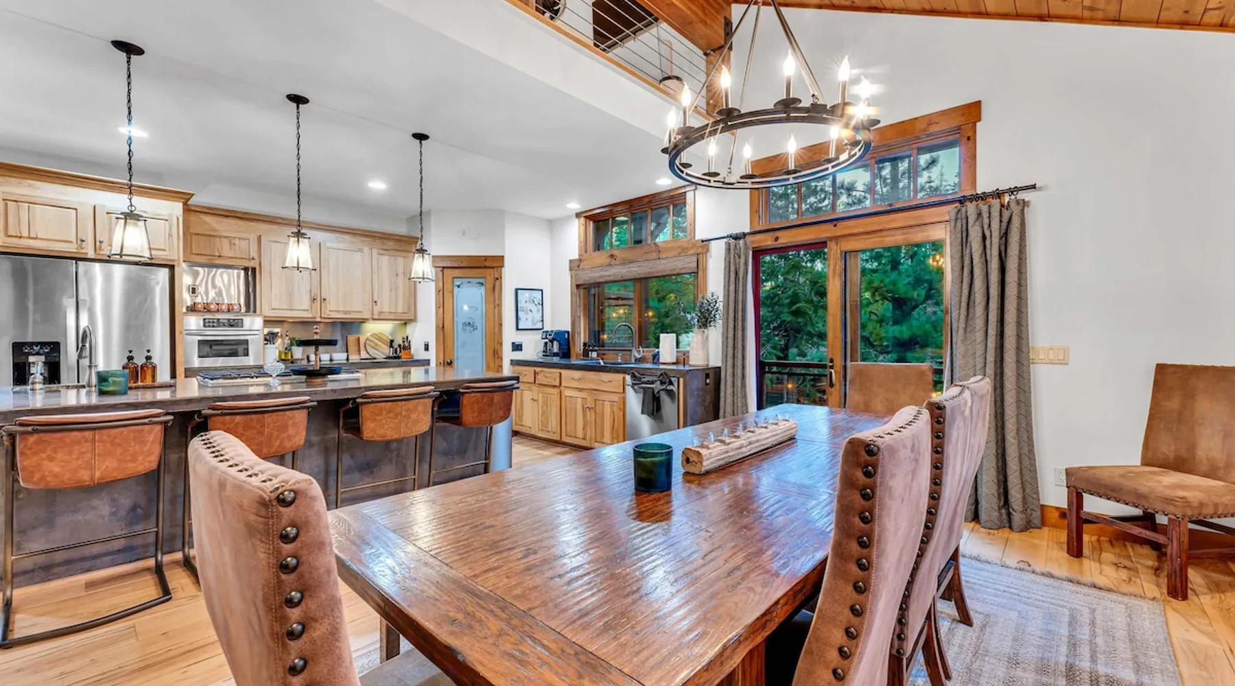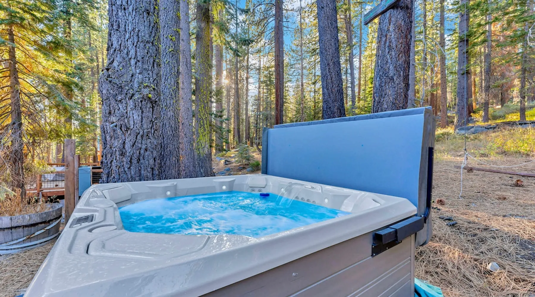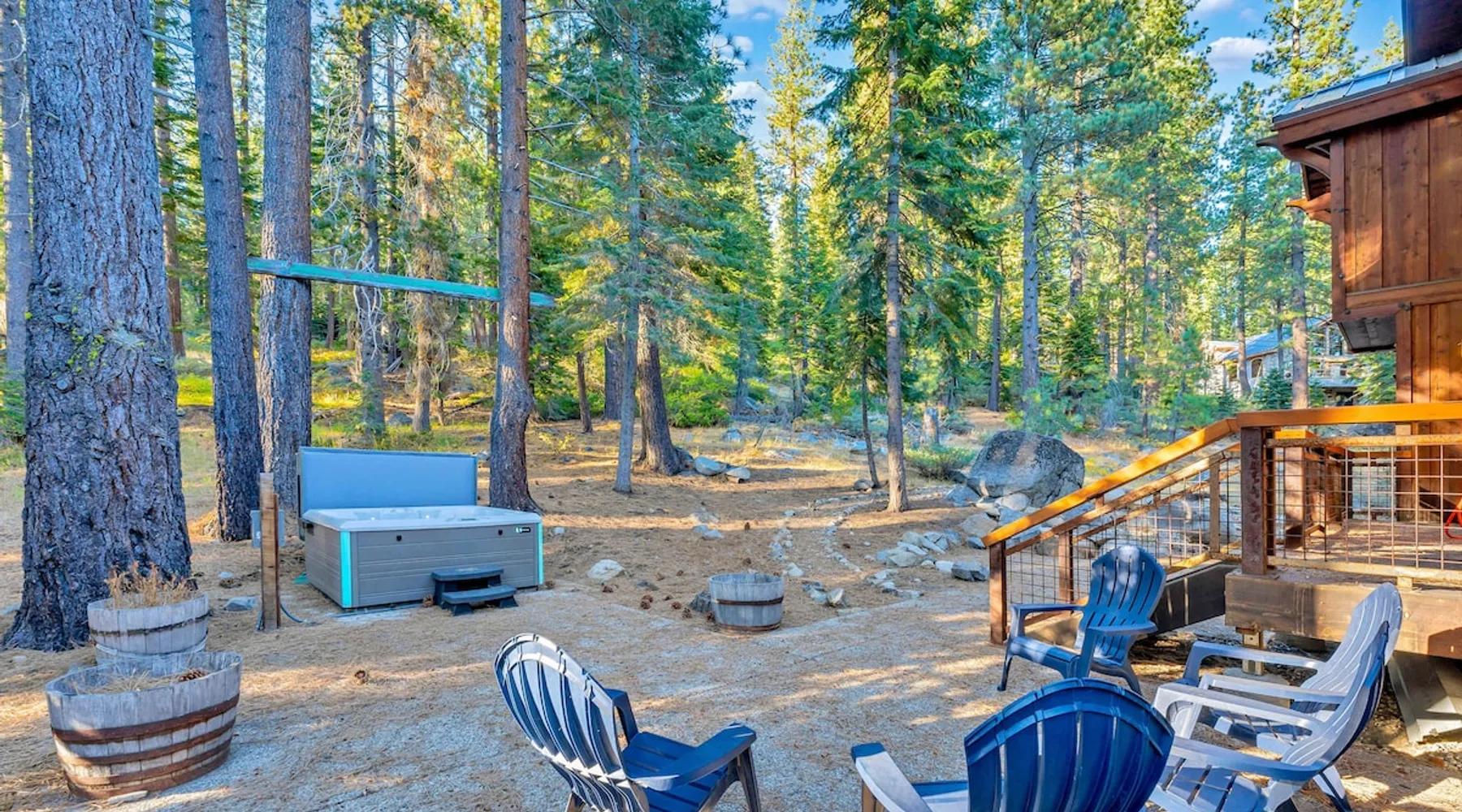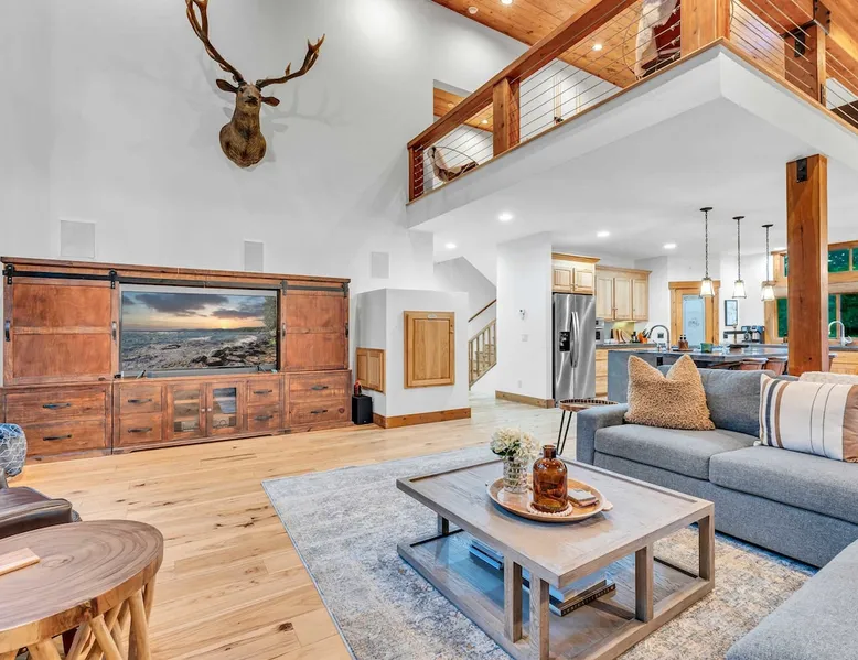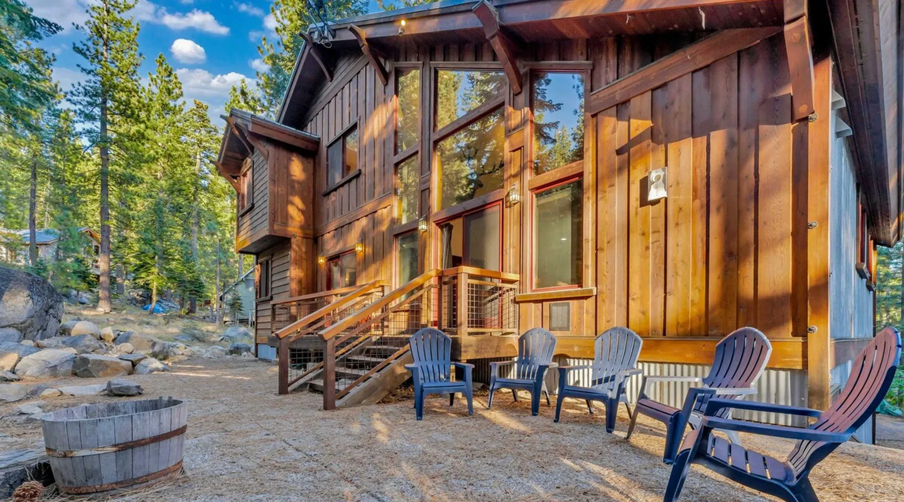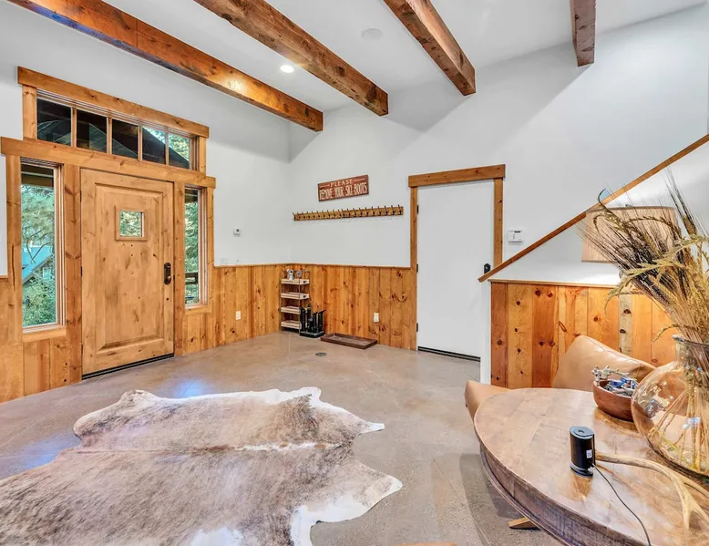 Experience mountain luxury in this split-level chalet, near top ski resorts and backed by the Tahoe National Forest with no rear neighbors. This spacious Soda Springs vacation rental features a private hot tub, a game room with a pool table, and Smart TVs in every bedroom. A separate apartment with a full kitchen and laundry is perfect for teens or guests needing extra space. Modern amenities and stunning forest views make this the ultimate family getaway for relaxation and adventure. The space Location perks: Soda Springs Mountain Resort (4.3 miles), Boreal Mountain Resort (6.2 miles), Sugar Bowl Resort (6.3 miles), Long Lake (9.1 miles), Truckee (15.9 miles) Interior: - Fully equipped kitchen (drip coffee maker, Keurig, Crockpot, cooking utensils, tableware) - Separate apartment (full kitchen, full bathroom, laundry, queen bed, twin bed, full-over-full bunk beds, 55” Smart TV) - 7 Smart TVs (TVs in every bedroom) - Wood-burning fireplace - Game room (pool table, full wet bar) - Wii - Free WiFi - Radiant heating and No A/C - 3,923 sq. ft. Exterior: - 6-person hot tub - Private backyard (backs to Tahoe National Forest) - Backyard patio - 2 balconies - Gas BBQ w/ propane - Near hiking, UTV, and snowmobile trails - On-site parking (4 vehicles, driveway) - 4x4 and snow tires/chains required to access property (SUV recommended) Third Floor: 2 bedrooms, game room, 1 full bathroom, 1 en-suite bathroom Second Floor (Split Landing, 6 Steps from Kitchen): Bonus room First Floor: Kitchen, dining room, living room, 1 bedroom, 1 en-suite bathroom, 1 half bath Ground Floor: Mudroom, apartment, 1 full bathroom, garage Discover the ultimate family retreat in this spacious, split-level chalet, designed for comfort, privacy, and year-round enjoyment. Nestled against the Tahoe National Forest, with serene views and no rear neighbors, this home offers a true mountain escape. The main level features an impressive great room with soaring ceilings and forest views, a bistro-style chef’s kitchen, and a large dining area that opens to both front and rear outdoor areas—perfect for entertaining or simply unwinding in the fresh mountain air. Upstairs, you’ll find a dedicated game room with a pool table and a wet bar, creating an ideal space for family fun. The master suite is conveniently located on the main level, with 2 additional bedrooms upstairs, providing a blend of shared spaces and privacy. For even more flexibility, a cozy living area includes twin bunk beds and a twin bed with a trundle, making it a great space for extra guests or kids. A separate apartment, accessible through the garage, offers a full kitchen, laundry facilities, and multiple beds—perfect for teenagers or guests who prefer their own space. Every bedroom features a Smart TV, and the private backyard hot tub offers a peaceful place to relax. Whether you’re gathering in the inviting living room by the wood-burning fireplace or grilling on the deck, this chalet has everything you need for an unforgettable family getaway. STR License Number: TOT-24-0000208 Max Occupancy: 13 Parking Info: There are 4 parking spaces available. Guest access Guests will have access to the entire home and 4 on-site parking spaces in the driveway. To reach the property, guests will need 4x4 vehicles with snow tires/chains. SUVs are recommended. Other things to note Please note that like most homes in the area, this home does not have A/C. Please keep in mind that if you plan to ski, you are responsible for verifying the ski resorts' opening and closing dates.