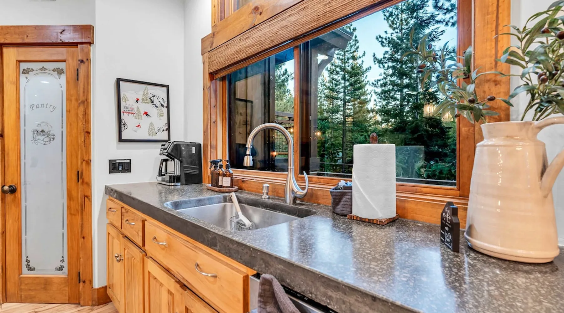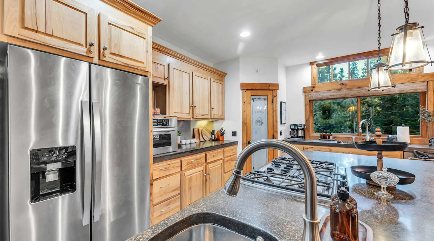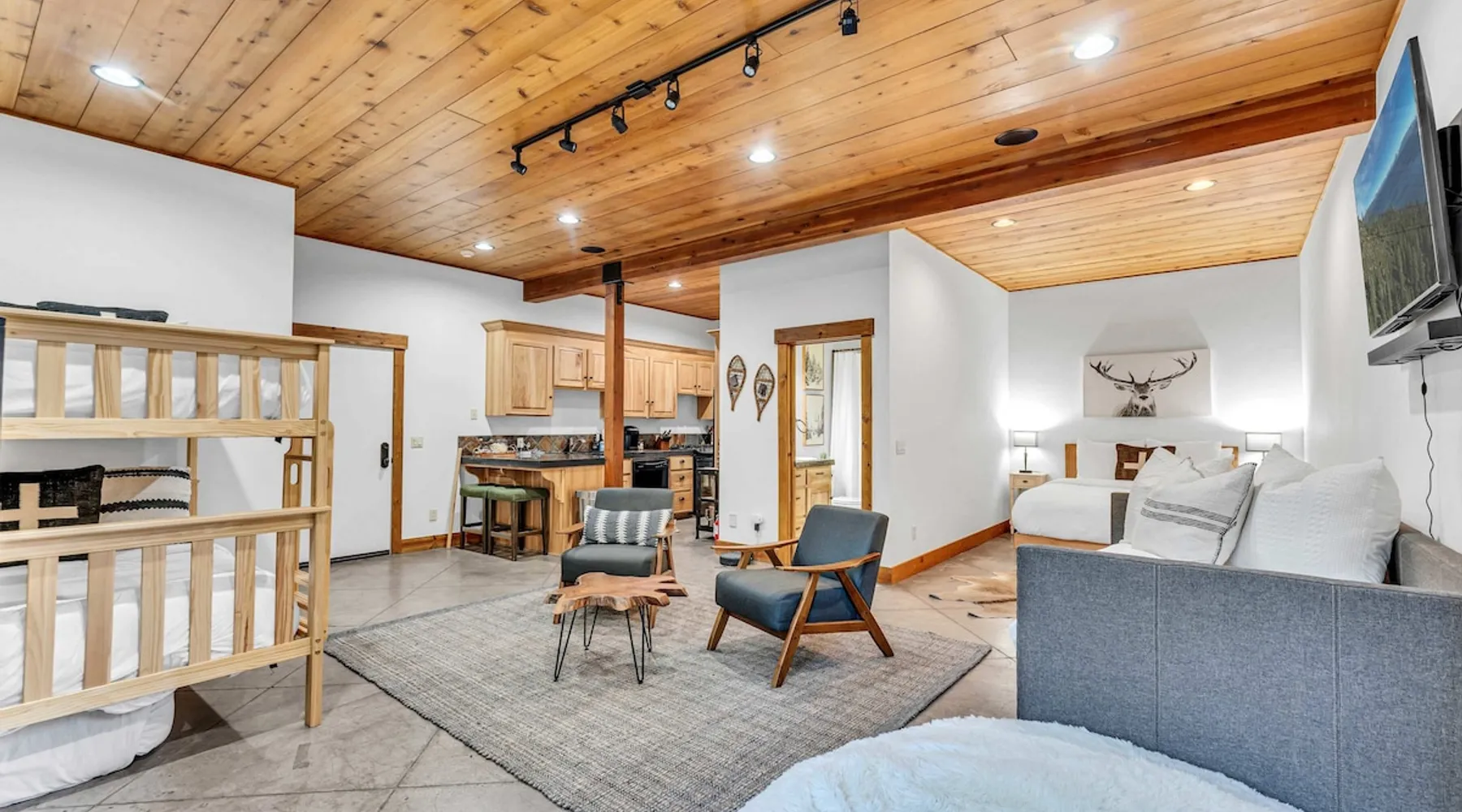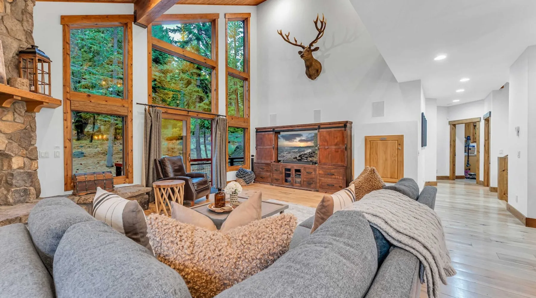 Experience mountain luxury in this split-level chalet, near top ski resorts and backed by the Tahoe National Forest with no rear neighbors. This spacious Soda Springs vacation rental features a private hot tub, a game room with a pool table, and Smart TVs in every bedroom. A separate apartment with a full kitchen and laundry is perfect for teens or guests needing extra space. Modern amenities and stunning forest views make this the ultimate family getaway for relaxation and adventure. The space Location perks: Soda Springs Mountain Resort (4.3 miles), Boreal Mountain Resort (6.2 miles), Sugar Bowl Resort (6.3 miles), Long Lake (9.1 miles), Truckee (15.9 miles) Interior: - Fully equipped kitchen (drip coffee maker, Keurig, Crockpot, cooking utensils, tableware) - Separate apartment (full kitchen, full bathroom, laundry, queen bed, twin bed, full-over-full bunk beds, 55” Smart TV) - 7 Smart TVs (TVs in every bedroom) - Wood-burning fireplace - Game room (pool table, full wet bar) - Wii - Free WiFi - Radiant heating and No A/C - 3,923 sq. ft. Exterior: - 6-person hot tub - Private backyard (backs to Tahoe National Forest) - Backyard patio - 2 balconies - Gas BBQ w/ propane - Near hiking, UTV, and snowmobile trails - On-site parking (4 vehicles, driveway) - 4x4 and snow tires/chains required to access property (SUV recommended) Third Floor: 2 bedrooms, game room, 1 full bathroom, 1 en-suite bathroom Second Floor (Split Landing, 6 Steps from Kitchen): Bonus room First Floor: Kitchen, dining room, living room, 1 bedroom, 1 en-suite bathroom, 1 half bath Ground Floor: Mudroom, apartment, 1 full bathroom, garage Discover the ultimate family retreat in this spacious, split-level chalet, designed for comfort, privacy, and year-round enjoyment. Nestled against the Tahoe National Forest, with serene views and no rear neighbors, this home offers a true mountain escape. The main level features an impressive great room with soaring ceilings and forest views, a bistro-style chef’s kitchen, and a large dining area that opens to both front and rear outdoor areas—perfect for entertaining or simply unwinding in the fresh mountain air. Upstairs, you’ll find a dedicated game room with a pool table and a wet bar, creating an ideal space for family fun. The master suite is conveniently located on the main level, with 2 additional bedrooms upstairs, providing a blend of shared spaces and privacy. For even more flexibility, a cozy living area includes twin bunk beds and a twin bed with a trundle, making it a great space for extra guests or kids. A separate apartment, accessible through the garage, offers a full kitchen, laundry facilities, and multiple beds—perfect for teenagers or guests who prefer their own space. Every bedroom features a Smart TV, and the private backyard hot tub offers a peaceful place to relax. Whether you’re gathering in the inviting living room by the wood-burning fireplace or grilling on the deck, this chalet has everything you need for an unforgettable family getaway. STR License Number: TOT-24-0000208 Max Occupancy: 13 Parking Info: There are 4 parking spaces available. Guest access Guests will have access to the entire home and 4 on-site parking spaces in the driveway. To reach the property, guests will need 4x4 vehicles with snow tires/chains. SUVs are recommended. Other things to note Please note that like most homes in the area, this home does not have A/C. Please keep in mind that if you plan to ski, you are responsible for verifying the ski resorts' opening and closing dates.