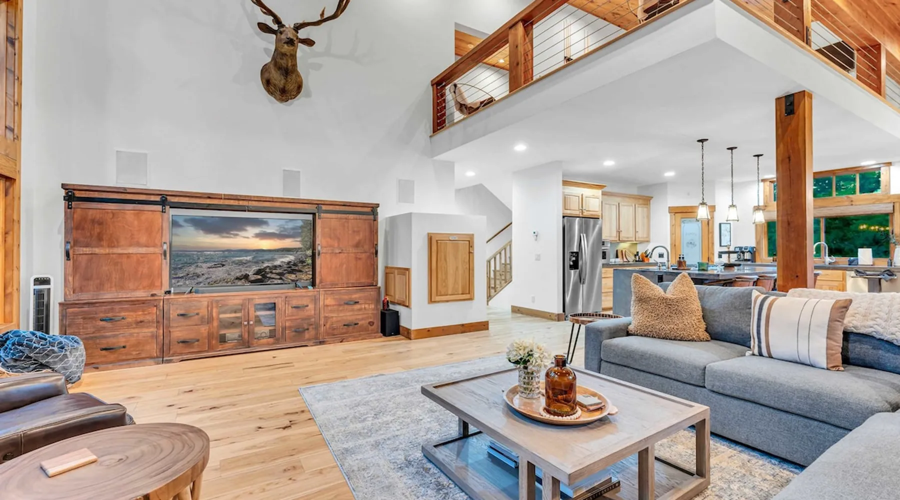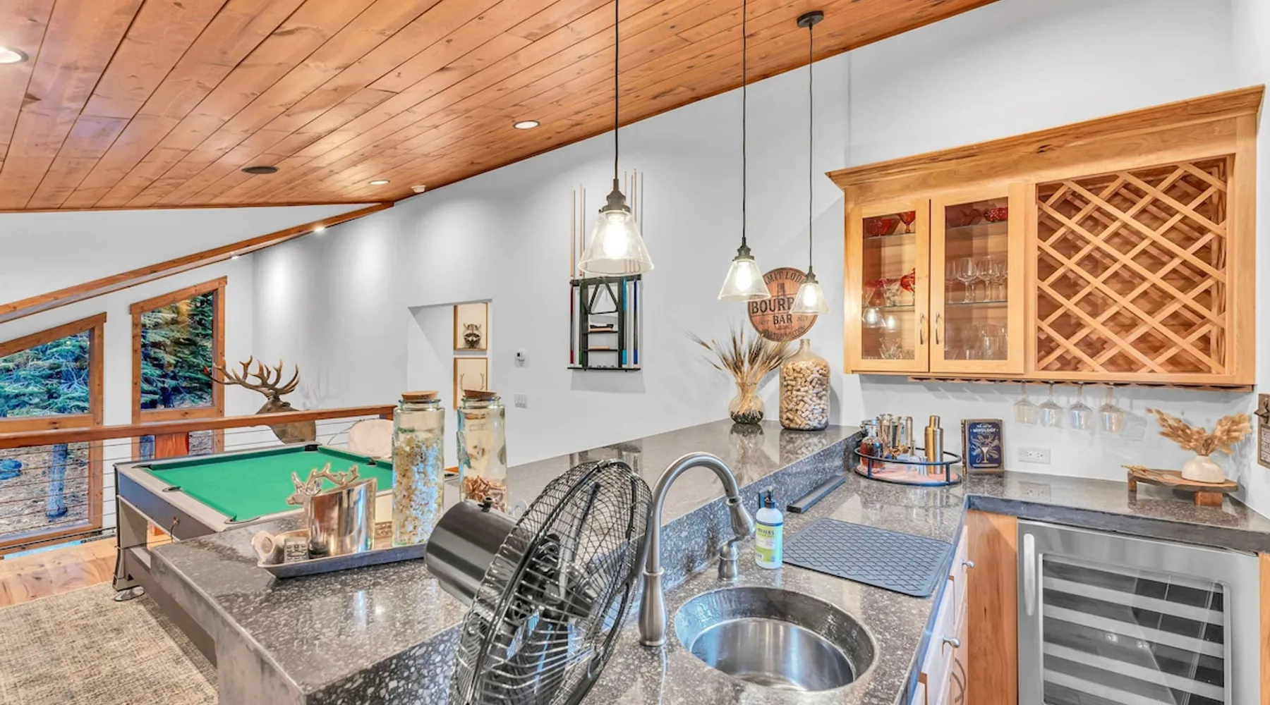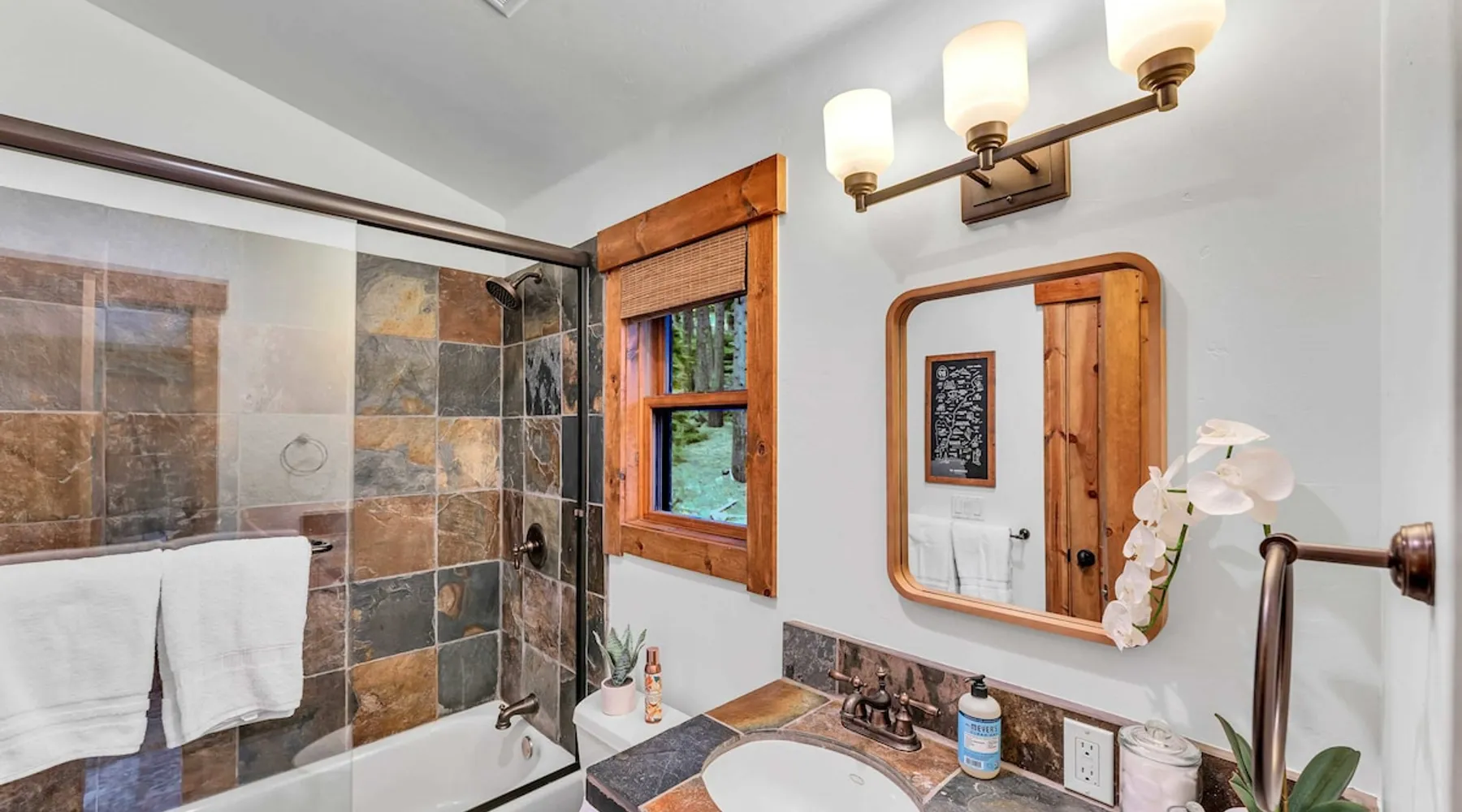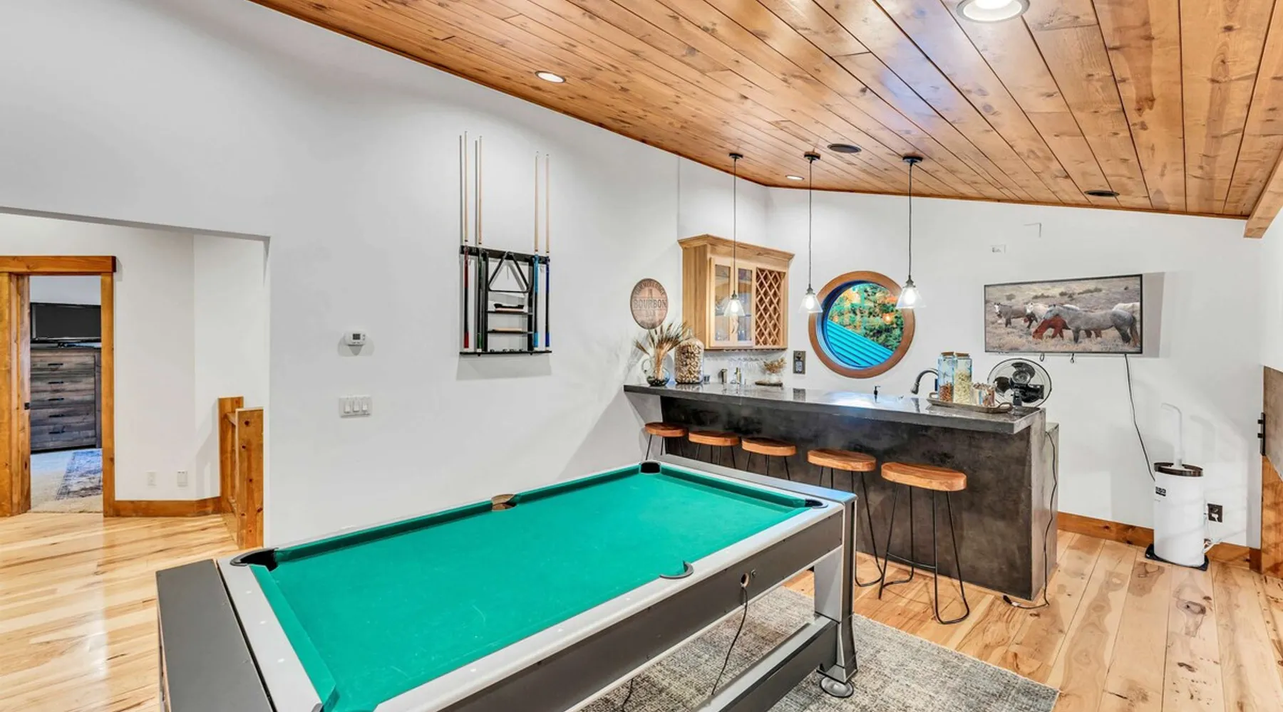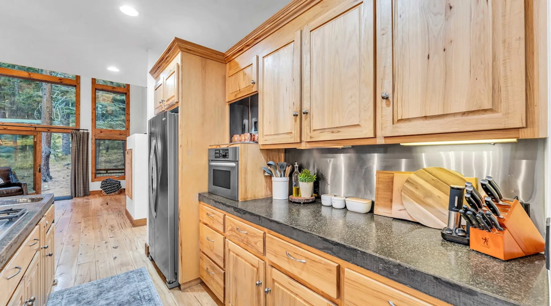 Experience mountain luxury in this split-level chalet, near top ski resorts and backed by the Tahoe National Forest with no rear neighbors. This spacious Soda Springs vacation rental features a private hot tub, a game room with a pool table, and Smart TVs in every bedroom. A separate apartment with a full kitchen and laundry is perfect for teens or guests needing extra space. Modern amenities and stunning forest views make this the ultimate family getaway for relaxation and adventure. The space Location perks: Soda Springs Mountain Resort (4.3 miles), Boreal Mountain Resort (6.2 miles), Sugar Bowl Resort (6.3 miles), Long Lake (9.1 miles), Truckee (15.9 miles) Interior: - Fully equipped kitchen (drip coffee maker, Keurig, Crockpot, cooking utensils, tableware) - Separate apartment (full kitchen, full bathroom, laundry, queen bed, twin bed, full-over-full bunk beds, 55” Smart TV) - 7 Smart TVs (TVs in every bedroom) - Wood-burning fireplace - Game room (pool table, full wet bar) - Wii - Free WiFi - Radiant heating and No A/C - 3,923 sq. ft. Exterior: - 6-person hot tub - Private backyard (backs to Tahoe National Forest) - Backyard patio - 2 balconies - Gas BBQ w/ propane - Near hiking, UTV, and snowmobile trails - On-site parking (4 vehicles, driveway) - 4x4 and snow tires/chains required to access property (SUV recommended) Third Floor: 2 bedrooms, game room, 1 full bathroom, 1 en-suite bathroom Second Floor (Split Landing, 6 Steps from Kitchen): Bonus room First Floor: Kitchen, dining room, living room, 1 bedroom, 1 en-suite bathroom, 1 half bath Ground Floor: Mudroom, apartment, 1 full bathroom, garage Discover the ultimate family retreat in this spacious, split-level chalet, designed for comfort, privacy, and year-round enjoyment. Nestled against the Tahoe National Forest, with serene views and no rear neighbors, this home offers a true mountain escape. The main level features an impressive great room with soaring ceilings and forest views, a bistro-style chef’s kitchen, and a large dining area that opens to both front and rear outdoor areas—perfect for entertaining or simply unwinding in the fresh mountain air. Upstairs, you’ll find a dedicated game room with a pool table and a wet bar, creating an ideal space for family fun. The master suite is conveniently located on the main level, with 2 additional bedrooms upstairs, providing a blend of shared spaces and privacy. For even more flexibility, a cozy living area includes twin bunk beds and a twin bed with a trundle, making it a great space for extra guests or kids. A separate apartment, accessible through the garage, offers a full kitchen, laundry facilities, and multiple beds—perfect for teenagers or guests who prefer their own space. Every bedroom features a Smart TV, and the private backyard hot tub offers a peaceful place to relax. Whether you’re gathering in the inviting living room by the wood-burning fireplace or grilling on the deck, this chalet has everything you need for an unforgettable family getaway. STR License Number: TOT-24-0000208 Max Occupancy: 13 Parking Info: There are 4 parking spaces available. Guest access Guests will have access to the entire home and 4 on-site parking spaces in the driveway. To reach the property, guests will need 4x4 vehicles with snow tires/chains. SUVs are recommended. Other things to note Please note that like most homes in the area, this home does not have A/C. Please keep in mind that if you plan to ski, you are responsible for verifying the ski resorts' opening and closing dates.