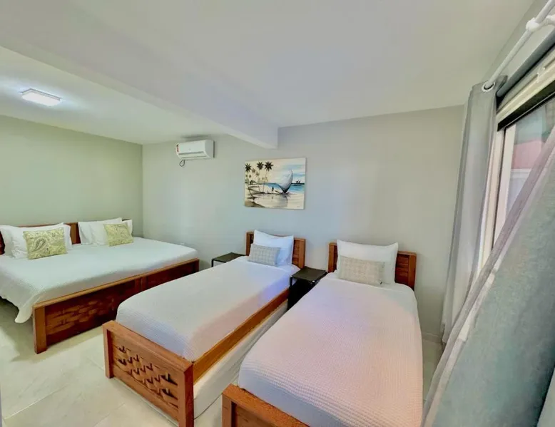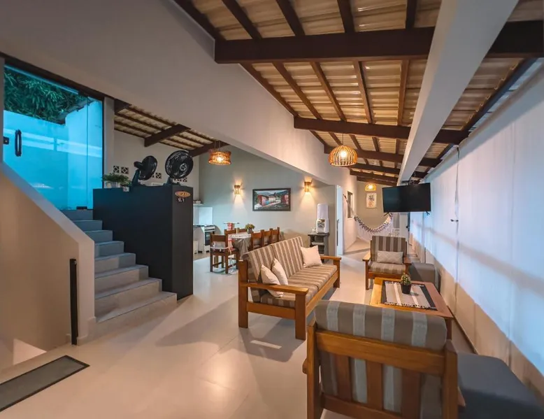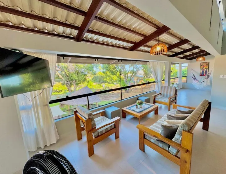 Spacious Holiday Home in Maragogi: Casa Maravida offers a spacious, recently renovated holiday home in Maragogi, Brazil. Guests enjoy sea views, a swimming pool with a view, sun terrace, and a lush garden. Modern Amenities: The property features free WiFi, air-conditioning, a fully equipped kitchen, and a private check-in and check-out service. Additional facilities include an outdoor fireplace, shared kitchen, laundry service, and barbecue facilities. Prime Location: Located less than 0.6 mi from Peroba Beach and 70 mi from Recife International Airport, Casa Maravida provides easy access to local attractions. Nearby points of interest include Gales Natural Pools (6.2 mi) and Saltinho Biological Reserve (17 mi). Highly Rated by Guests: Guests appreciate the spaciousness, modern amenities, and excellent service, ensuring a comfortable and memorable stay. This holiday home's special feature is the pool with a view. Featuring a private entrance, this air-conditioned holiday home consists of 1 living room, 3 separate bedrooms and 4 bathrooms with a walk-in shower and a bath. Guests will find a stovetop, a refrigerator, kitchenware and an oven in the kitchen. The holiday home also offers a barbecue. The spacious holiday home provides a flat-screen TV with satellite channels, a washing machine, a tea and coffee maker, a seating area as well as sea views. The unit offers 7 beds.