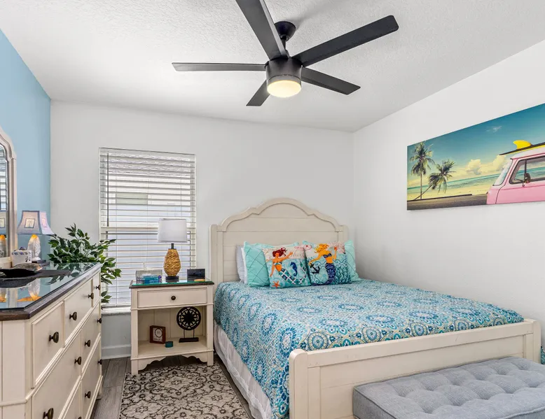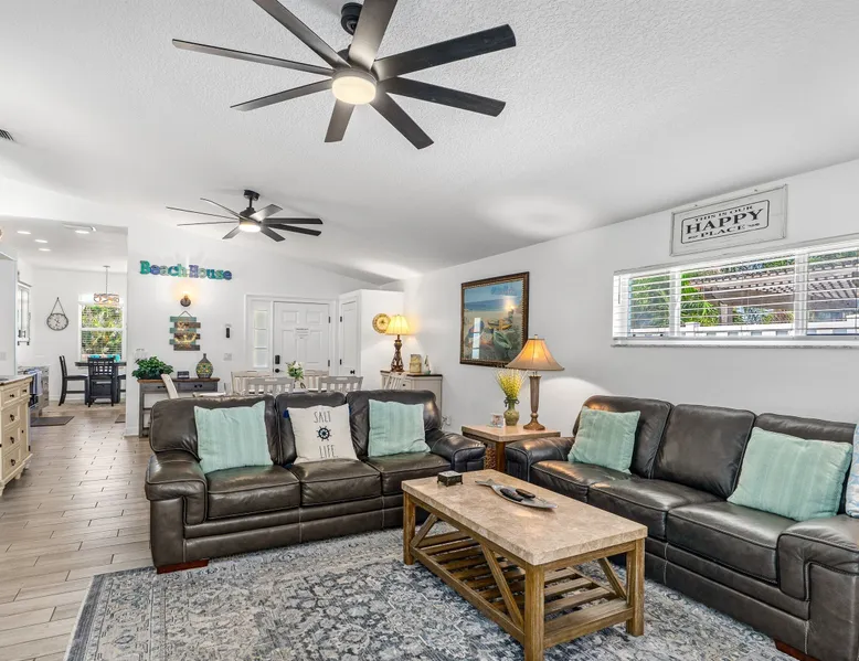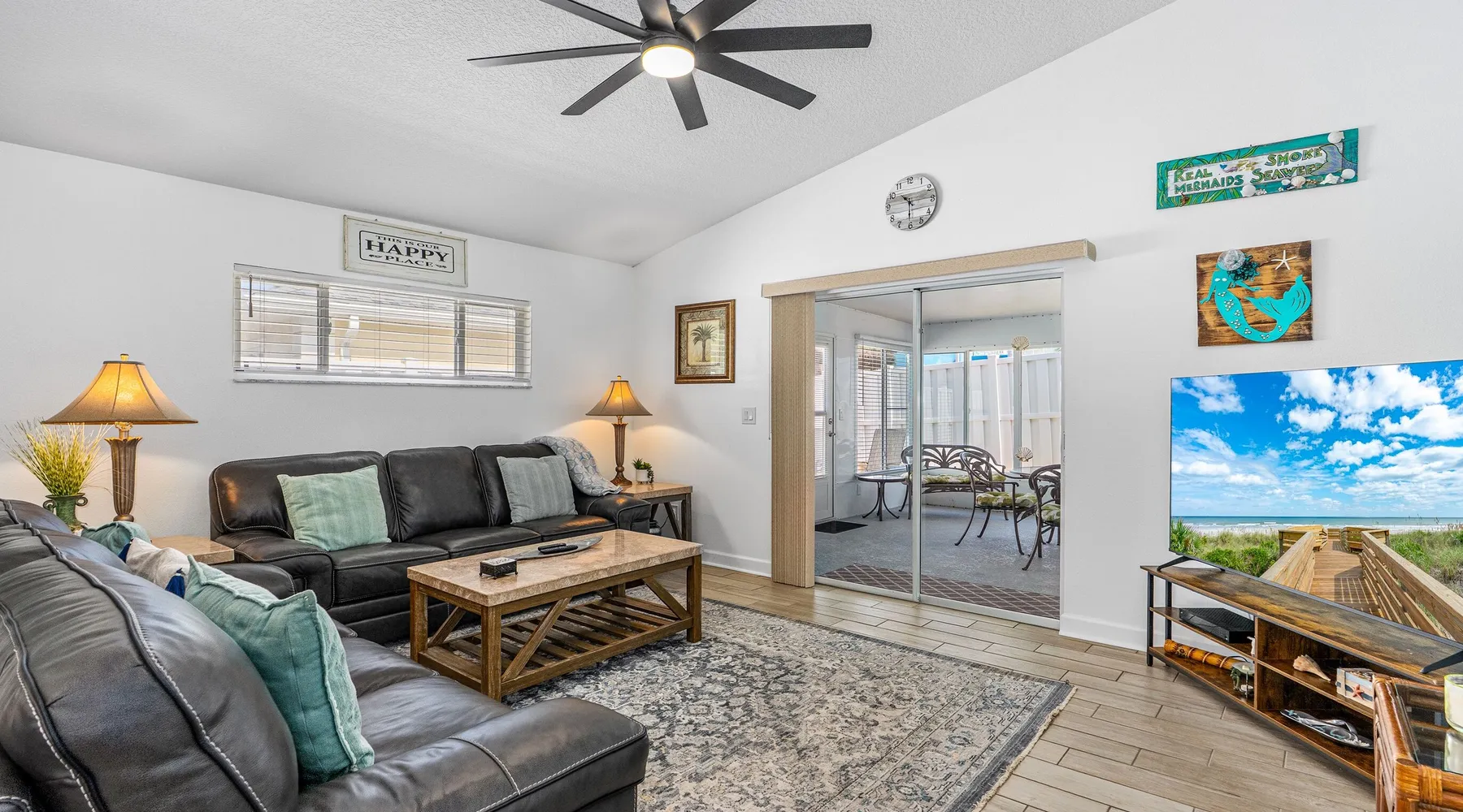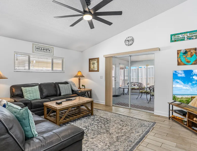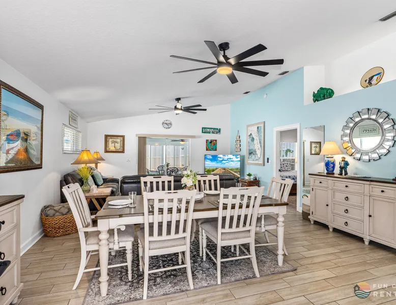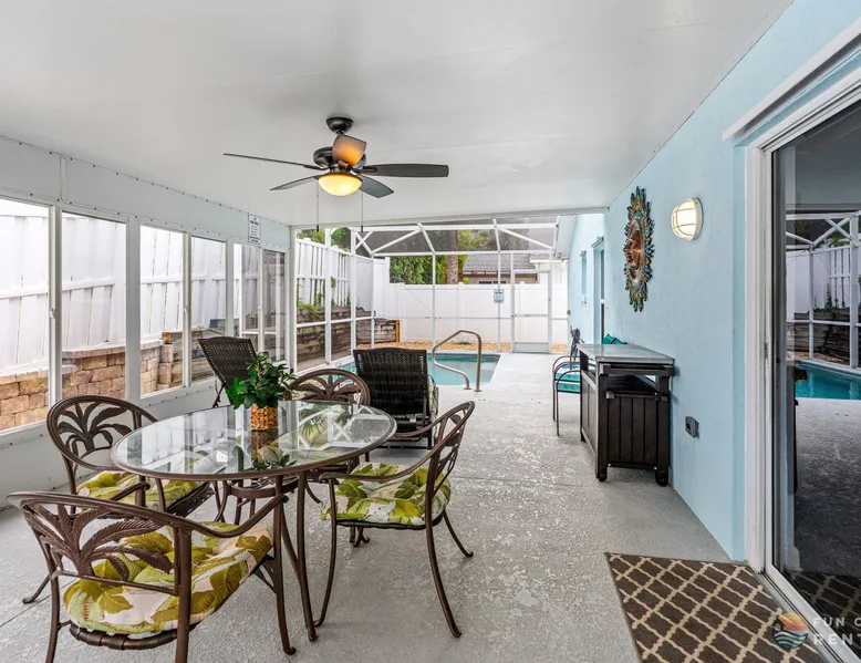 Relax and unwind in this spacious and beachy 3 bedroom, 2 bath home ideally located in the NSB beachside! Just a short 2 minute walk from the ocean, this coastal retreat features nautical decor, a private pool, fully equipped kitchen, and enclosed garage. Enjoy sunny days poolside, beach strolls, and cozy nights in a home that has everything you need for the perfect getaway. Ideal for families or friends looking for comfort, convenience, and coastal charm—all in one unforgettable location. Booking guest must review and e-sign the property Rental Agreement before check-in. A $250.00 USD security hold will be separately pre-authorized on your credit card on file by Fun Coast Rentals one (1) day before arrival and will be released within two (2) days following departure, provided no damages are found at the property. For stays longer than 7 days, the security hold will be released and recaptured each 7 day period of your stay. This property is dog friendly (1 dog, 15 lbs or less) with a Pet Fee of $163.80 USD + Tax. Dog must be cleaned up after throughout guest's stay and must never be permitted on any furniture or left unattended at the property. Please be sure to disclose pet when booking. Legal ADA Service Animals (dogs or miniature horses only) are always welcome and do not need to be included in the pet count when booking. Please note that an Emotional Support Animal (ESA) does not qualify as a Service Animal in the State of Florida. Parking: One (1) parking space in attached driveway. One (1) parking space inside the enclosed garage. All are offered free of charge to guests.