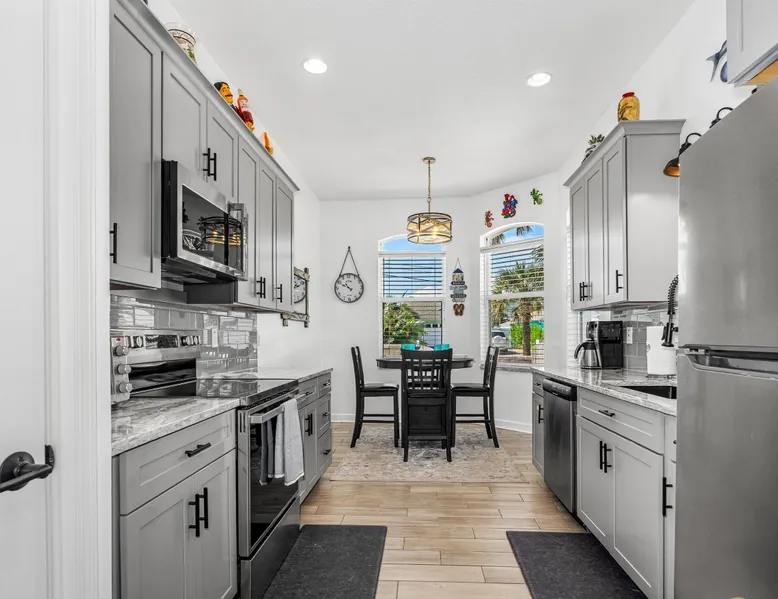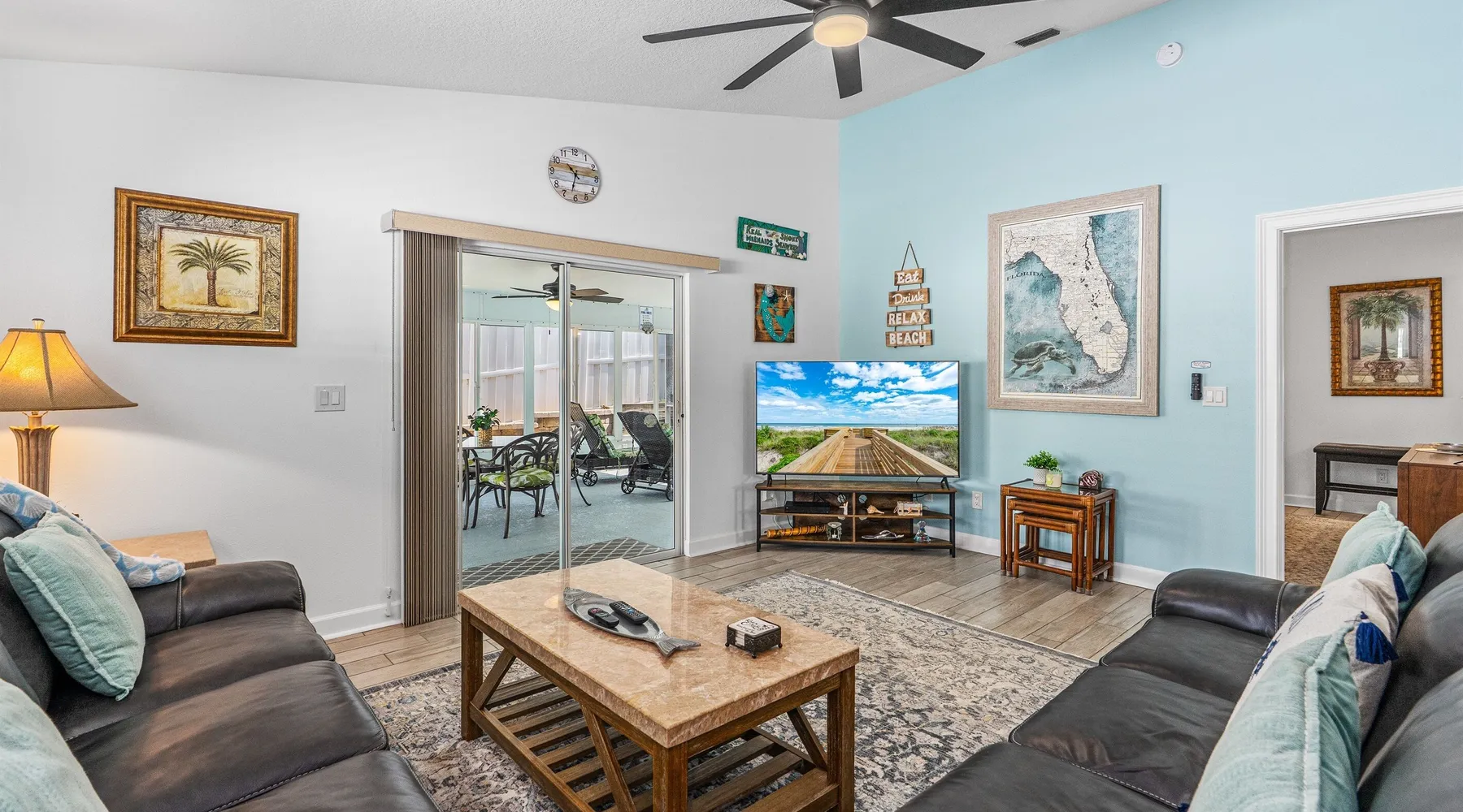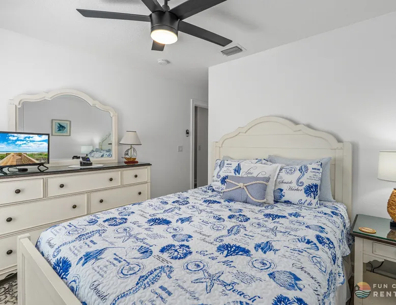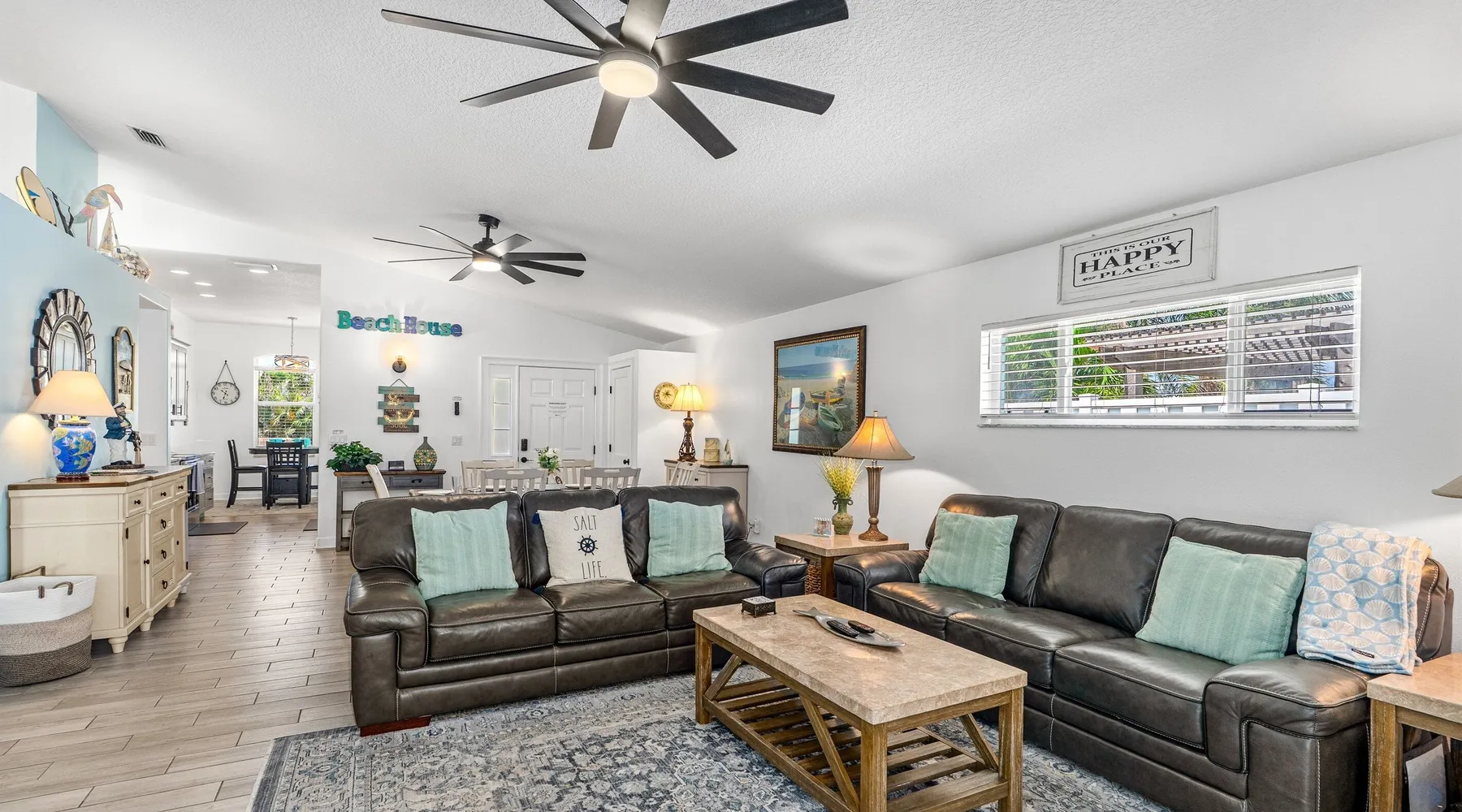 Relax and unwind in this spacious and beachy 3 bedroom, 2 bath home ideally located in the NSB beachside! Just a short 2 minute walk from the ocean, this coastal retreat features nautical decor, a private pool, fully equipped kitchen, and enclosed garage. Enjoy sunny days poolside, beach strolls, and cozy nights in a home that has everything you need for the perfect getaway. Ideal for families or friends looking for comfort, convenience, and coastal charm—all in one unforgettable location. Booking guest must review and e-sign the property Rental Agreement before check-in. A $250.00 USD security hold will be separately pre-authorized on your credit card on file by Fun Coast Rentals one (1) day before arrival and will be released within two (2) days following departure, provided no damages are found at the property. For stays longer than 7 days, the security hold will be released and recaptured each 7 day period of your stay. This property is dog friendly (1 dog, 15 lbs or less) with a Pet Fee of $163.80 USD + Tax. Dog must be cleaned up after throughout guest's stay and must never be permitted on any furniture or left unattended at the property. Please be sure to disclose pet when booking. Legal ADA Service Animals (dogs or miniature horses only) are always welcome and do not need to be included in the pet count when booking. Please note that an Emotional Support Animal (ESA) does not qualify as a Service Animal in the State of Florida. Parking: One (1) parking space in attached driveway. One (1) parking space inside the enclosed garage. All are offered free of charge to guests.