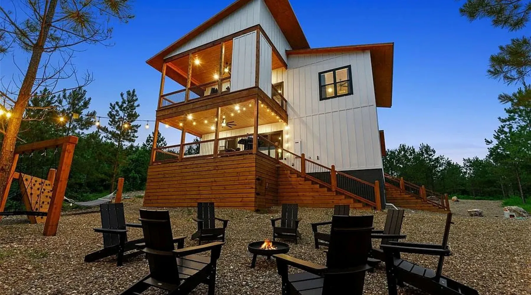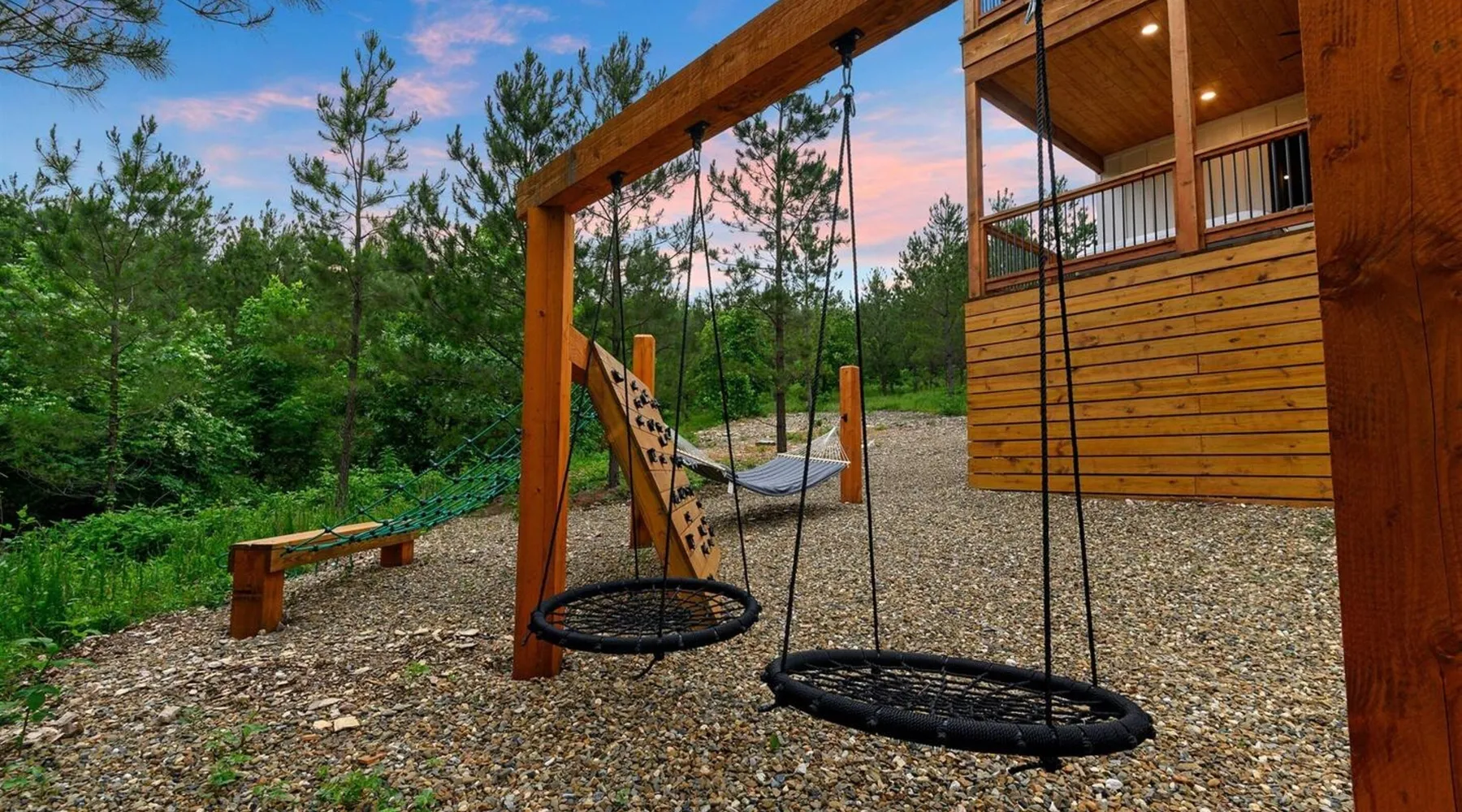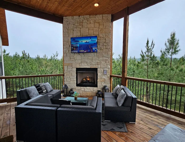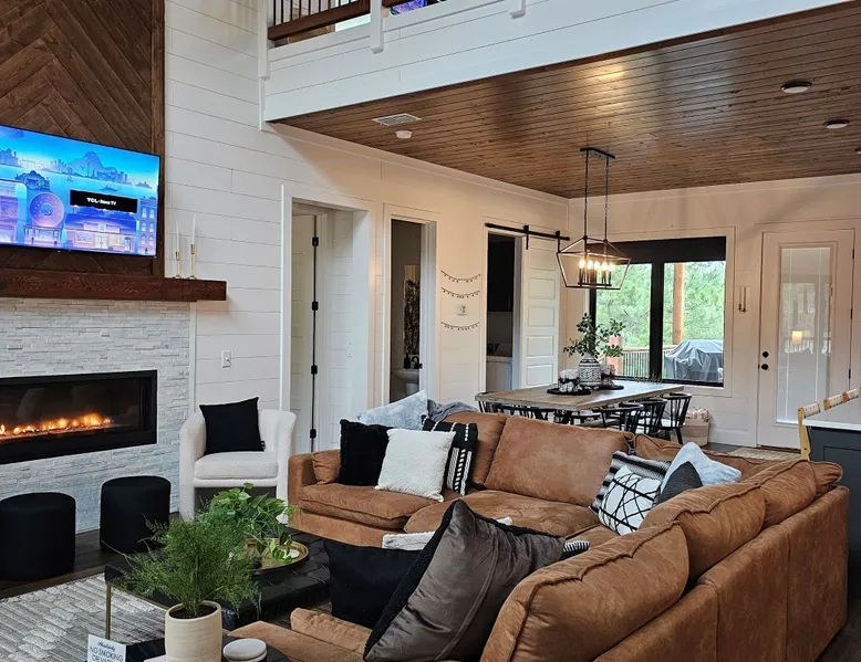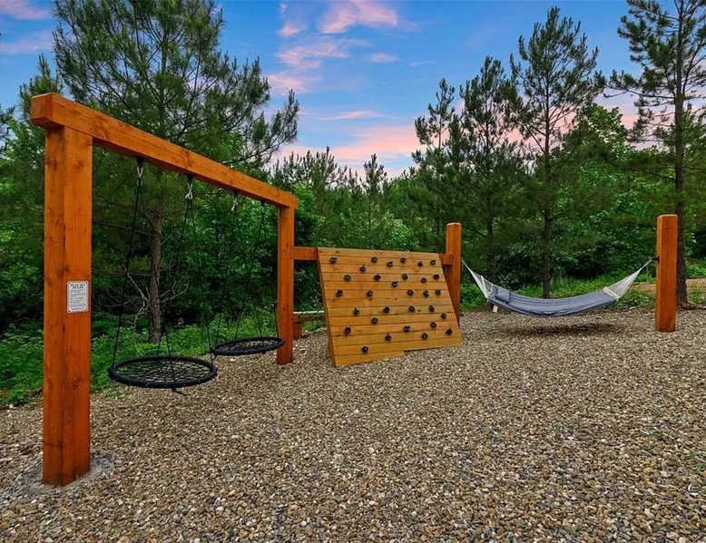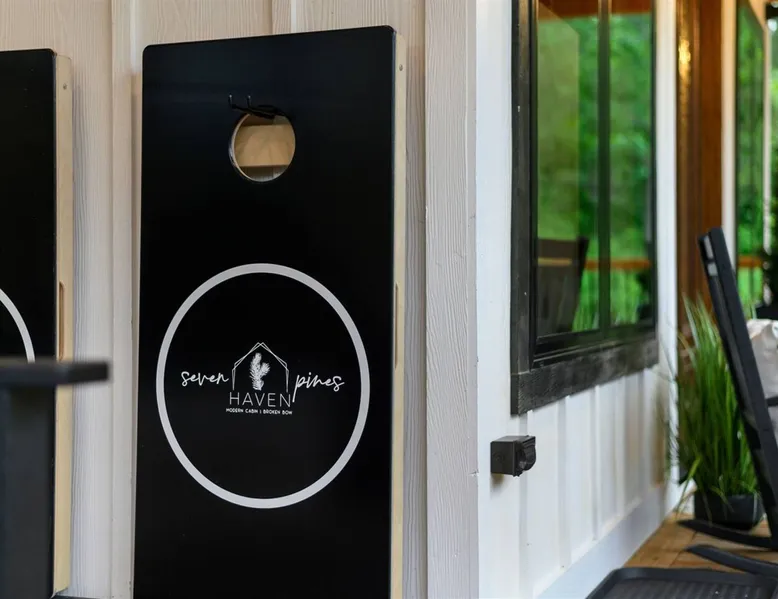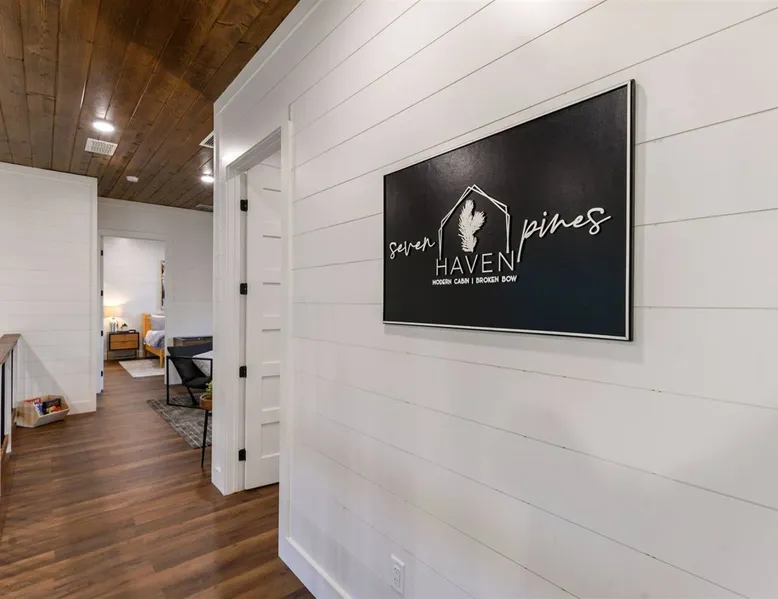 Seven Pines Haven – Where Luxury Meets Adventure! Nestled among towering pines in the heart of Hochatown, Seven Pines Haven is a breathtaking modern luxury cabin retreat designed for families, friends, and nature lovers. Whether you’re seeking adventure, relaxation, or a bit of both, this stunning 2-King bedroom + 4-Twin bunk room + 1-Twin loft cabin has everything you need for an unforgettable getaway. Luxury Accommodations for Restful Nights After a day of exploring, retreat to the comfort of two king suites, one with its own private ensuite bath. These serene havens feature plush luxury bedding, room-darkening shades, and peaceful forest views—ensuring a restful night’s sleep. An upstairs bedroom boasts two twin-over-twin bunk beds and a hideout teepee! The spacious open loft offers a cozy daybed, perfect for a kid or extra guest. A Stunning Open-Concept Retreat Step inside and be greeted by soaring vaulted ceilings, expansive windows, and a warm, modern aesthetic. The open floor plan creates a bright, airy space where you can gather, connect, and create lasting memories. Curl up by the electric-start Crystal rock fireplace and sip coffee in the cozy living area, or prepare meals in the fully stocked chef’s kitchen and coffee bar. Endless Entertainment & Outdoor Adventures At Seven Pines Haven, there’s never a dull moment. Challenge your friends to a game of shuffleboard or foosball, or let the kids conquer the rock wall and spider net climbing structure. The spacious outdoor explore area invites you to reconnect with nature, whether you're lounging in the hammocks, swaying on the spider swings, or roasting marshmallows around the firepit. Relax and Unwind in Style Enjoy the simple pleasures of cabin life with modern amenities designed for ultimate comfort. Soothe your muscles in the hot tub beneath the stars, or relax on the porch bed swing with a book and a glass of wine. In the evenings, gather around the outdoor gas-log fireplace on the covered deck, sharing stories and laughter while being surrounded by nature. Entertainment for Everyone Stay entertained indoors with Roku TVs equipped with Netflix, Hulu, Disney+, and more—perfect for cozy movie nights. The dedicated workspace offers a quiet place for remote work or planning your next adventure, and the attic fan & water softener add extra touches of comfort. A Perfect Broken Bow Escape Whether you’re exploring Beavers Bend State Park, hiking scenic trails, or boating on Broken Bow Lake, Seven Pines Haven is the perfect home base. This cabin offers the perfect mix of adventure, relaxation, and luxury, making it an unforgettable destination for families, friends, and couples alike. Book your stay today and experience the magic of Seven Pines Haven!