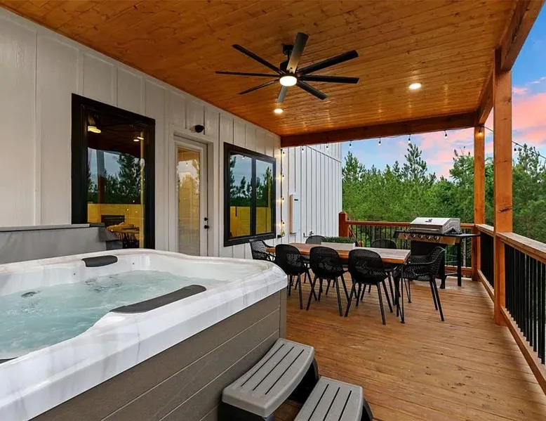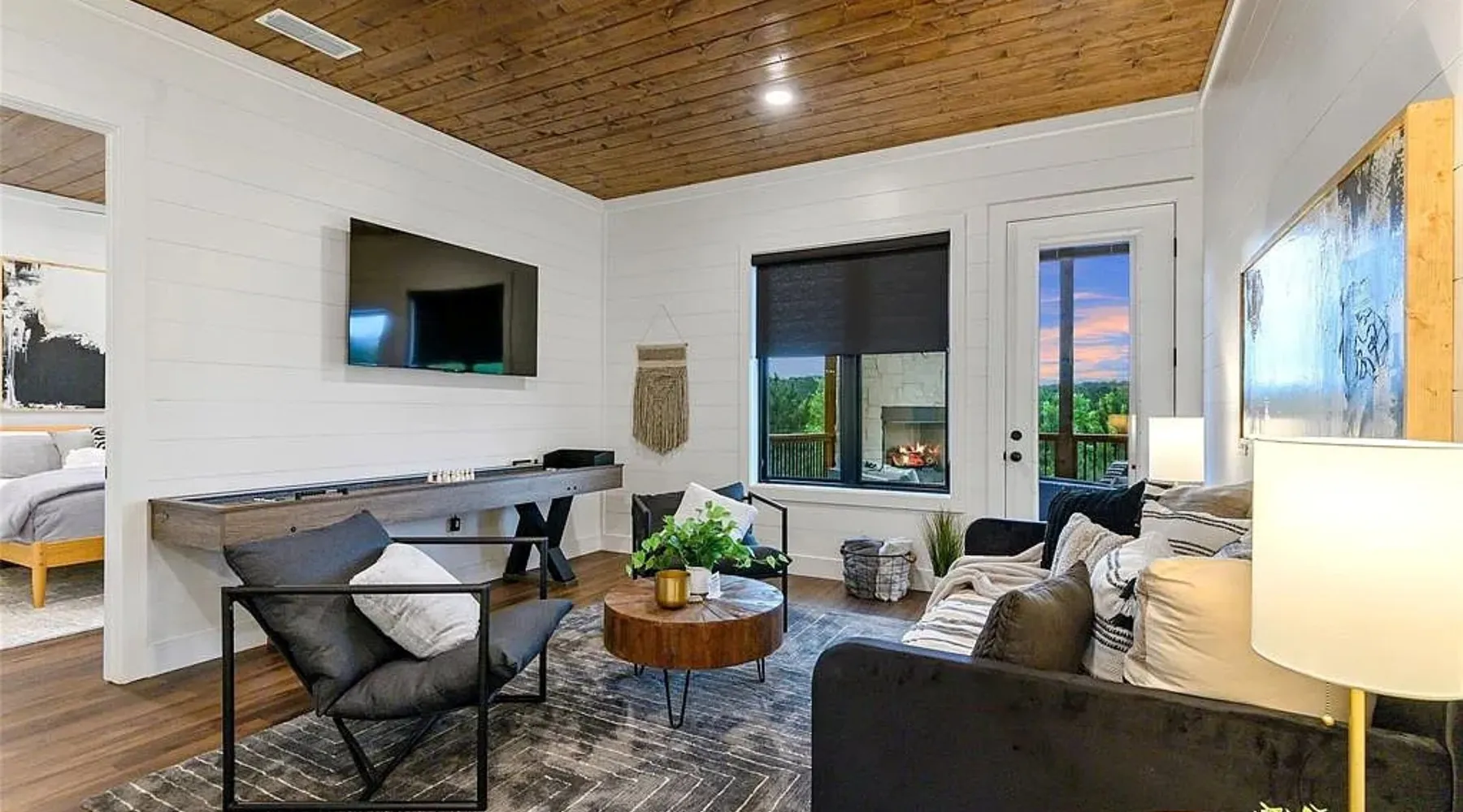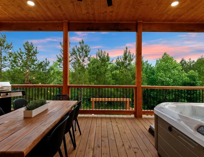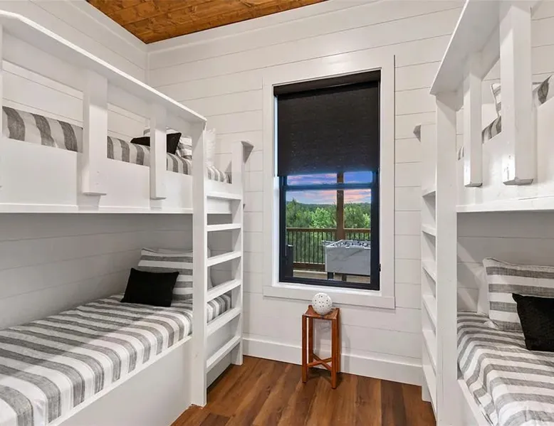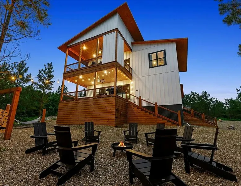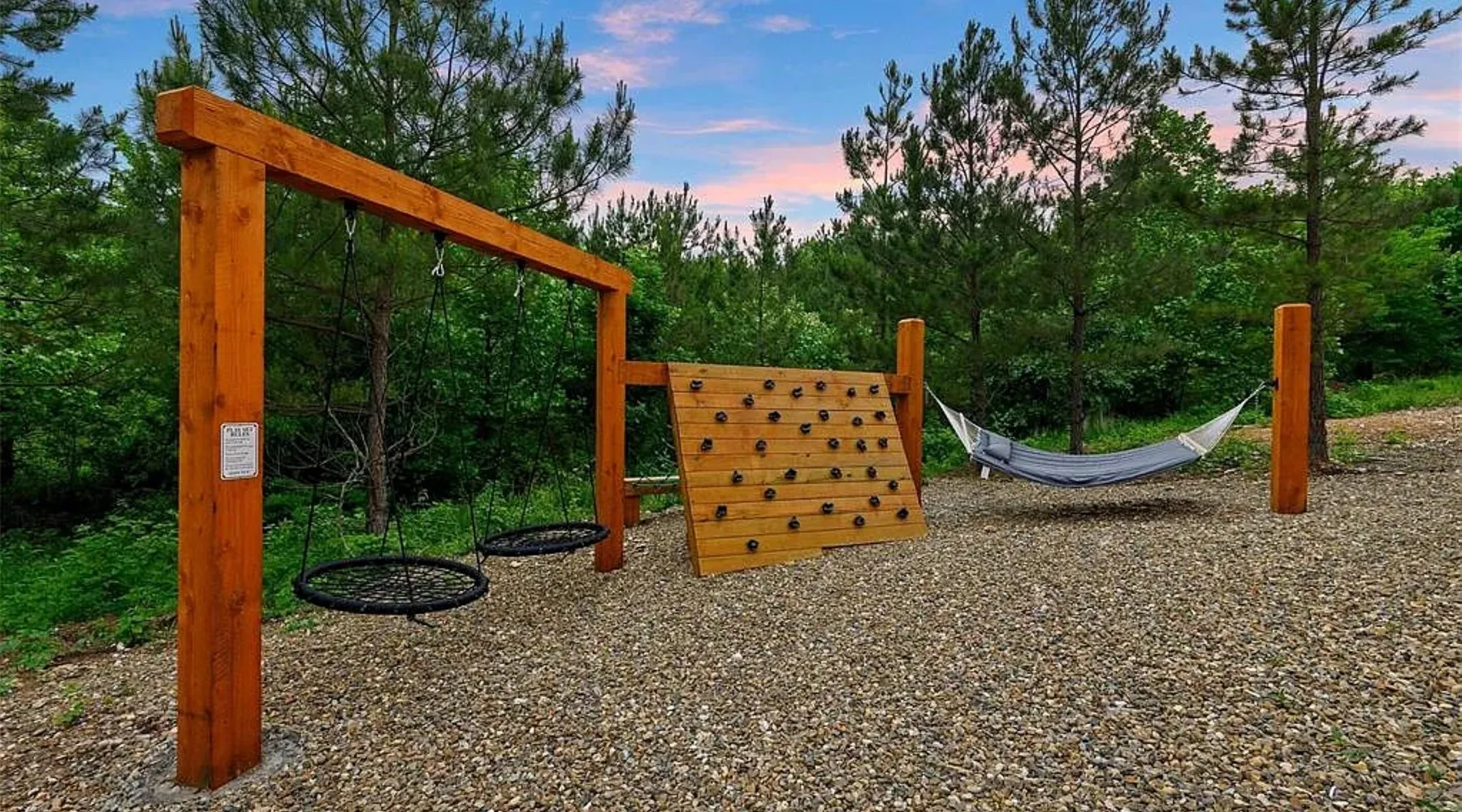 Seven Pines Haven – Where Luxury Meets Adventure! Nestled among towering pines in the heart of Hochatown, Seven Pines Haven is a breathtaking modern luxury cabin retreat designed for families, friends, and nature lovers. Whether you’re seeking adventure, relaxation, or a bit of both, this stunning 2-King bedroom + 4-Twin bunk room + 1-Twin loft cabin has everything you need for an unforgettable getaway. Luxury Accommodations for Restful Nights After a day of exploring, retreat to the comfort of two king suites, one with its own private ensuite bath. These serene havens feature plush luxury bedding, room-darkening shades, and peaceful forest views—ensuring a restful night’s sleep. An upstairs bedroom boasts two twin-over-twin bunk beds and a hideout teepee! The spacious open loft offers a cozy daybed, perfect for a kid or extra guest. A Stunning Open-Concept Retreat Step inside and be greeted by soaring vaulted ceilings, expansive windows, and a warm, modern aesthetic. The open floor plan creates a bright, airy space where you can gather, connect, and create lasting memories. Curl up by the electric-start Crystal rock fireplace and sip coffee in the cozy living area, or prepare meals in the fully stocked chef’s kitchen and coffee bar. Endless Entertainment & Outdoor Adventures At Seven Pines Haven, there’s never a dull moment. Challenge your friends to a game of shuffleboard or foosball, or let the kids conquer the rock wall and spider net climbing structure. The spacious outdoor explore area invites you to reconnect with nature, whether you're lounging in the hammocks, swaying on the spider swings, or roasting marshmallows around the firepit. Relax and Unwind in Style Enjoy the simple pleasures of cabin life with modern amenities designed for ultimate comfort. Soothe your muscles in the hot tub beneath the stars, or relax on the porch bed swing with a book and a glass of wine. In the evenings, gather around the outdoor gas-log fireplace on the covered deck, sharing stories and laughter while being surrounded by nature. Entertainment for Everyone Stay entertained indoors with Roku TVs equipped with Netflix, Hulu, Disney+, and more—perfect for cozy movie nights. The dedicated workspace offers a quiet place for remote work or planning your next adventure, and the attic fan & water softener add extra touches of comfort. A Perfect Broken Bow Escape Whether you’re exploring Beavers Bend State Park, hiking scenic trails, or boating on Broken Bow Lake, Seven Pines Haven is the perfect home base. This cabin offers the perfect mix of adventure, relaxation, and luxury, making it an unforgettable destination for families, friends, and couples alike. Book your stay today and experience the magic of Seven Pines Haven!