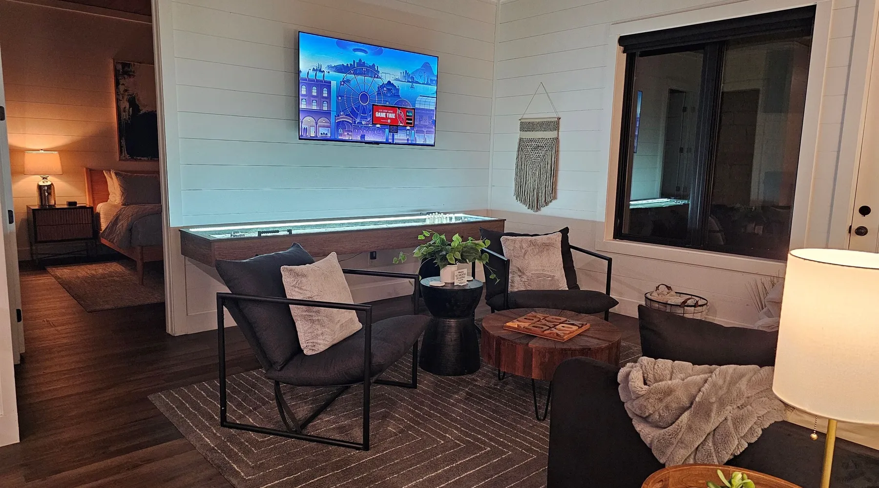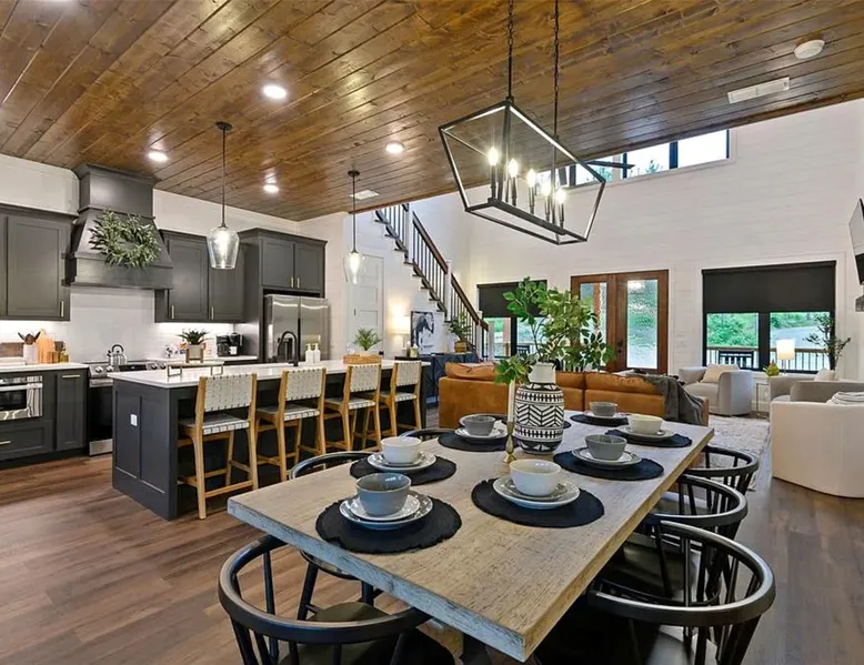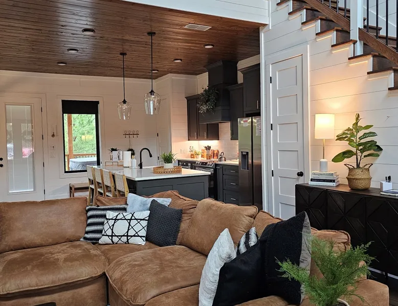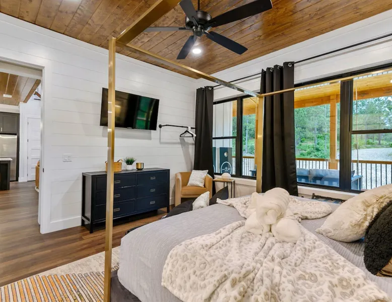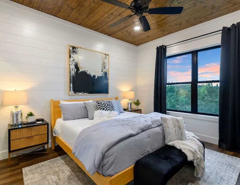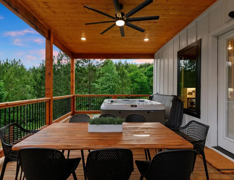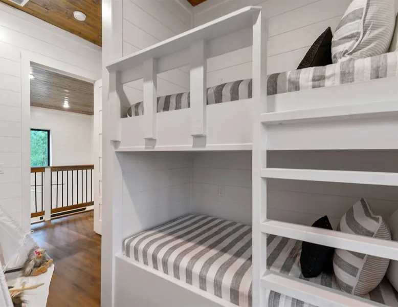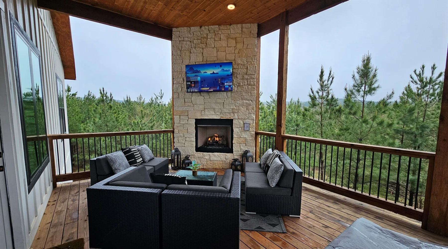 Seven Pines Haven – Where Luxury Meets Adventure! Nestled among towering pines in the heart of Hochatown, Seven Pines Haven is a breathtaking modern luxury cabin retreat designed for families, friends, and nature lovers. Whether you’re seeking adventure, relaxation, or a bit of both, this stunning 2-King bedroom + 4-Twin bunk room + 1-Twin loft cabin has everything you need for an unforgettable getaway. Luxury Accommodations for Restful Nights After a day of exploring, retreat to the comfort of two king suites, one with its own private ensuite bath. These serene havens feature plush luxury bedding, room-darkening shades, and peaceful forest views—ensuring a restful night’s sleep. An upstairs bedroom boasts two twin-over-twin bunk beds and a hideout teepee! The spacious open loft offers a cozy daybed, perfect for a kid or extra guest. A Stunning Open-Concept Retreat Step inside and be greeted by soaring vaulted ceilings, expansive windows, and a warm, modern aesthetic. The open floor plan creates a bright, airy space where you can gather, connect, and create lasting memories. Curl up by the electric-start Crystal rock fireplace and sip coffee in the cozy living area, or prepare meals in the fully stocked chef’s kitchen and coffee bar. Endless Entertainment & Outdoor Adventures At Seven Pines Haven, there’s never a dull moment. Challenge your friends to a game of shuffleboard or foosball, or let the kids conquer the rock wall and spider net climbing structure. The spacious outdoor explore area invites you to reconnect with nature, whether you're lounging in the hammocks, swaying on the spider swings, or roasting marshmallows around the firepit. Relax and Unwind in Style Enjoy the simple pleasures of cabin life with modern amenities designed for ultimate comfort. Soothe your muscles in the hot tub beneath the stars, or relax on the porch bed swing with a book and a glass of wine. In the evenings, gather around the outdoor gas-log fireplace on the covered deck, sharing stories and laughter while being surrounded by nature. Entertainment for Everyone Stay entertained indoors with Roku TVs equipped with Netflix, Hulu, Disney+, and more—perfect for cozy movie nights. The dedicated workspace offers a quiet place for remote work or planning your next adventure, and the attic fan & water softener add extra touches of comfort. A Perfect Broken Bow Escape Whether you’re exploring Beavers Bend State Park, hiking scenic trails, or boating on Broken Bow Lake, Seven Pines Haven is the perfect home base. This cabin offers the perfect mix of adventure, relaxation, and luxury, making it an unforgettable destination for families, friends, and couples alike. Book your stay today and experience the magic of Seven Pines Haven!