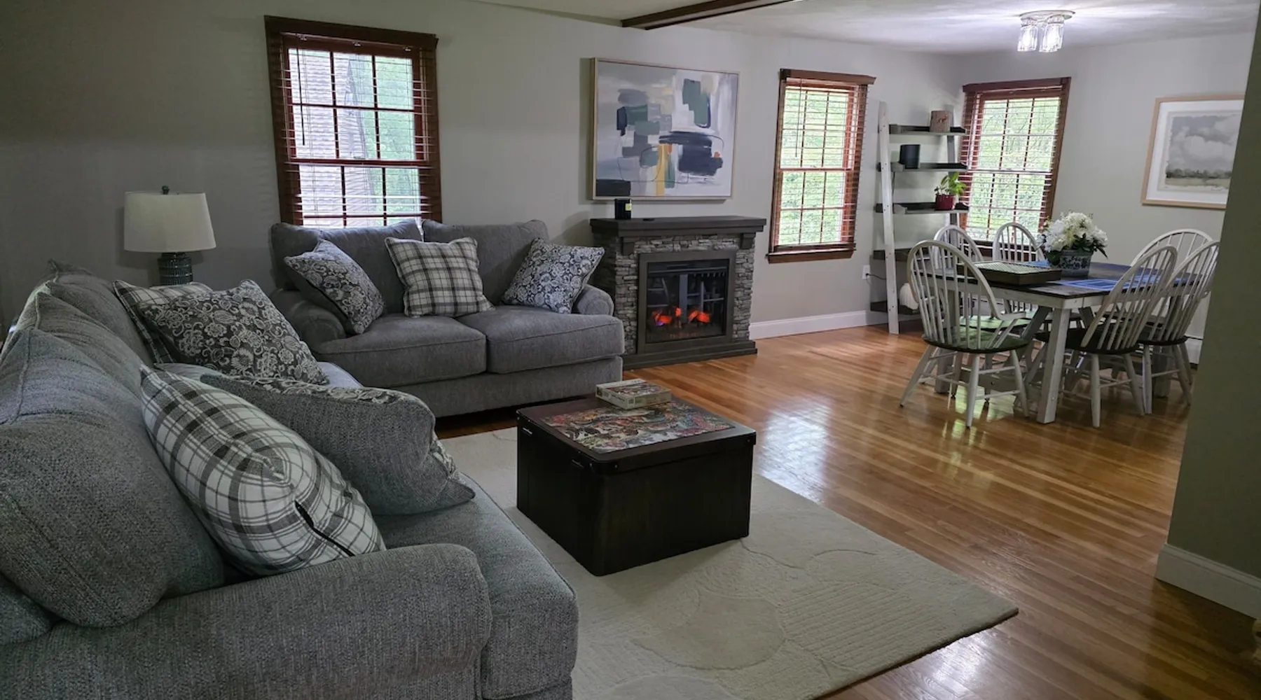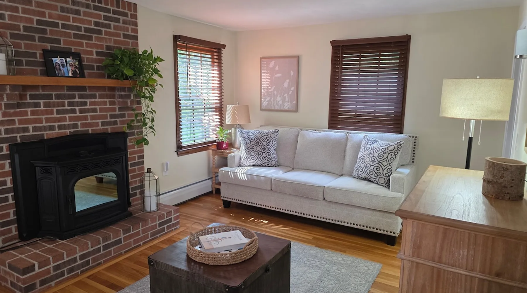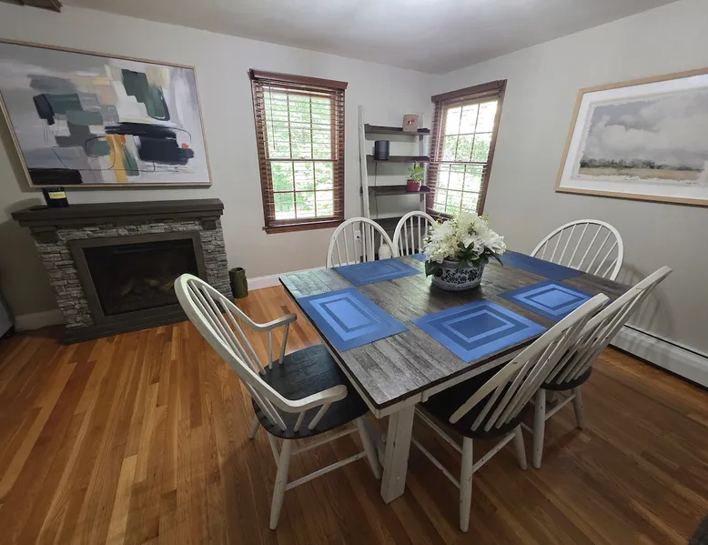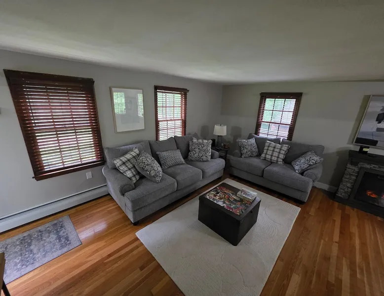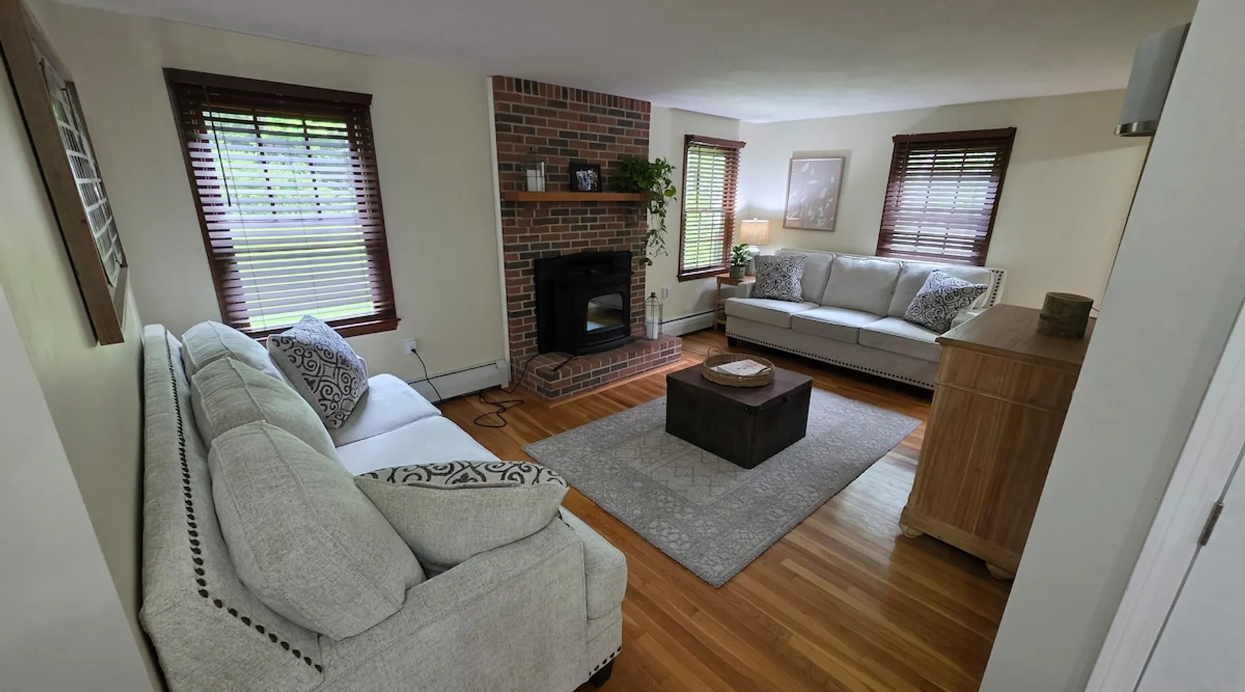Upscale 3BR home just minutes from Baboosic Lake in Merrimack, bordering Amherst. Remodeled in 2024 with modern finishes and thoughtful details. Features 2 king bedrooms, 1 queen bedroom, a living room, fireplace room, sunroom, fully equipped kitchen, laundry, 2 full baths, and a half bath. Set on a private lot with a large yard for relaxing or entertaining. A separate unit is on-site but not included in the rental, ensuring a quiet and exclusive stay. Perfect for a stylish and peaceful getaway. The space This stylish retreat features three bedrooms, a cozy fireplace room, a spacious living room, a bright sunroom, 2.5 bathrooms, and a fully equipped kitchen. Sleep comfortably with two king-size beds and one queen-size bed. Relax on six sofas and enjoy meals at two dining tables. With around 2,000 square feet of living space, there’s plenty of room to spread out and unwind! Guest access No garage access. There is a separate self contained unit on site which is not part of the Air BNB. Other things to note Kindly remove your shoes while inside to help us maintain a clean and comfortable environment. We welcome small pets under 40 lbs only. For everyone’s comfort, please do not allow pets on the furniture. Pets must be crated when left alone in the home. Please flush only toilet paper. The maximum occupancy is 6 guests, including infants and children of all ages. Please note: An additional fee of $100 per person, per night will apply for any guests deliberately exceeding the maximum occupancy of 6. Parties or gatherings with unregistered guests are strictly prohibited 🚫.