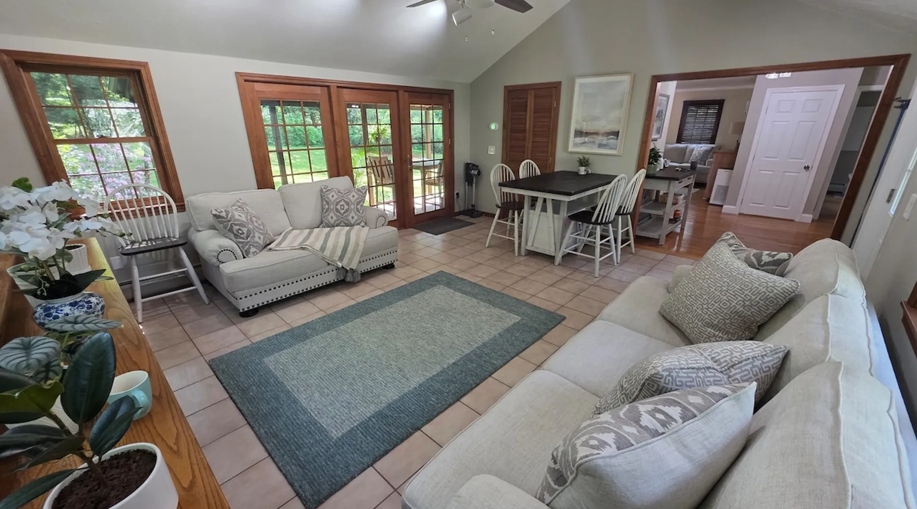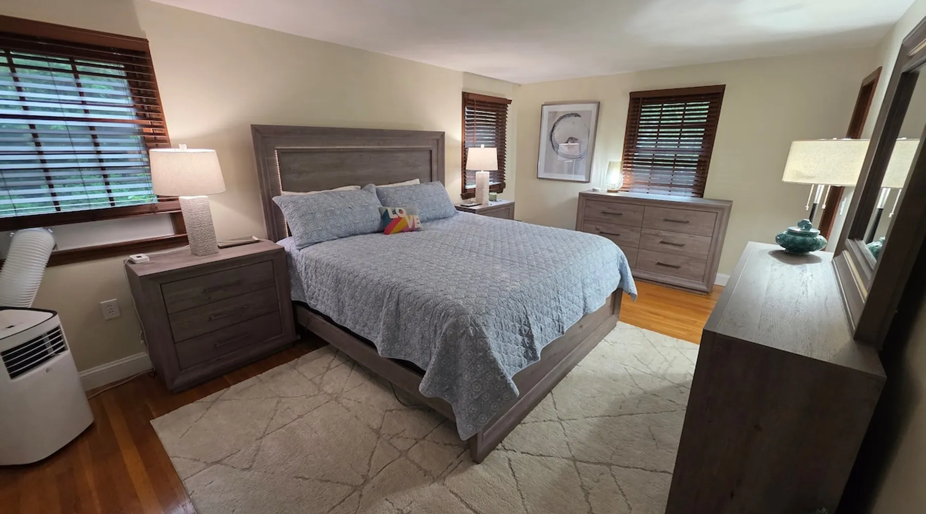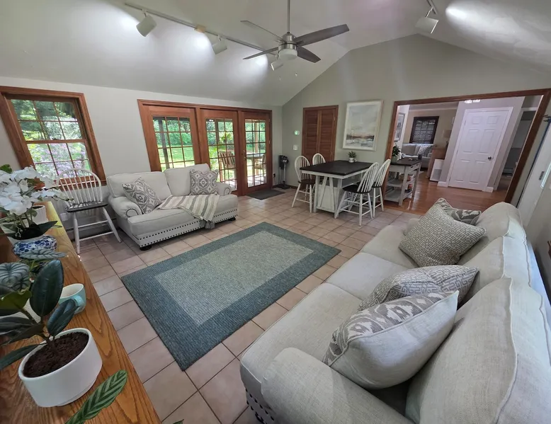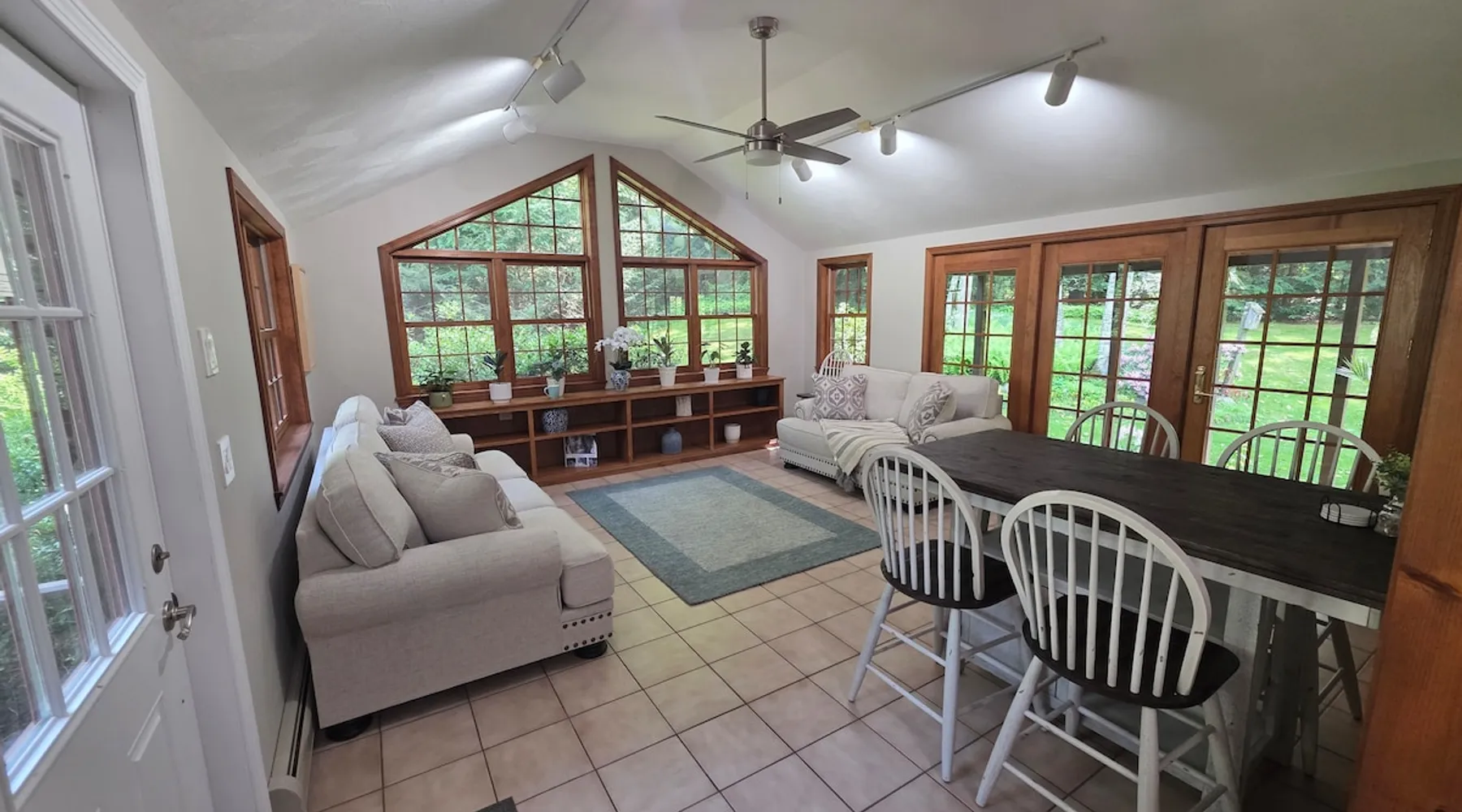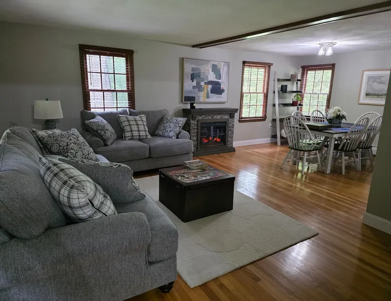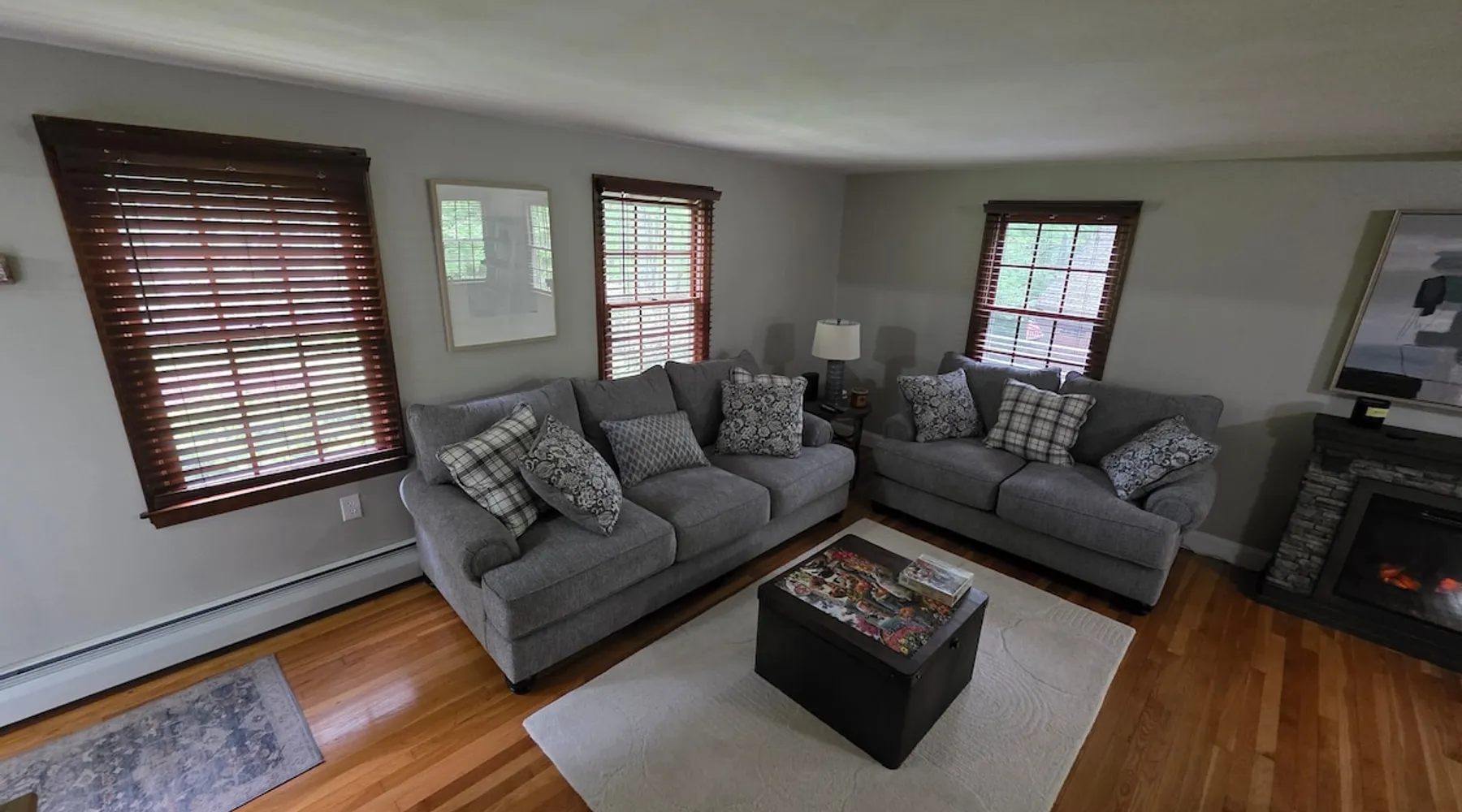 Upscale 3BR home just minutes from Baboosic Lake in Merrimack, bordering Amherst. Remodeled in 2024 with modern finishes and thoughtful details. Features 2 king bedrooms, 1 queen bedroom, a living room, fireplace room, sunroom, fully equipped kitchen, laundry, 2 full baths, and a half bath. Set on a private lot with a large yard for relaxing or entertaining. A separate unit is on-site but not included in the rental, ensuring a quiet and exclusive stay. Perfect for a stylish and peaceful getaway. The space This stylish retreat features three bedrooms, a cozy fireplace room, a spacious living room, a bright sunroom, 2.5 bathrooms, and a fully equipped kitchen. Sleep comfortably with two king-size beds and one queen-size bed. Relax on six sofas and enjoy meals at two dining tables. With around 2,000 square feet of living space, there’s plenty of room to spread out and unwind! Guest access No garage access. There is a separate self contained unit on site which is not part of the Air BNB. Other things to note Kindly remove your shoes while inside to help us maintain a clean and comfortable environment. We welcome small pets under 40 lbs only. For everyone’s comfort, please do not allow pets on the furniture. Pets must be crated when left alone in the home. Please flush only toilet paper. The maximum occupancy is 6 guests, including infants and children of all ages. Please note: An additional fee of $100 per person, per night will apply for any guests deliberately exceeding the maximum occupancy of 6. Parties or gatherings with unregistered guests are strictly prohibited 🚫.