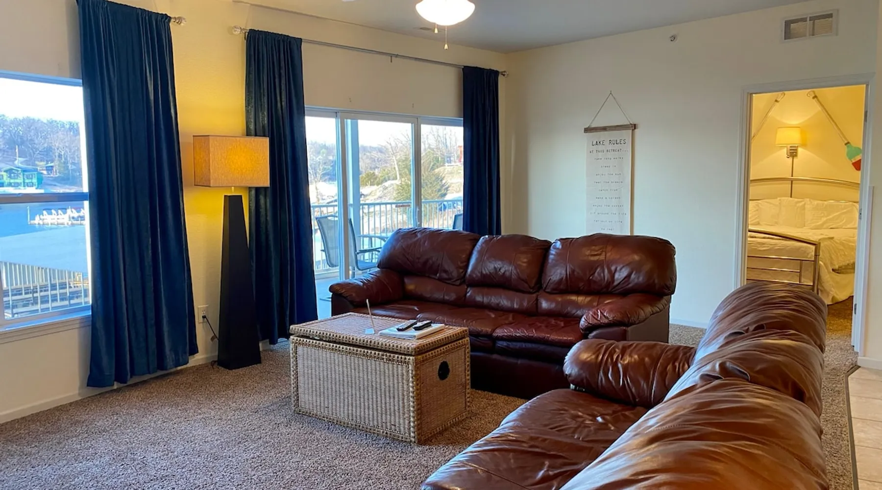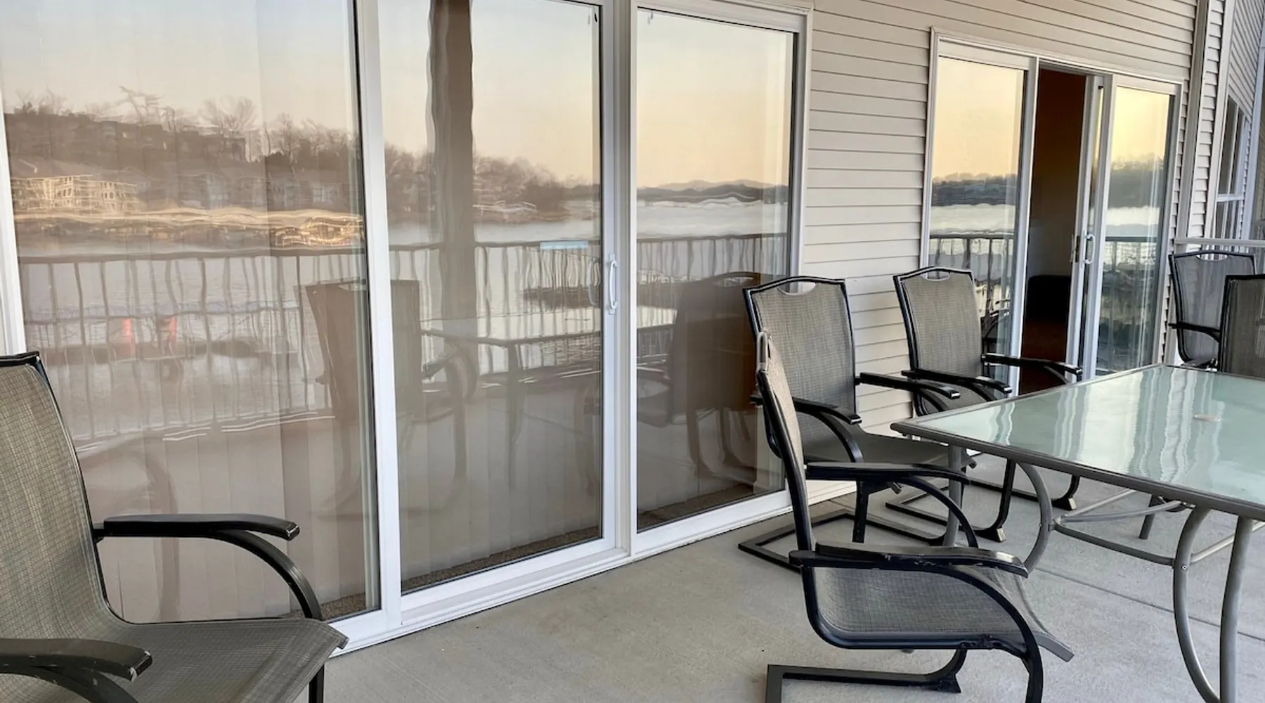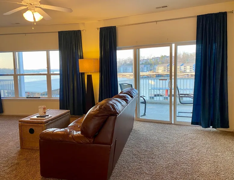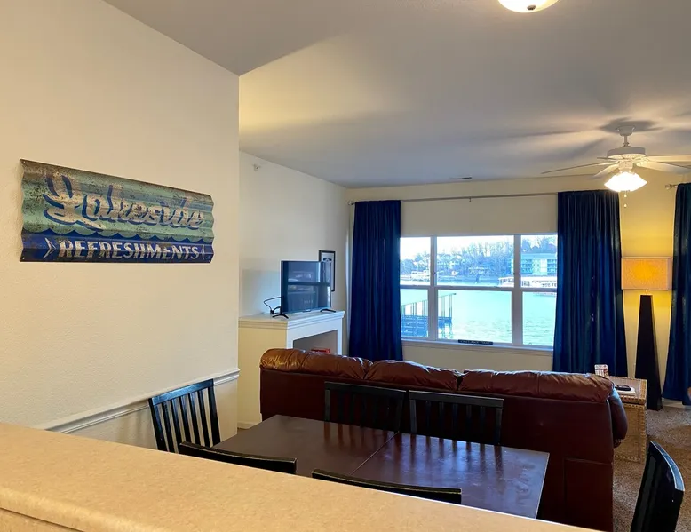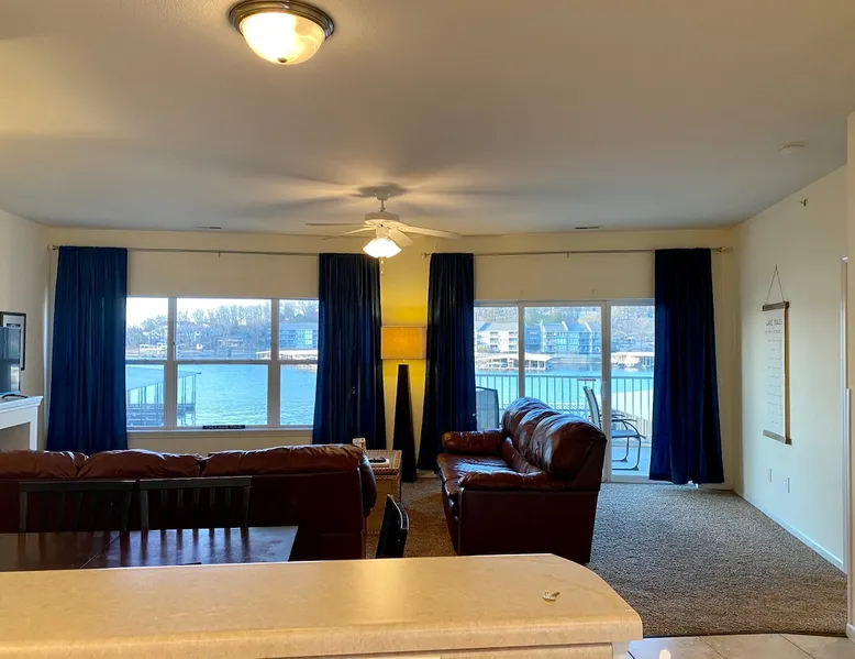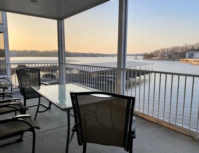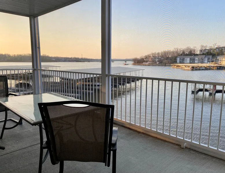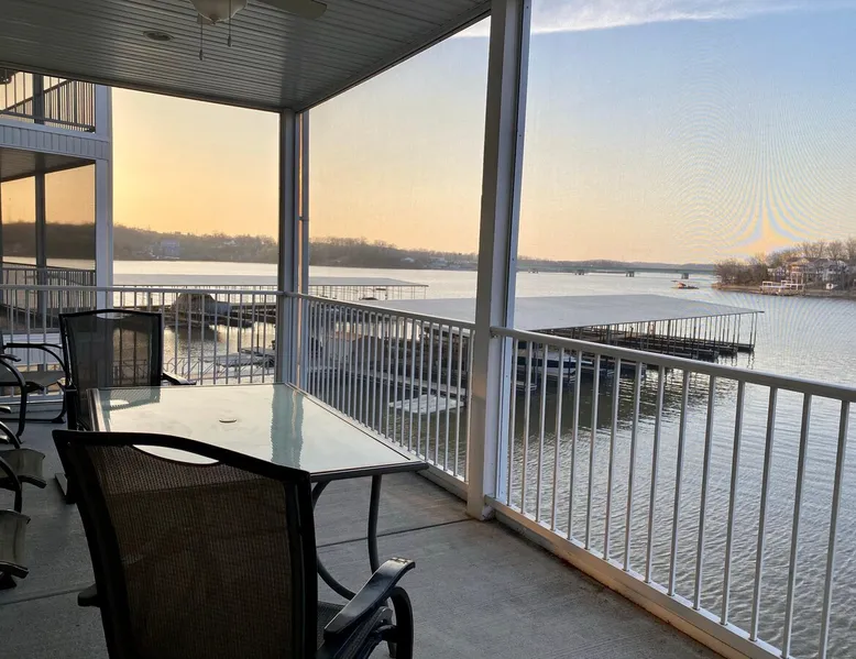 Enjoy this oversized, one bedroom, lakeside condo on the 19mm of Grand Glaise arm, with a screened in deck, 2 pools, a private boat ramp, fishing hut, and beach area, conveniently located near the grand glaize bridge. There are boat/jetski rentals within walking distance and you're 5 minutes from Dierbergs, Walmart, etc for groceries and supplies, and along with a whole host of lake side and on land restaurants and bars in Osage Beach and the 'old strip' just a 10 minute drive. The space 1 master bedroom and bathroom with a large closet and dresser and both couches have hide-a-beds in the main living area with additional linens, blankets, pillows, a full bathroom in the main living area and a screened in deck facing the lake. Another storage closet and laundry closet with a washer/dryer and supplies. This is a 2nd floor unit with stair access only. No animals allowed to comply with condo association rules for short term rentals. Guest access There is a keypad on the door. Host will send a code to use during your stay. This is a 2nd floor condo accessible by stairs only. Other things to note There are private boat slips and owner occupied units at this location as well.