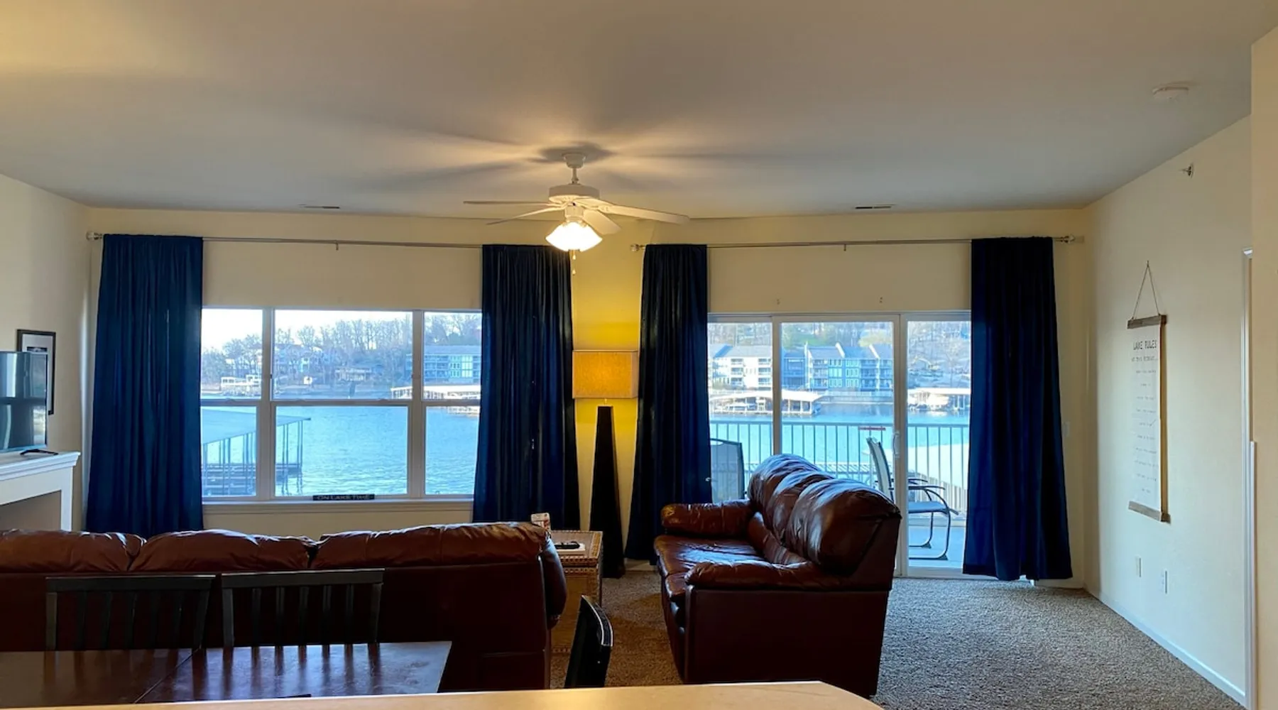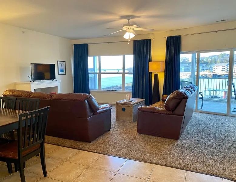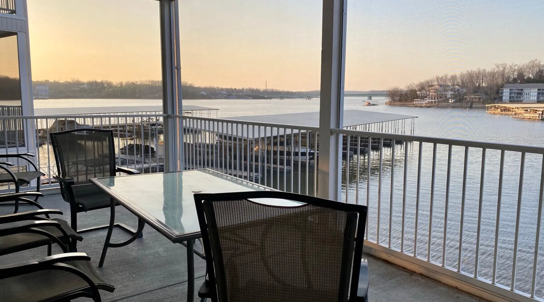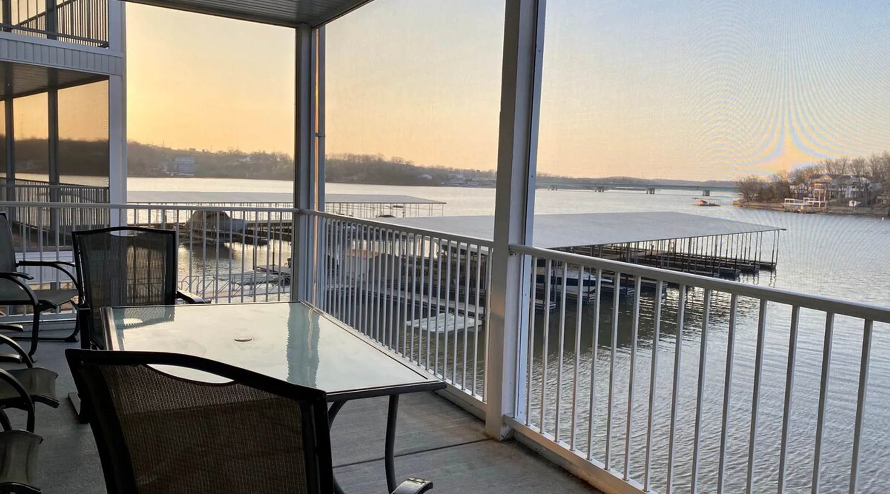 Enjoy this oversized, one bedroom, lakeside condo on the 19mm of Grand Glaise arm, with a screened in deck, 2 pools, a private boat ramp, fishing hut, and beach area, conveniently located near the grand glaize bridge. There are boat/jetski rentals within walking distance and you're 5 minutes from Dierbergs, Walmart, etc for groceries and supplies, and along with a whole host of lake side and on land restaurants and bars in Osage Beach and the 'old strip' just a 10 minute drive. The space 1 master bedroom and bathroom with a large closet and dresser and both couches have hide-a-beds in the main living area with additional linens, blankets, pillows, a full bathroom in the main living area and a screened in deck facing the lake. Another storage closet and laundry closet with a washer/dryer and supplies. This is a 2nd floor unit with stair access only. No animals allowed to comply with condo association rules for short term rentals. Guest access There is a keypad on the door. Host will send a code to use during your stay. This is a 2nd floor condo accessible by stairs only. Other things to note There are private boat slips and owner occupied units at this location as well.