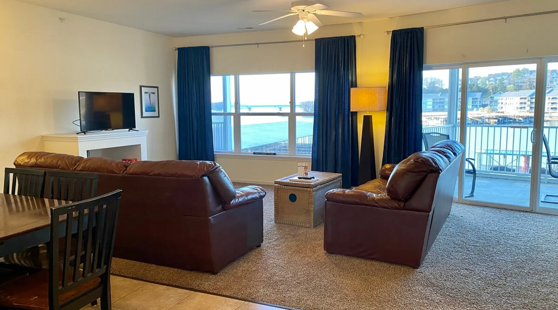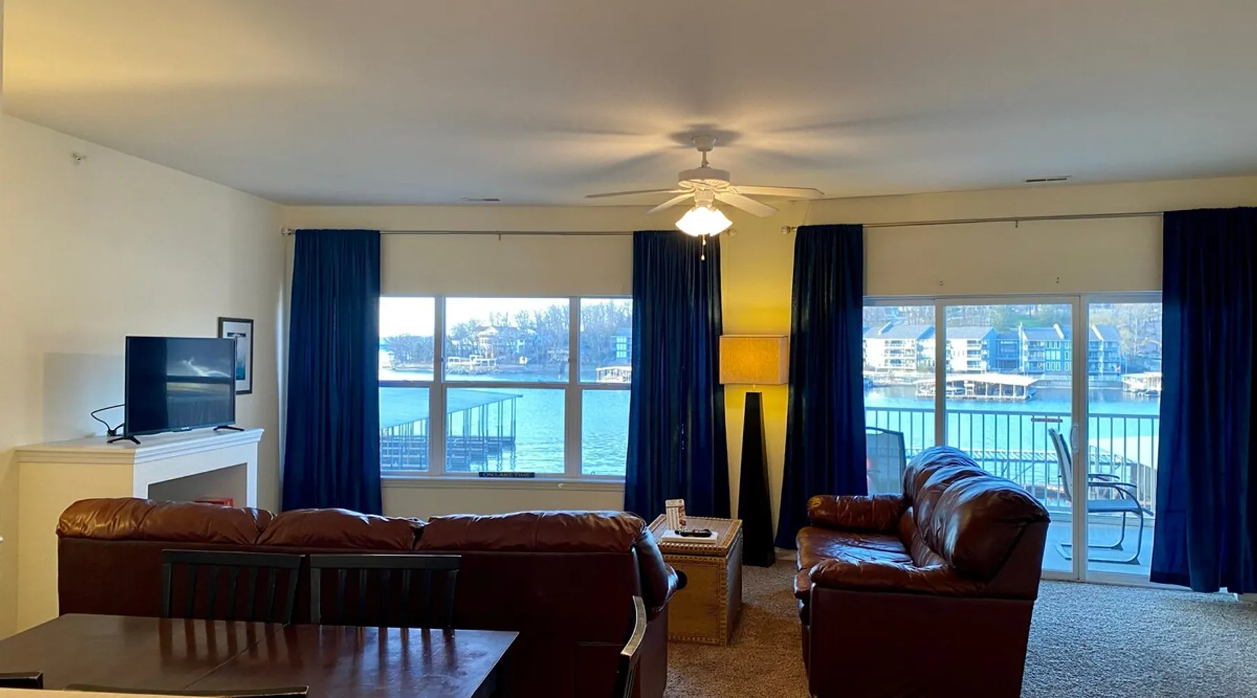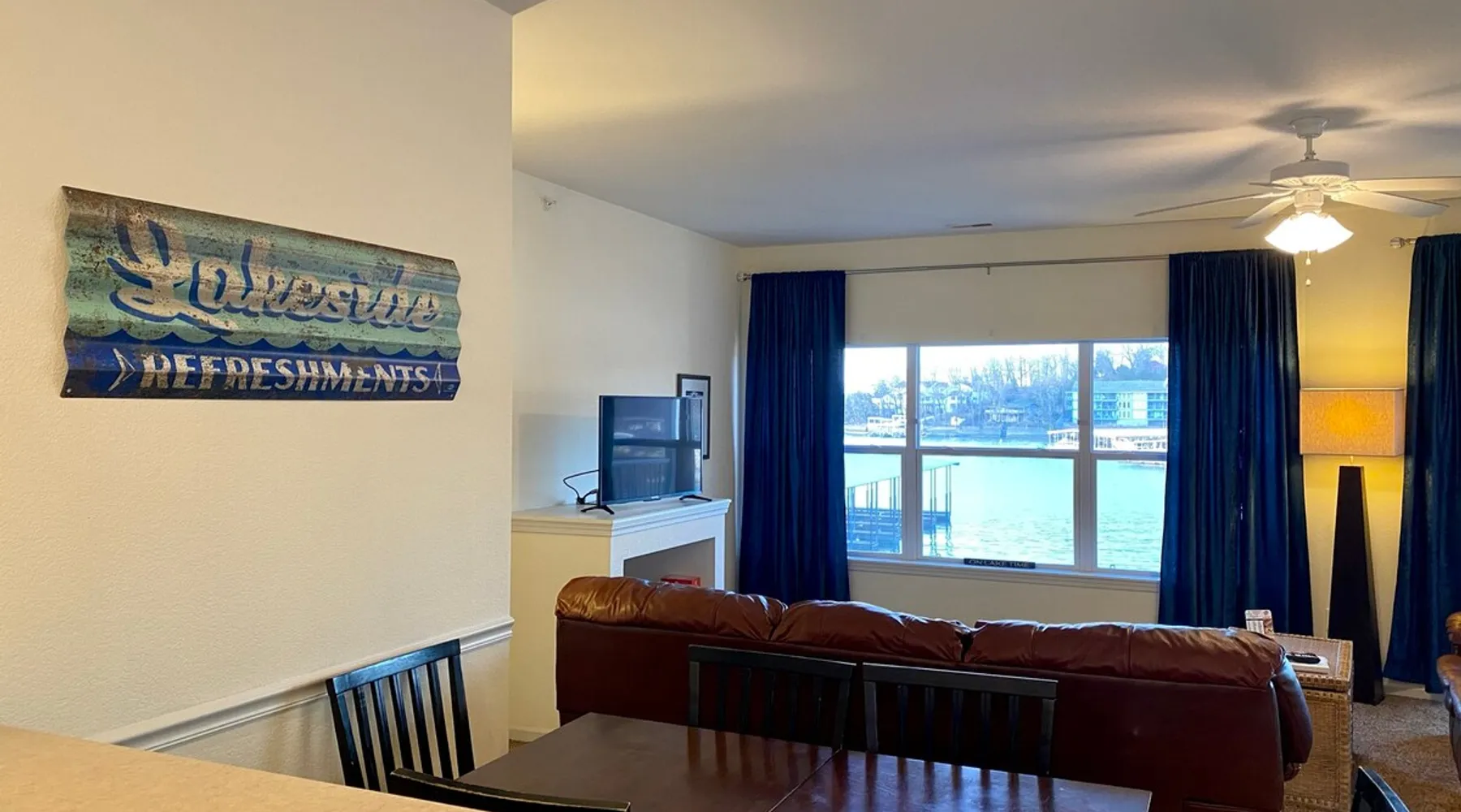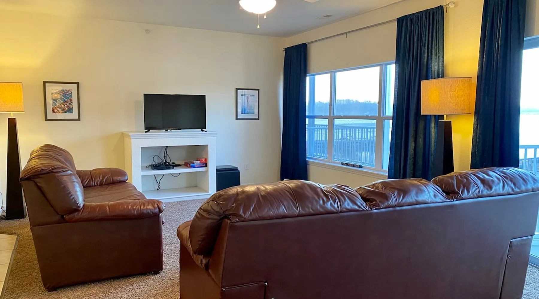 Enjoy this oversized, one bedroom, lakeside condo on the 19mm of Grand Glaise arm, with a screened in deck, 2 pools, a private boat ramp, fishing hut, and beach area, conveniently located near the grand glaize bridge. There are boat/jetski rentals within walking distance and you're 5 minutes from Dierbergs, Walmart, etc for groceries and supplies, and along with a whole host of lake side and on land restaurants and bars in Osage Beach and the 'old strip' just a 10 minute drive. The space 1 master bedroom and bathroom with a large closet and dresser and both couches have hide-a-beds in the main living area with additional linens, blankets, pillows, a full bathroom in the main living area and a screened in deck facing the lake. Another storage closet and laundry closet with a washer/dryer and supplies. This is a 2nd floor unit with stair access only. No animals allowed to comply with condo association rules for short term rentals. Guest access There is a keypad on the door. Host will send a code to use during your stay. This is a 2nd floor condo accessible by stairs only. Other things to note There are private boat slips and owner occupied units at this location as well.
