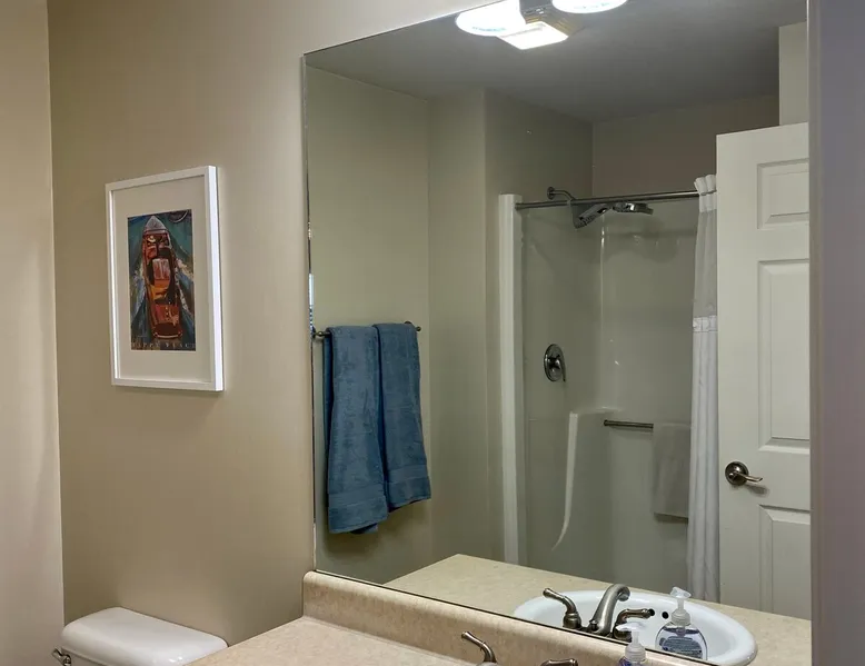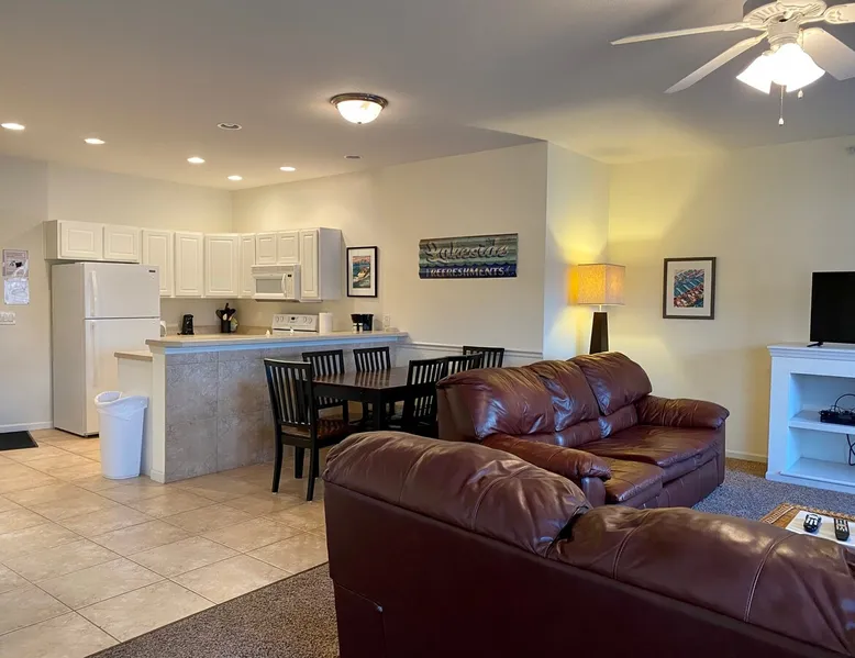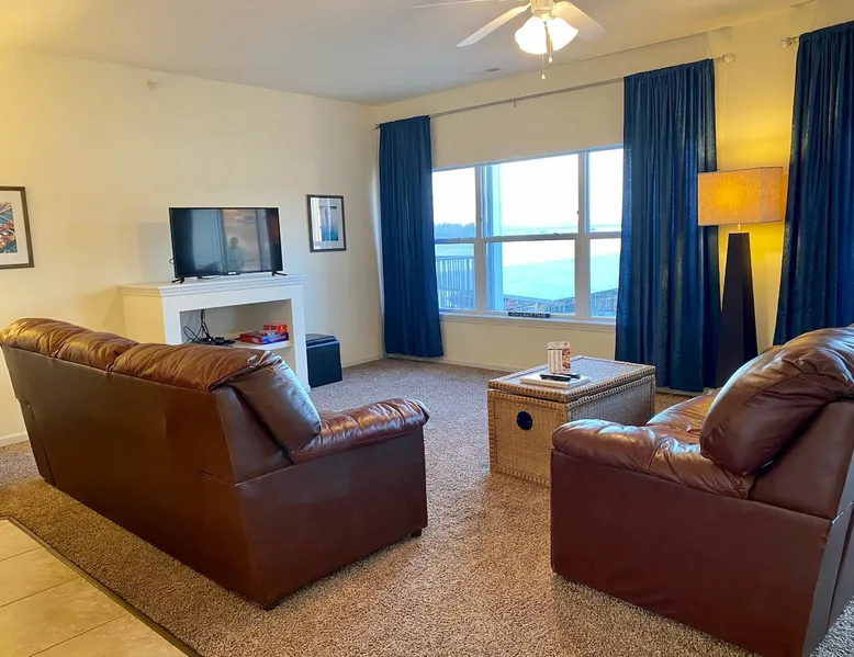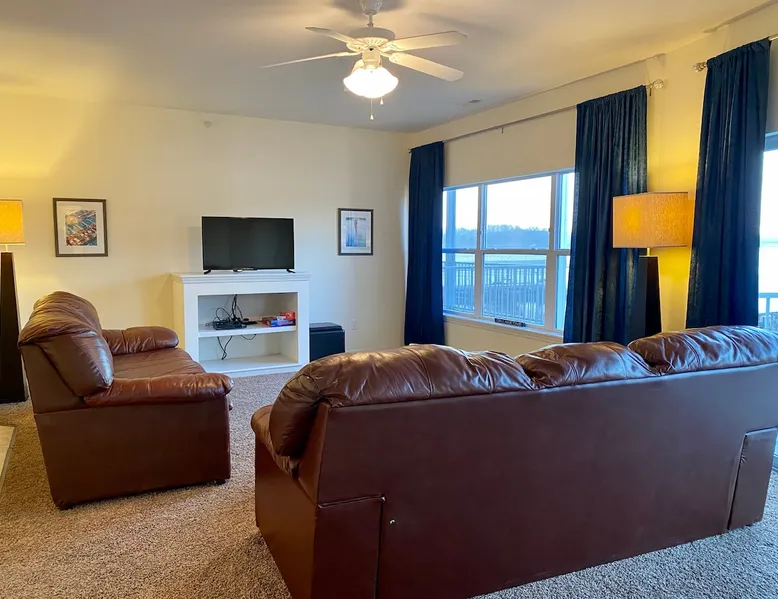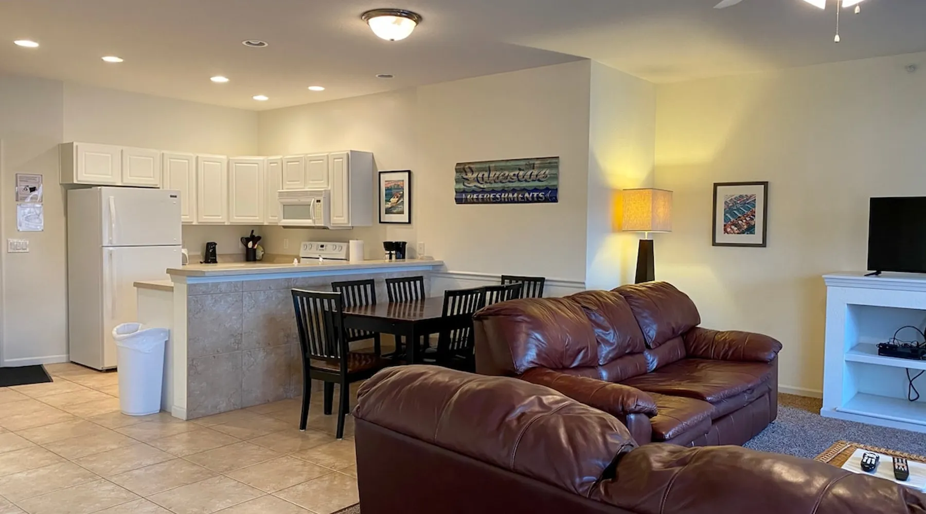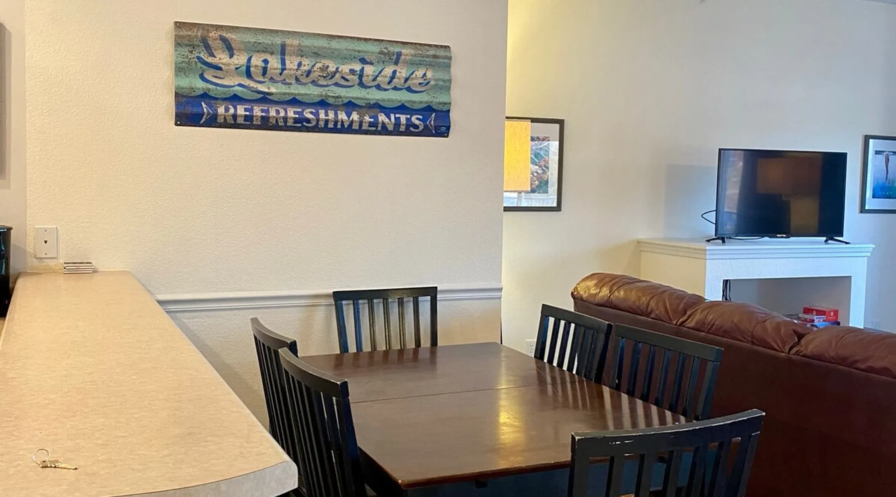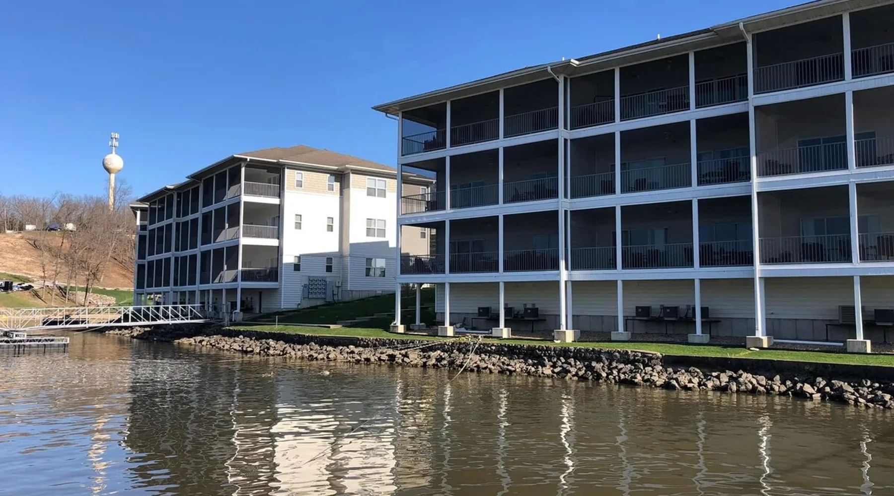 Enjoy this oversized, one bedroom, lakeside condo on the 19mm of Grand Glaise arm, with a screened in deck, 2 pools, a private boat ramp, fishing hut, and beach area, conveniently located near the grand glaize bridge. There are boat/jetski rentals within walking distance and you're 5 minutes from Dierbergs, Walmart, etc for groceries and supplies, and along with a whole host of lake side and on land restaurants and bars in Osage Beach and the 'old strip' just a 10 minute drive. The space 1 master bedroom and bathroom with a large closet and dresser and both couches have hide-a-beds in the main living area with additional linens, blankets, pillows, a full bathroom in the main living area and a screened in deck facing the lake. Another storage closet and laundry closet with a washer/dryer and supplies. This is a 2nd floor unit with stair access only. No animals allowed to comply with condo association rules for short term rentals. Guest access There is a keypad on the door. Host will send a code to use during your stay. This is a 2nd floor condo accessible by stairs only. Other things to note There are private boat slips and owner occupied units at this location as well.