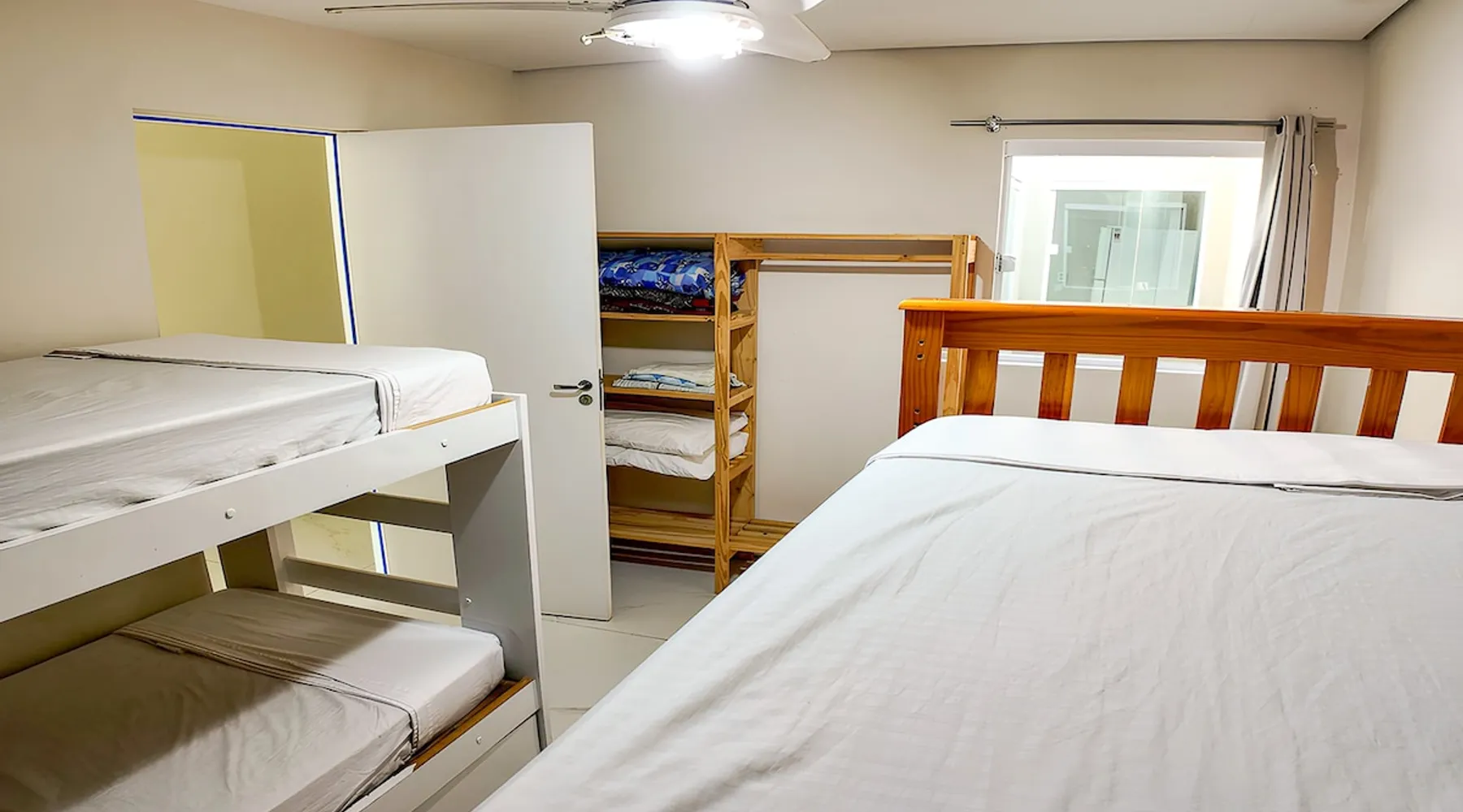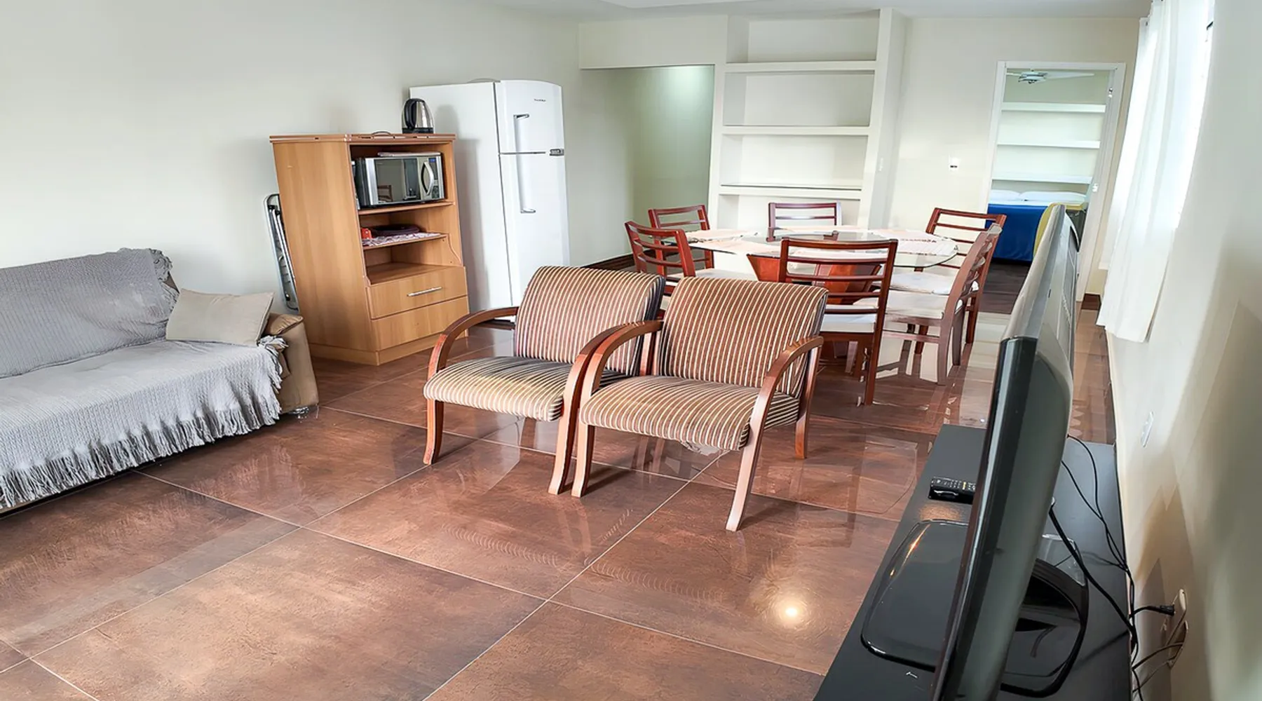 Large and comfortable apartment near the airport and the beaches – ideal for families and groups. 2 bedroom apartment, air conditioning, Wifi, Refrigerator, microwave and parking on the condominium street. Sleeps up to 12 people using a sofa bed and mattress. Ideal for families and groups, in a quiet neighborhood with easy access to Florianópolis Airport, bakeries, market and several beaches in the South of the Island. Forget your worries in this quiet, spacious place. The space 🏠 About the property • Apartment with independent entrance • Large built area, ideal for families or groups • Airy and functional environments • Safe and quiet neighborhood, with good neighbourhood 🛏️ Home • Rooms with comfortable beds, air-conditioning and ceiling fan • Total capacity: up to 12 guests with beds, sofa bed and mattresses • Bed linens available • Towels must be booked 24 hours in advance and due to various problems I charge R$10.00 per stay Snack 🍳 Area • Apartment with refrigerator, microwave and table for quick meals and basic utensils 📶 Connectivity & Entertainment • High speed wifi for work or leisure ❄️ Comfort • Air-conditioning in rooms • Ceiling fans available • Clean, illuminated and well maintained environments 🚗 Parking • Several free seats on Condominium street. Super secure electronic and local surveillance 📍 Location • 6 mins from Florianópolis Airport (FLN) • 20min from the center of Florianopolis • Close to bakery, wholesale market and pharmacy • Quick access to the beaches of Campeche, Armação, Morro das Pedras 👨👩👧👦 Good for • Families with children • Groups of friends • Air-connected travel • Long or short economy stays Guest access Guest 🔑 access Guests have exclusive access to the entire apartment, including: • 🛏️ Bedrooms • 🛋️ Living area • 🍽️ Dining Room Shared areas with other guests of the land: • 🧺 Laundry • Land entrance🚪 gate Although these areas are shared, access to your home is independent and you will have complete privacy indoors. Other things to note 📌 Important information • 🧺 Laundry and entrance gate are shared with other guests on the premises. • 🛏️ The apartment accommodates up to 12 people, including sofa bed and mattresses. • 🧽 Cleaning at the end of the stay is included, but we ask that the property be left in a reasonable condition. • 🔇 Silence from 10 p.m. onward, out of respect for the other residents of the location. • 🐾 Pets are accepted upon request – A daily fee will be charged and the amount will depend on the type of PET. • In-person or self🔐 check-in with instructions sent after booking confirmation. • 🚫 Parties or events only with prior authorization and after discussing the event details. • 🕙 Check-in from 1 p.m. | Check-out until 9 a.m. Check-in and check-out are flexible depending on the arrival and departure of guests. • Air-conditioning and to be used, but only if you have a guest on site. It is strictly forbidden to turn on the air-conditioning when no one is in the place. This procedure is subject to a fine if it occurs.