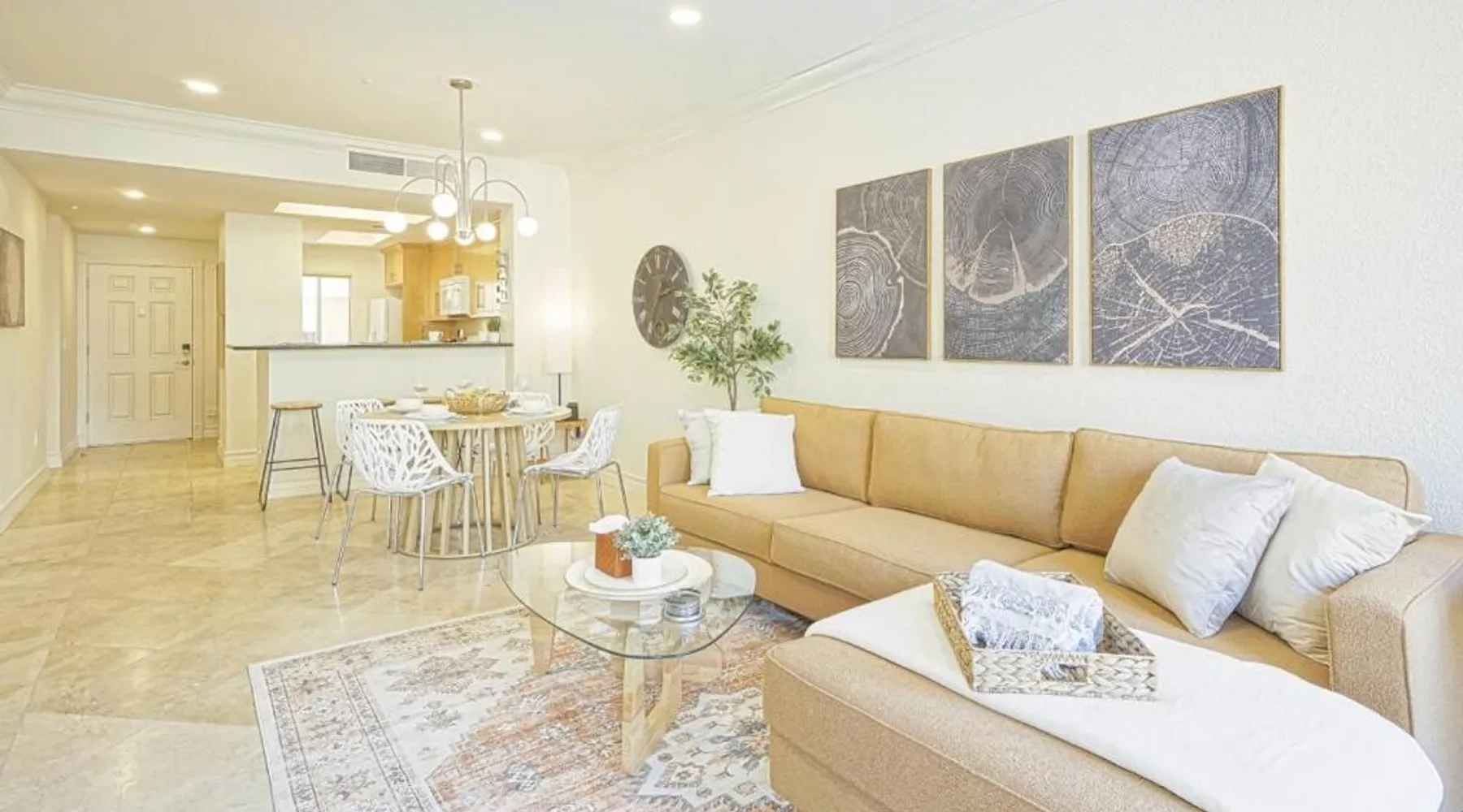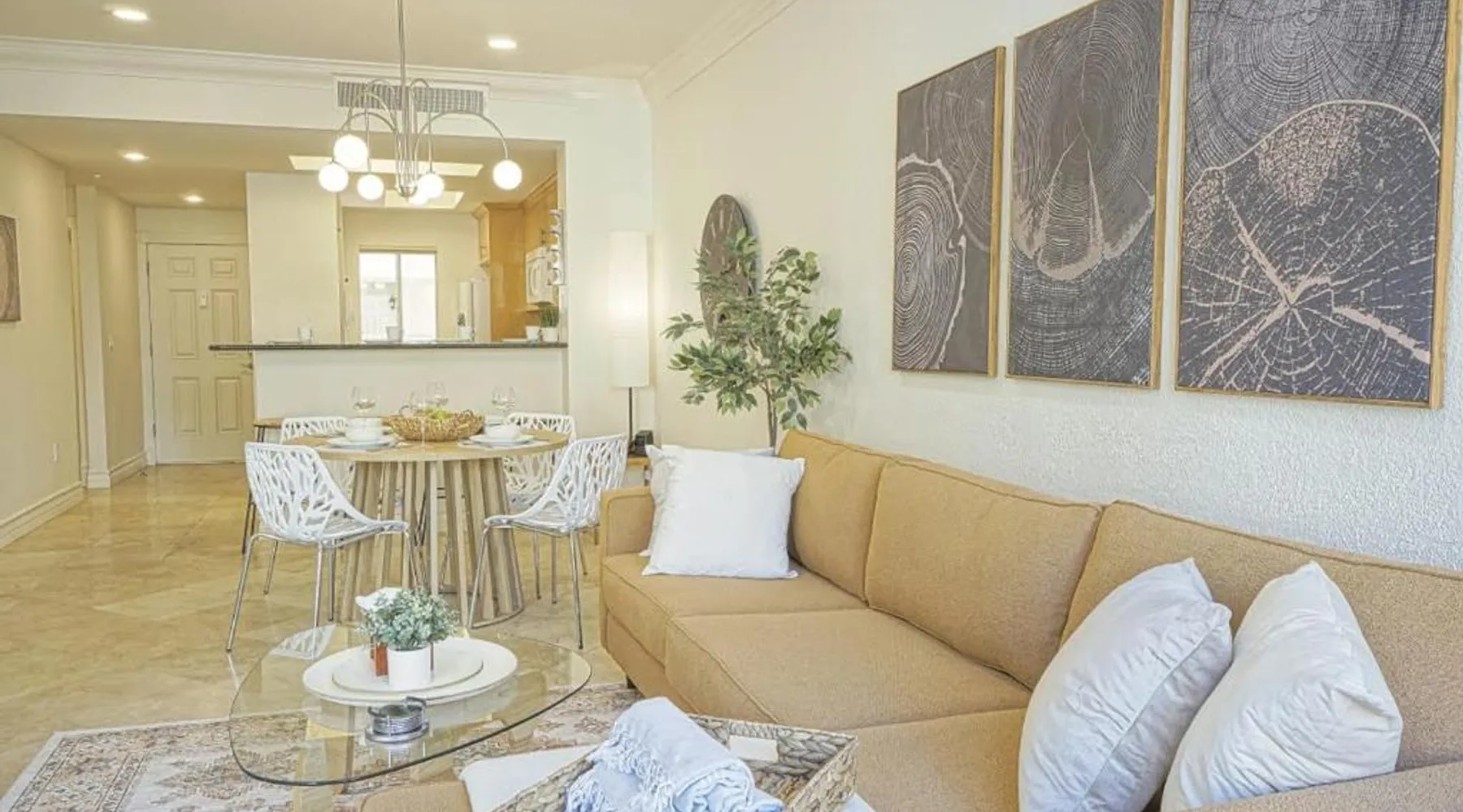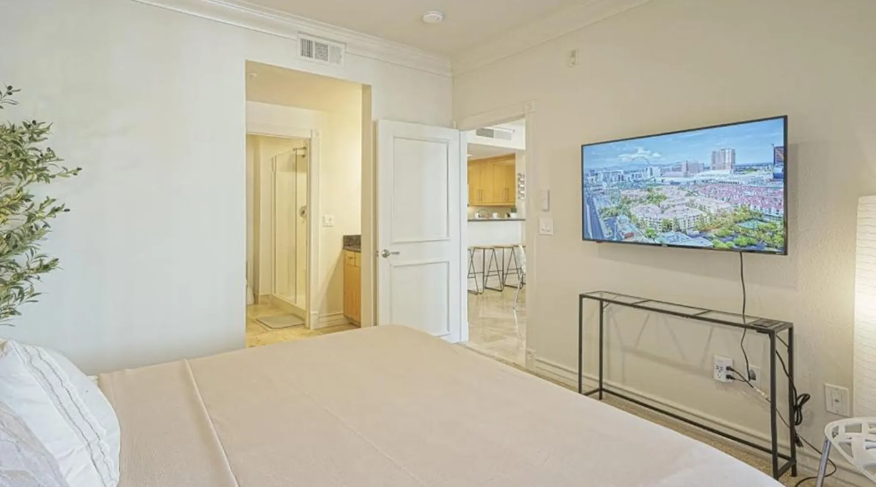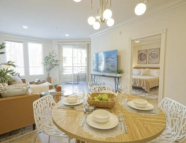 Spacious Accommodations: Dwell Descans - Restful Haven Steps to Vegas Strip in Las Vegas offers a spacious apartment with two bedrooms and two bathrooms. The living room features a sofa and TV, ensuring comfort for all guests. Wellness and Leisure: Guests can enjoy spa facilities, a sauna, and a fitness center. The property includes a sun terrace, tennis court, and a year-round outdoor swimming pool. Free WiFi is available throughout the apartment. Convenient Location: Located 1.9 mi from Harry Reid International Airport, the apartment is a short walk from The Sphere Vegas (14 minutes) and Bellagio Fountains (17 minutes). Nearby attractions include Colosseum At Caesars Palace (1.2 mi) and The Shops At Crystals (1.2 mi). This apartment's standout feature is the private pool. Featuring a private entrance, this air-conditioned apartment consists of 1 living room, 2 separate bedrooms and 2 bathrooms with a walk-in shower and a bath. The apartment's kitchen is available for cooking and storing food. A seating area with a flat-screen TV, a washing machine and a balcony are provided in this spacious apartment. The unit offers 2 beds.