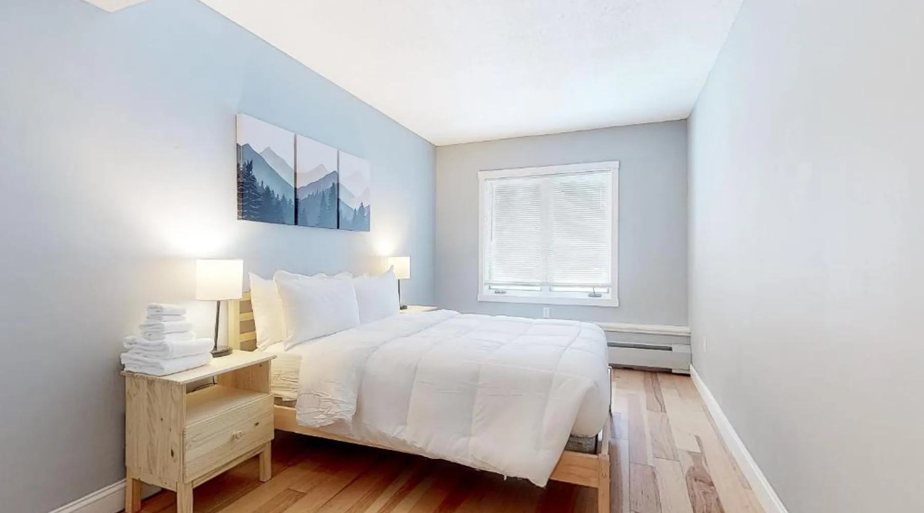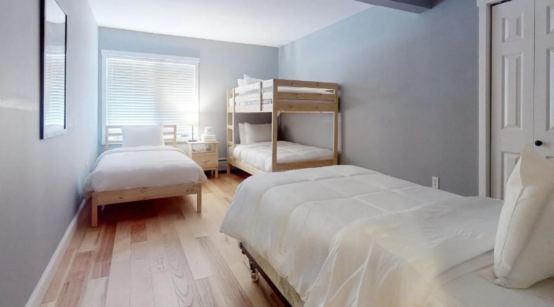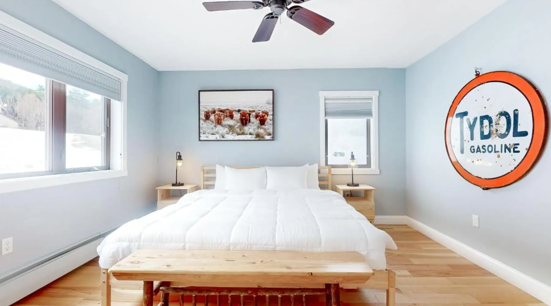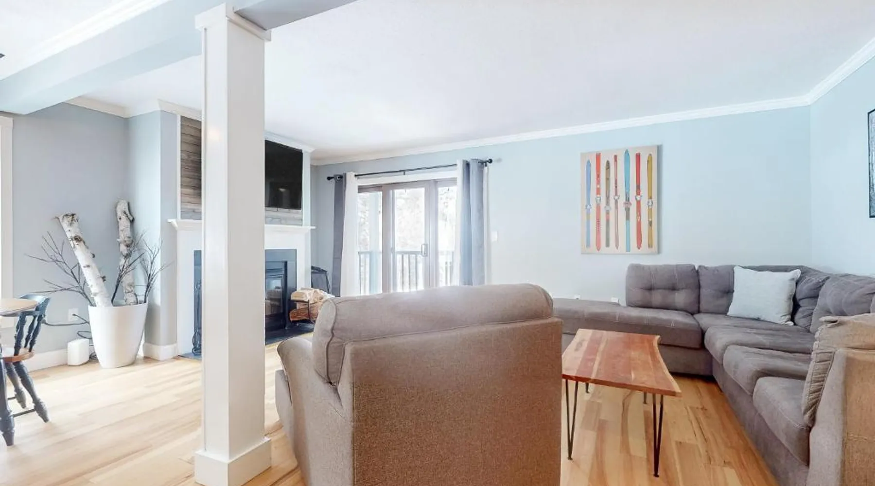 Spacious Accommodations: Ascutney Retreat in Brownsville offers a spacious apartment with three bedrooms and two bathrooms. The living room features a dining area and a comfortable seating space. Modern Amenities: Guests enjoy a fully equipped kitchen with a coffee machine, dishwasher, and microwave. The apartment includes a washing machine, streaming services, and free toiletries. Convenient Facilities: The property provides ski-to-door access and a restaurant. Additional amenities include a work desk, dining table, and a private entrance. Local Attractions: Mount Ascutney is 8.1 mi away, Quechee Gorge 11 mi, and Dartmouth College 25 mi from the apartment. Lebanon Municipal Airport is 19 mi distant. This spacious apartment comes with 1 living room, 3 separate bedrooms and 2 bathrooms with a hairdryer and free toiletries. In the fully equipped kitchen, guests will find a stovetop, a refrigerator, a dishwasher and kitchenware. The apartment features a flat-screen TV with streaming services, a washing machine, a private entrance, a tea and coffee maker as well as mountain views. The unit has 7 beds.