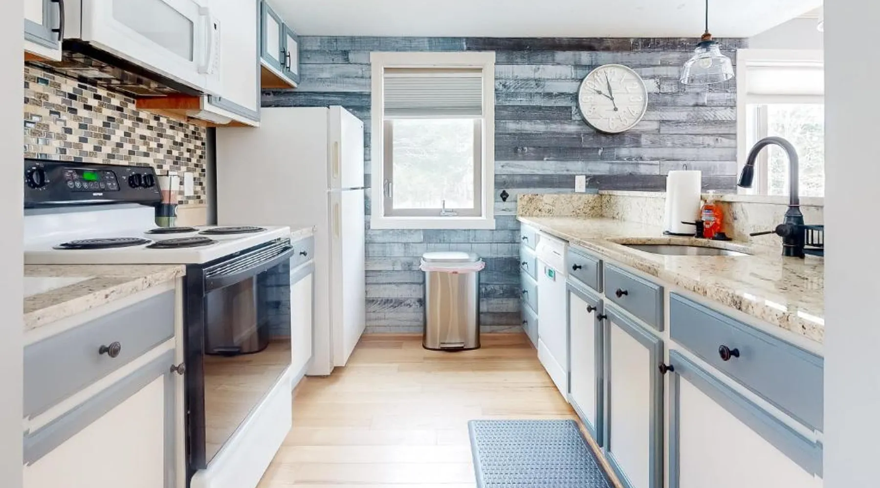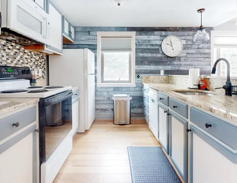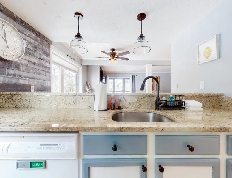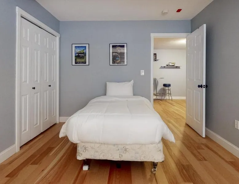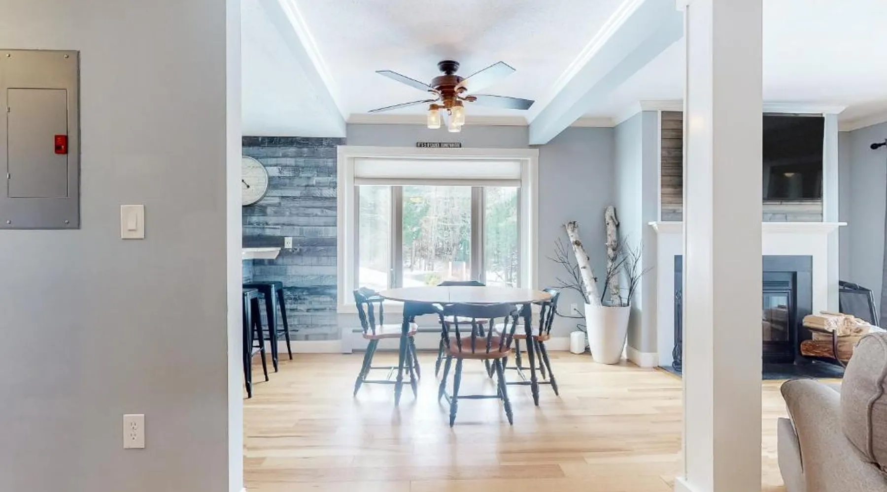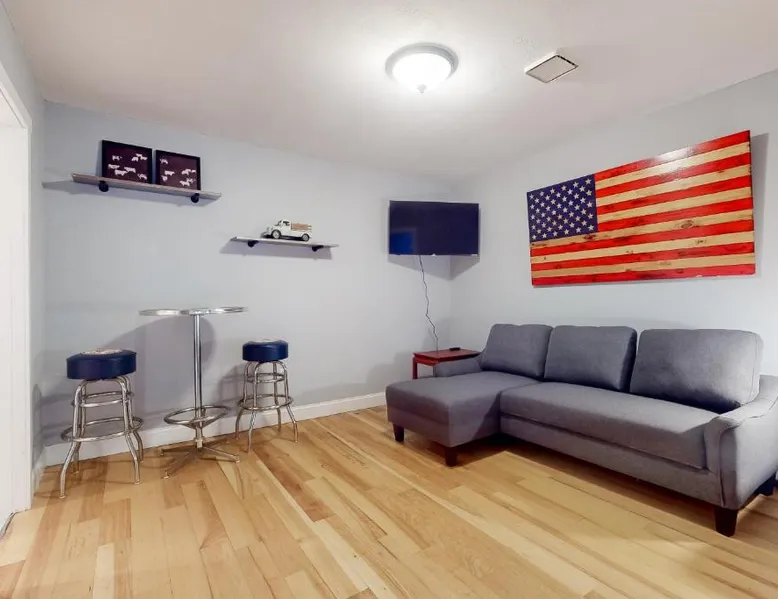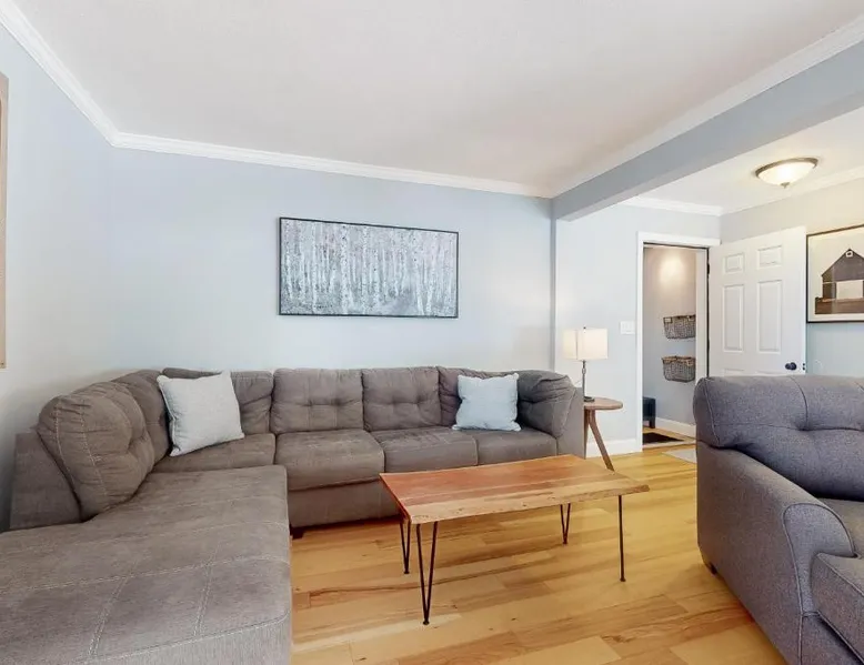 Spacious Accommodations: Ascutney Retreat in Brownsville offers a spacious apartment with three bedrooms and two bathrooms. The living room features a dining area and a comfortable seating space. Modern Amenities: Guests enjoy a fully equipped kitchen with a coffee machine, dishwasher, and microwave. The apartment includes a washing machine, streaming services, and free toiletries. Convenient Facilities: The property provides ski-to-door access and a restaurant. Additional amenities include a work desk, dining table, and a private entrance. Local Attractions: Mount Ascutney is 8.1 mi away, Quechee Gorge 11 mi, and Dartmouth College 25 mi from the apartment. Lebanon Municipal Airport is 19 mi distant. This spacious apartment comes with 1 living room, 3 separate bedrooms and 2 bathrooms with a hairdryer and free toiletries. In the fully equipped kitchen, guests will find a stovetop, a refrigerator, a dishwasher and kitchenware. The apartment features a flat-screen TV with streaming services, a washing machine, a private entrance, a tea and coffee maker as well as mountain views. The unit has 7 beds.