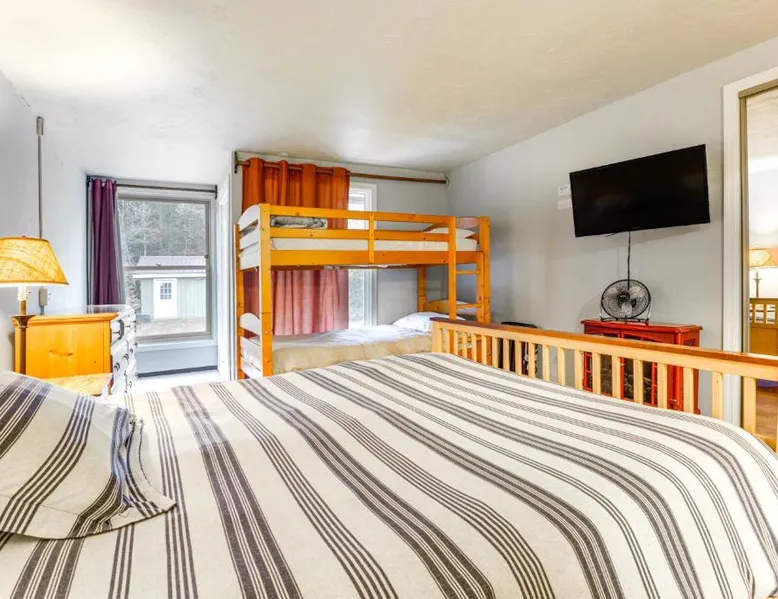 Comfortable Accommodations: West Dover Townhome Hot Tub in West Dover offers a holiday home with two bedrooms and three bathrooms. The living room features a fireplace and a dining area, providing a cozy atmosphere. Modern Amenities: Guests enjoy free WiFi, a fully equipped kitchen with a coffee machine, dishwasher, and microwave. Additional amenities include a washing machine, patio, and outdoor dining area. Convenient Facilities: The property provides a hot tub, 24-hour front desk, and shuttle service. Paid on-site parking is available, and Rutland State Airport is 57 mi away. Nearby attractions include Mount Snow Resort (3 mi) and Molly Stark State Park (11 mi). This holiday home's special features are the hot tub and the fireplace. Featuring a private entrance, this holiday home consists of 1 living room, 2 separate bedrooms and 3 bathrooms with a bath and a shower. Guests will find a stovetop, a refrigerator, a dishwasher and kitchenware in the kitchen. The holiday home also offers a barbecue. This holiday home features a washing machine, a coffee machine, a flat-screen TV with cable channels and a patio. The unit offers 6 beds.