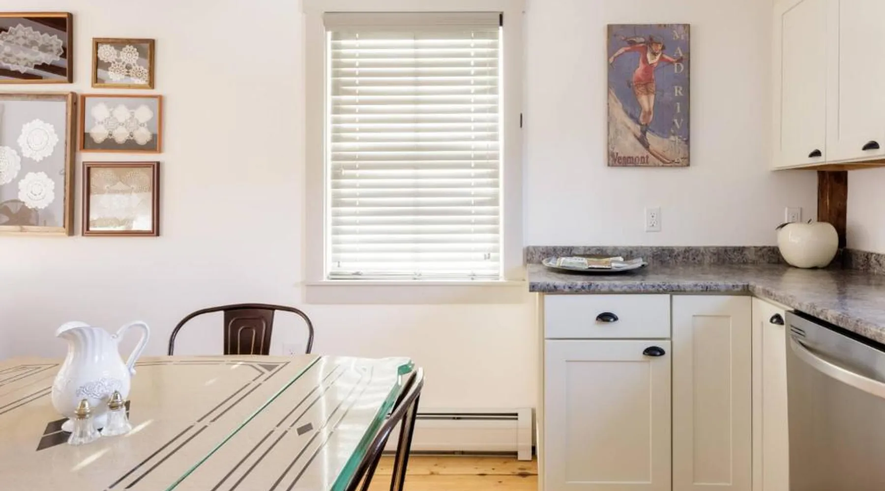 Historic Setting: 1830 Enchanting, Light-Filled Farmhouse Apartment in Irasville is housed in a historic building. The property features spacious interiors with parquet floors and a private entrance. Modern Amenities: Guests enjoy free WiFi, air-conditioning, and streaming services. The apartment includes a fully equipped kitchen with a dishwasher, microwave, and washing machine. Additional amenities include a games room, barbecue, and mountain views. Outdoor Spaces: A beautiful garden provides a relaxing retreat. The property offers free on-site private parking and a private dining area. Local Attractions: Located 39 mi from Burlington International Airport, the apartment is near Mad River (2.4 mi), Green Mountain National Golf Course (21 mi), and an ice-skating rink. Boasting a private entrance, this air-conditioned apartment includes 1 living room, 2 separate bedrooms and 1 bathroom with a bath and a shower. Guests will find a stovetop, a refrigerator, a dishwasher and kitchenware in the well-equipped kitchen. The apartment also features a barbecue. The spacious apartment offers a flat-screen TV with streaming services, a washing machine, a tea and coffee maker, a dining area as well as mountain views. The unit has 2 beds.