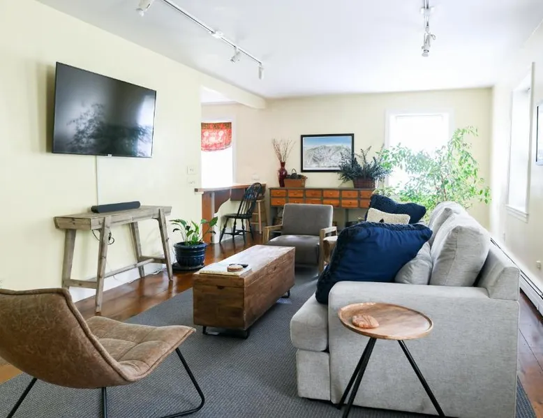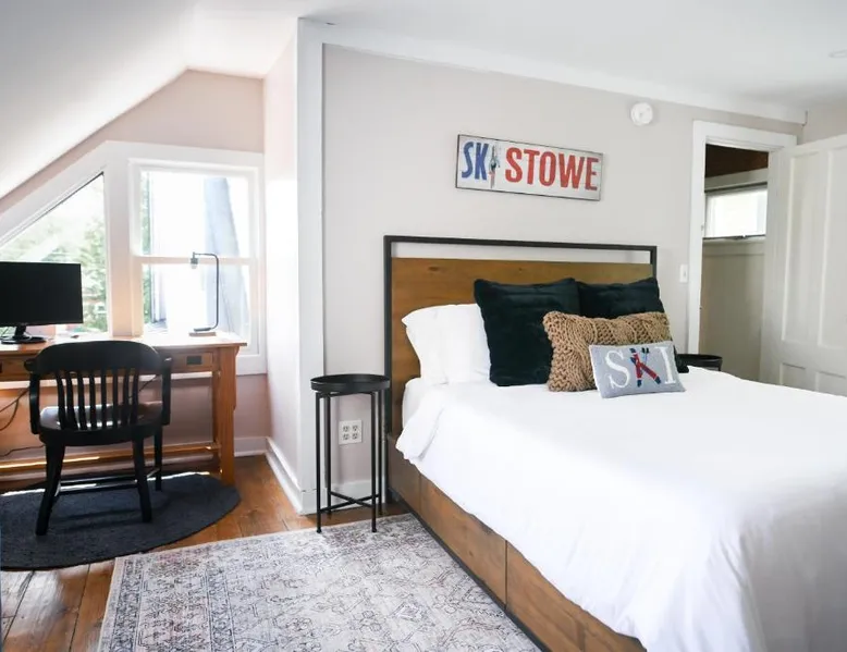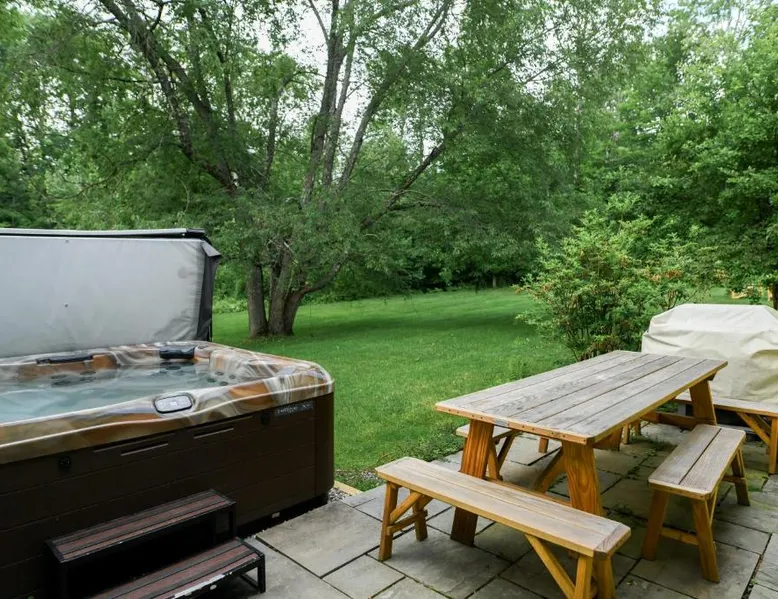 Spacious Accommodations: 1820 House in Stowe offers a spacious villa with four bedrooms and three bathrooms. The property features a private entrance, parquet floors, and a fully equipped kitchen. Outdoor Amenities: Guests can enjoy a garden, terrace, and hot tub. The terrace provides a relaxing space with garden views, while the hot tub offers a perfect spot for unwinding. Modern Comforts: The villa includes air-conditioning, free WiFi, streaming services, and a washing machine. Additional amenities include a fireplace, barbecue, and outdoor dining area. Convenient Location: Located 36 mi from Burlington International Airport, the property is close to Mount Mansfield (3 mi), Von Trapp Family Lodge (3.7 mi), and Stowe Golf Course (2.2 mi). The hot tub and fireplace are the standout features of this villa. Guests will find a stovetop, a refrigerator, a dishwasher and an oven in the well-equipped kitchen. The villa also offers a barbecue. The spacious air-conditioned villa provides a flat-screen TV with streaming services, a washing machine, a private entrance, a tea and coffee maker as well as garden views. The unit offers 6 beds.
