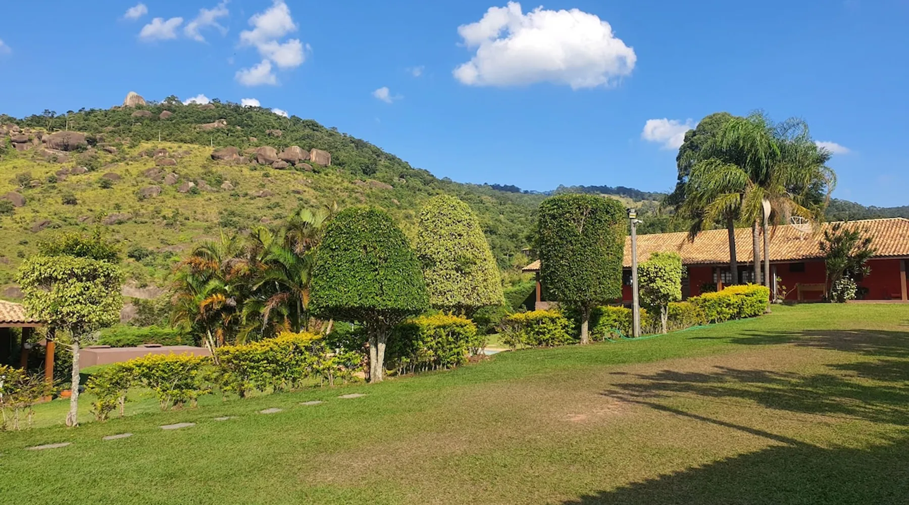 Spacious house with a balcony and an excellent view of Pedra Grande in the city of Atibaia. Unique location in a region close to the Atibaia hang gliding landing site. Easy access and close to one of the main avenues of the city (Lucas Nogueira Garces). Super quiet location. Upscale region. The space House with 3 bedrooms, 2 en-suites and 1 social bathroom. Large living room with fireplace, dining table. American-style kitchen next to the living room with a counter. Very comfortable space. Leisure area with swimming pool, barbecue and pizza oven. It has 1 bathroom also in the outdoor area next to the barbecue area. Large lawn area. The property is very well located at the end of Av. Santana, near the free flight landing of the city of Atibaia and Pedrinha, which has an incredible view of the lateral Pedra Grande and the city of Atibaia.