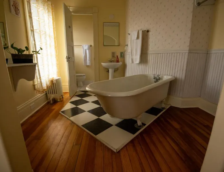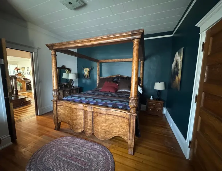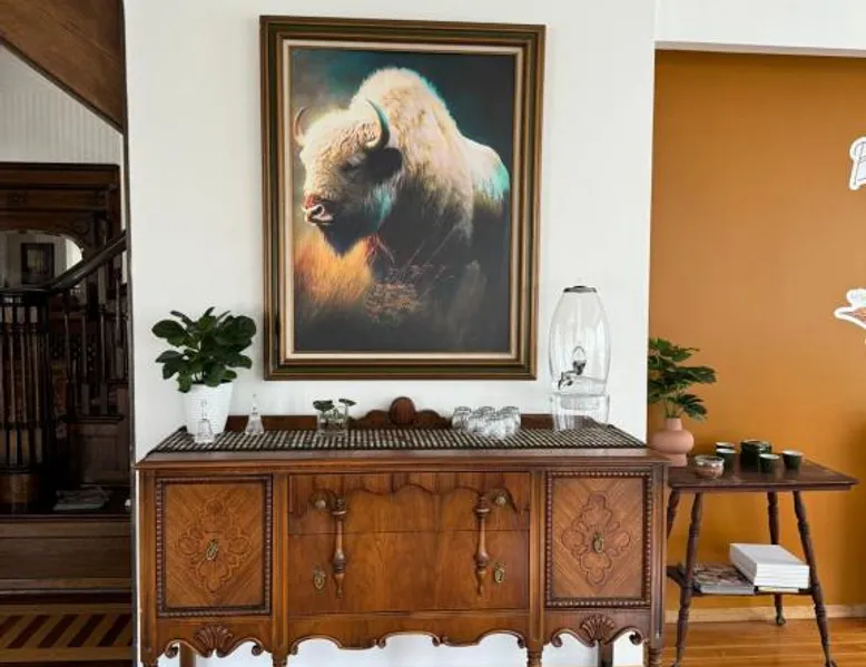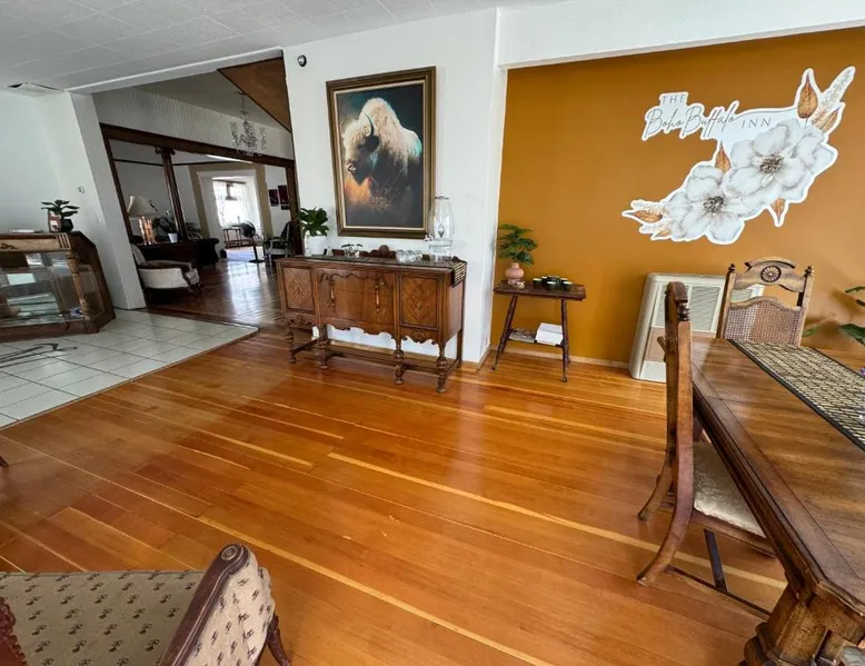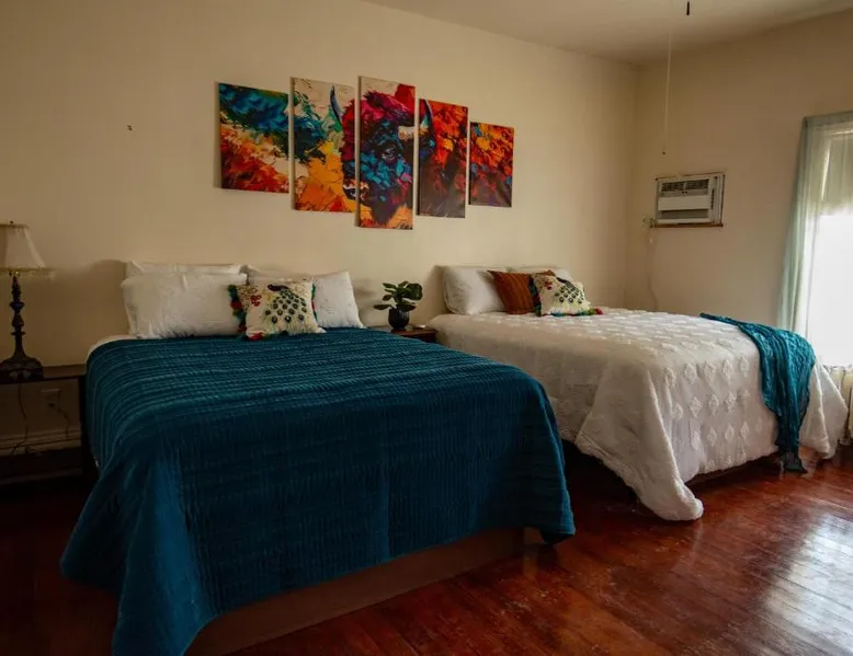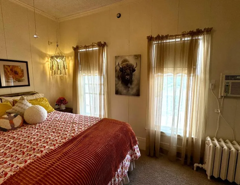 Comfortable Accommodations: The Boho Buffalo Inn in Buffalo offers air-conditioned rooms with private bathrooms, free WiFi, and modern amenities. Each room includes a work desk, wardrobe, and parquet or carpeted floors. Dining and Leisure: Guests can enjoy a terrace and outdoor seating area, perfect for relaxation. The inn features a coffee shop and an outdoor seating area, complemented by free on-site private parking. Breakfast and Amenities: A continental buffet breakfast is served daily, including fresh pastries, fruits, and juice. Additional amenities include a bath, ground-floor unit, walk-in shower, and free toiletries. Location and Access: Located 35 mi from Sheridan County Airport, the inn is highly rated by guests for its excellent facilities and comfortable accommodations. The air-conditioned suite has 1 bedroom and 1 bathroom with a walk-in shower and a hairdryer. The suite features a seating area, a carpeted floor and heating and chocolate is available for guests. The unit has 1 bed.
